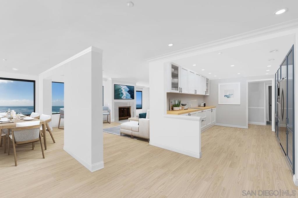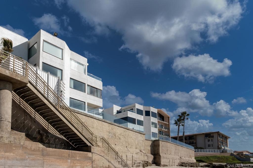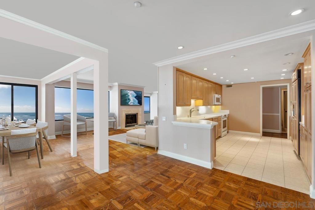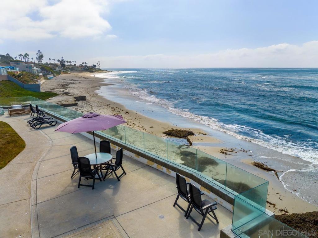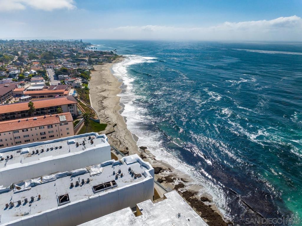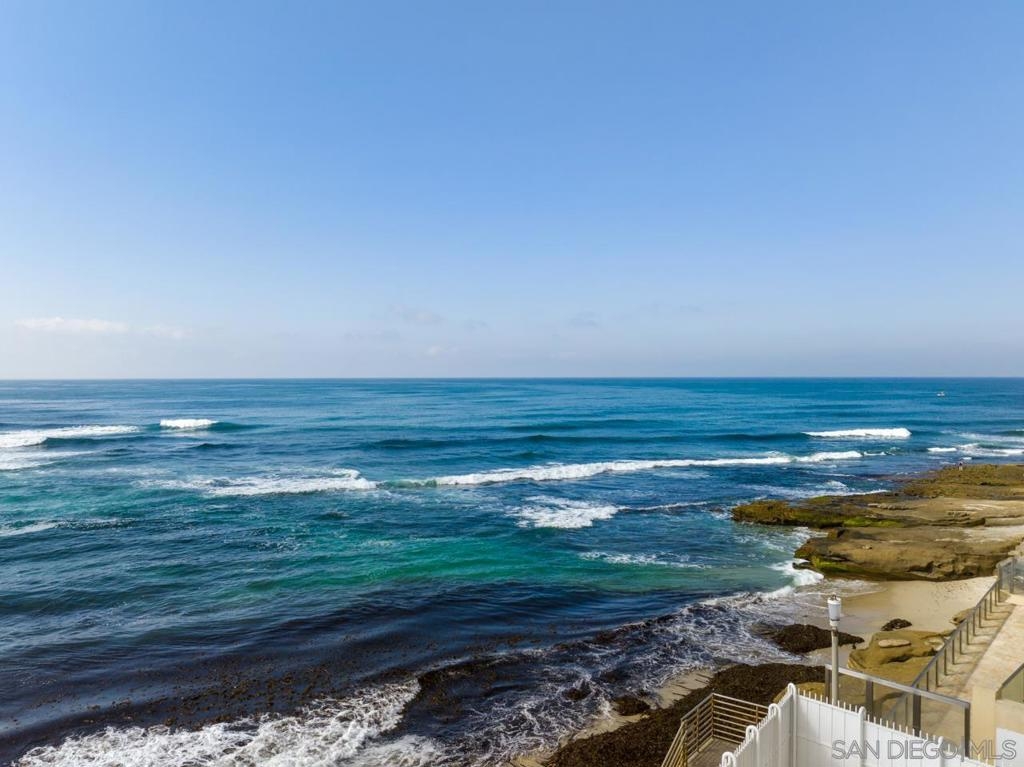 Perfectly positioned corner unit, directly on the Oceanfront with unobstructed views of the Pacific Ocean and the beautiful La Jolla Coast shoreline. Ample closets, two fireplaces, in unit laundry, side by side parking in the secured garage. Listen to and watch the surf while lounging in privacy of your own home. Enjoy the luxury of direct beach access from the expansive sundeck off the pool and spa area. Imagine walks on the beach, strolling to the fabulous restaurants and shops and sunsets every day. Current renovations in the building will unveil even more of the glamorous luxury that you expect in this prestigious location. Photos depict virtual staging and remodel. Property is currently under construction.