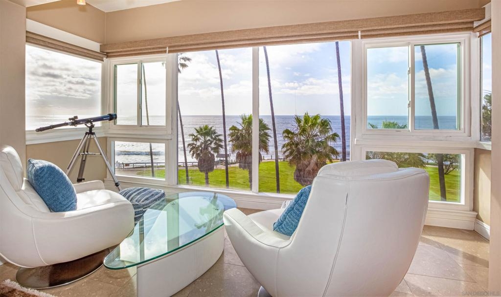 Welcome to 1039 Coast Boulevard, Unit F, La Jolla, CA—a luxurious coastal retreat offering 1,390 square feet of sophisticated living space. This elegantly furnished 2-bedroom, 2-bathroom residence is a sanctuary of comfort and style. Step into an open kitchen adorned with granite countertops, a breakfast bar, and stainless steel appliances, including a gas stove, double refrigerator, and dishwasher. The living area boasts hardwood floors, dual pane windows, and a working fireplace, creating a warm and inviting atmosphere. Retreat to the primary suite featuring a granite bathroom with a Jacuzzi tub, while the second bedroom offers ample space and comfort. Enjoy the convenience of in-unit laundry, central heating, and air conditioning. This home also includes a range of premium amenities: an intercom system, sound system, and a windowed bathroom. Benefit from on-site parking, a private garage, and additional storage options. The building features an elevator and electric gate for added convenience and security. With western exposure and breathtaking water views, this fully renovated gem is a rare find. Embrace the La Jolla lifestyle—schedule your private showing today!