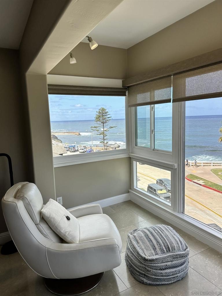 Welcome to 1039 Coast Boulevard, Unit F, La Jolla, CA—a luxurious coastal retreat offering 1,390 square feet of sophisticated living space. This elegantly furnished 2-bedroom, 2-bathroom residence is a sanctuary of comfort and style. Step into an open kitchen adorned with granite countertops, a breakfast bar, and stainless steel appliances, including a gas stove, double refrigerator, and dishwasher. The living area boasts hardwood floors, dual pane windows, and a working fireplace, creating a warm and inviting atmosphere. Retreat to the primary suite featuring a granite bathroom with a Jacuzzi tub, while the second bedroom offers ample space and comfort. Enjoy the convenience of in-unit laundry, central heating, and air conditioning. This home also includes a range of premium amenities: an intercom system, sound system, and a windowed bathroom. Benefit from on-site parking, a private garage, and additional storage options. The building features an elevator and electric gate for added convenience and security. With western exposure and breathtaking water views, this fully renovated gem is a rare find. Embrace the La Jolla lifestyle—schedule your private showing today!