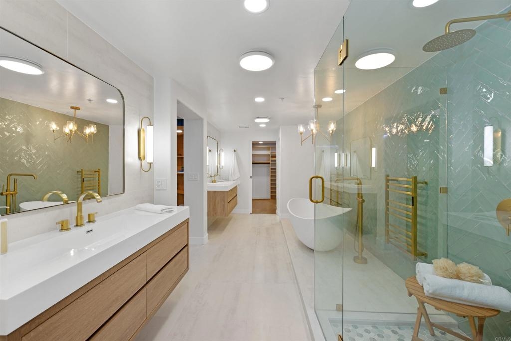Nestled in the heart of The Village of La Jolla, this luxury condo spans an impressive 2,474 square feet, featuring 3 bedrooms, 3 baths, and a versatile bonus room. Designed with exquisite attention to detail, the kitchen boasts luxury touches such as a waterfall peninsula, panel-ready appliances, and high-end fixtures, making it a chef’s dream. The expansive living room, bathed in natural light, offers an inviting open space perfect for both relaxation and entertaining, enhanced by a Sonos surround sound system. The luxurious main bedroom is a private retreat, complete with its own fireplace and direct access to a serene side patio. A unique feature of this condo is the hidden door disguised as a bookshelf, leading to the bonus room that can be transformed into a theater, gym, or office. The main bath is a couple’s paradise, featuring separate double vanity spaces, dual walk-in closets, a stand-up tub with electric towel warmers, and a glass shower with dual shower heads. The private side patio offers direct access to the alley, with the beach just around the corner, making this home perfect for beach lovers. Don’t miss out on this newly remodeled gem in La Jolla, only a block away from the beach. This condo represents the epitome of luxury living in one of California’s most sought-after locations.