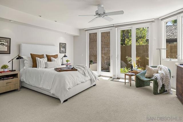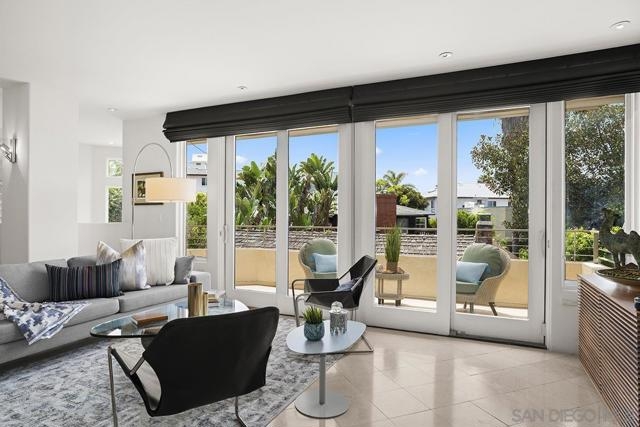 Heaven on Earth in the Heart of La Jolla! Live just steps from the sparkling shoreline and everything the charming Village of La Jolla has to offer. This private and stylish townhome is a rare blend of coastal serenity and ultimate convenience. Inside, an open-concept main level welcomes you with walls of windows and refreshing ocean breezes that flow through every room. The newer, sleek kitchen is complete with a center island and premium Bosch appliances and features a European design that invites conversation, connection and fun. Enjoy your morning coffee or unwind with evening cocktails from one of two upper balconies. Downstairs, all three bedrooms open through glass doors to a private yard—perfect for seamless indoor-outdoor California living. And it gets even better: Step directly out your back door to access two side-by-side, secure garage parking spaces plus a large storage room. See supplement for more details—you won’t want to miss this one. Additional highlights include 9-foot ceilings on both levels and a generously sized primary featuring a second fireplace and direct access to the private yard. The luxurious, spa-inspired primary bath is outfitted with a jetted soaking tub, dual vanities, a walk-in shower, and two walk-in closets with their own dressing area. You’ll also love the versatile flex space just off the primary suite, complete with a full wall of closets and a built-in desk with bookcases and shelving perfect for a home office, fitness area, or creative retreat. You will also find two additional bedrooms, a full bath, and a dedicated laundry room complete the thoughtfully designed lower level. This is coastal living at its finest—stylish, spacious, and undeniably a gem in this stunning La Jolla boutique 8 unit craftsman-style building. Welcome home!