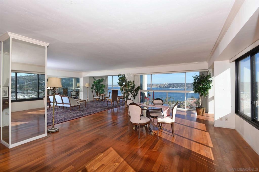 You will be spell bound by the endless panoramic ocean views from this 21st floor penthouse single level two bedroom plus study (or third bedroom) home at 939 Coast-one of the premier full concierge ocean front buildings in La Jolla. An immense living room consisting of two distinct areas, hardwood flooring, walls of glass, an efficient kitchen, washer and dryer in the unit and exceptional storage are but a few of the features that make 21HJ exceptional. We can’t say enough about the views-- (see supp) including the white water and north shore views, the village and night light views, and the and southern view of the Children’s Pool. 939 Coast is a luxury high rise building with full concierge services including valet parking, pool deck, fitness center, library, and two guest suites available by reservation. There is a 3 month minimum rental term and one pet is allowed per unit, not to exceed 30 pounds. Two underground parking spaces are available at $100 per month each. Bring your creative touches to this primary or second home. Seeing is believing. Other Fees: 63 Sewer: Sewer Connected Topography: LL