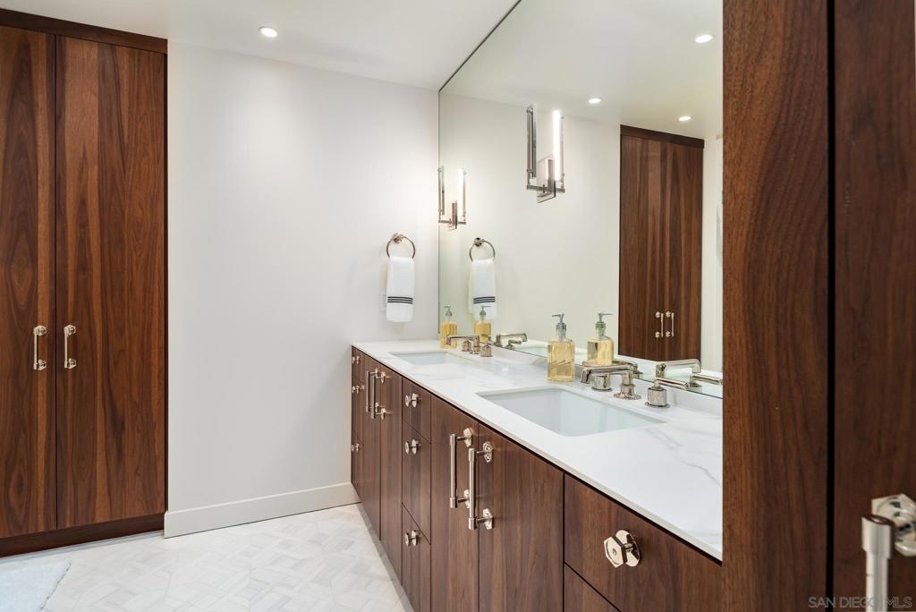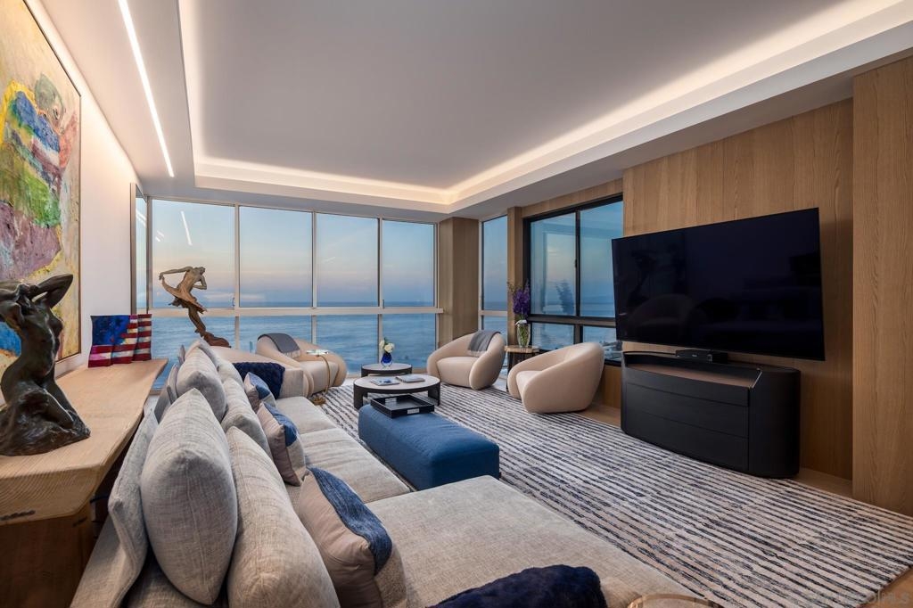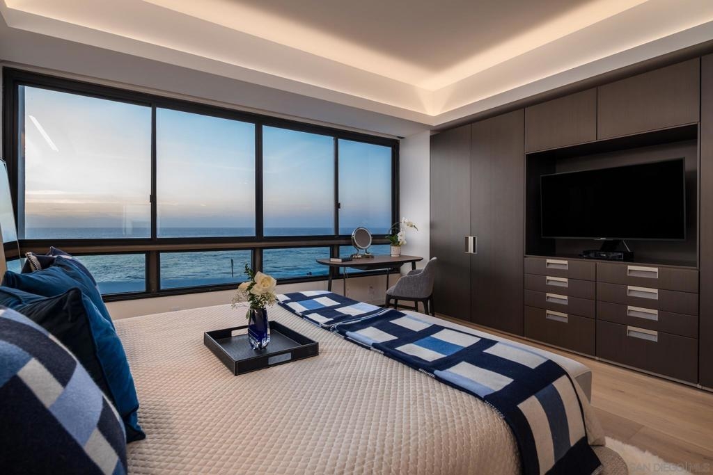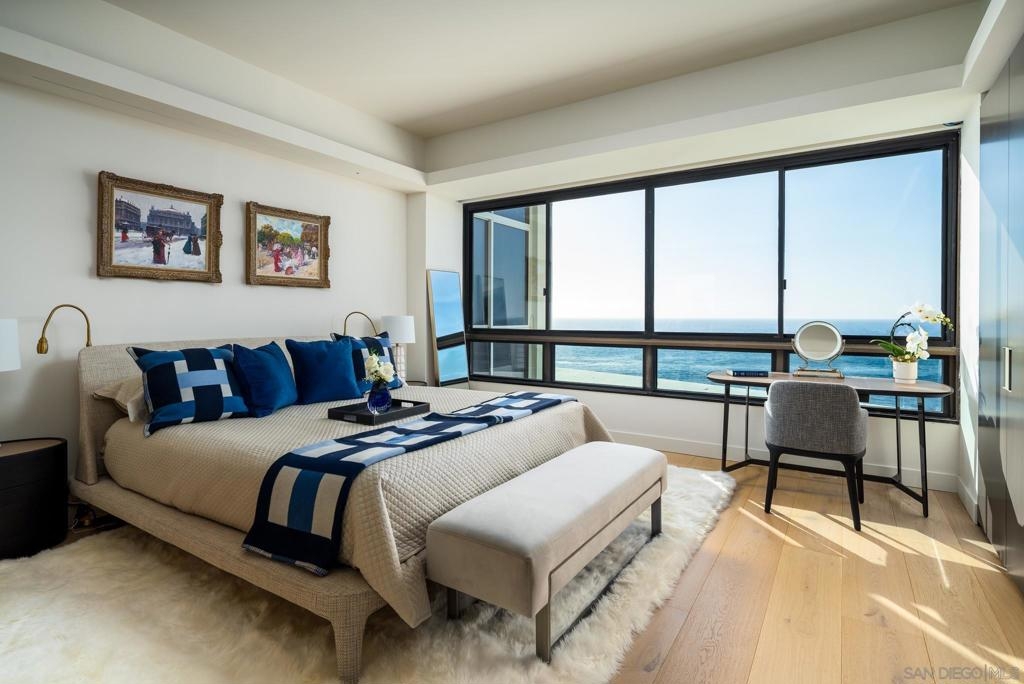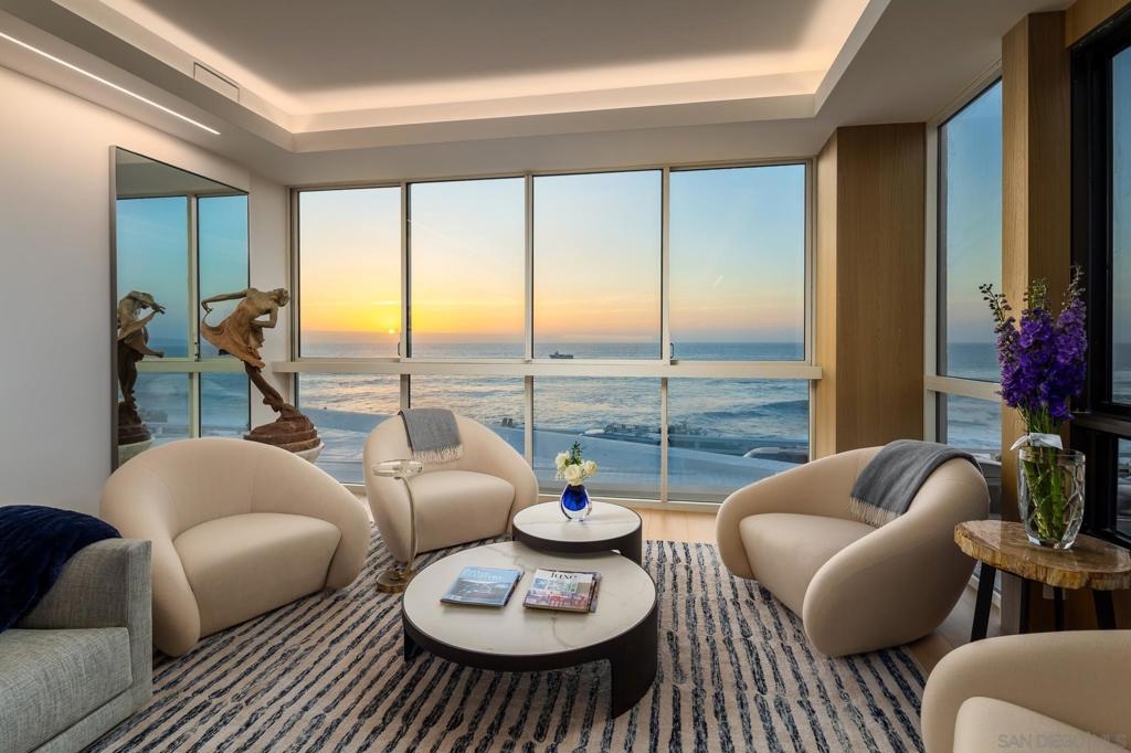 Coastal luxury redefined—this stunning oceanfront residence has just undergone a top-tier ultra-luxury remodel. Custom Italian Poliform cabinetry throughout, paired with top-of-the-line Gaggenau appliances fit for a gourmet chef. Wide-plank hardwood flooring runs seamlessly throughout the space, complemented by Waterworks fixtures and designer details. Enjoy the convenience of an in-unit Miele washer and dryer. No expense has been spared. This fabulous, ocean-facing corner unit boasts sit-down whitewater and coastal views, with sweeping west- and north-facing panoramas. A rare opportunity to live in La Jolla’s premier oceanfront high-rise. Experience refreshing sea breezes from this residence, unit is located on the same level as the heated pool, spa, sauna, guest suites, library, conference room, and entertainment patios. As a full-service concierge building, 939 Coast offers valet parking, a fully equipped gym, 24-hour on-site security, and outdoor dining areas with barbecues. Unique to this level, elevated ceiling height with designer uplighting enhances the sense of space and light. **Inquire about potential to reconfigure into a 2-bed, 2.5-bath layout with over 60 feet of sit-down oceanfront glass. ** Step outside to the iconic La Jolla Cove, where sea life thrives and pelicans soar at eye level—all just a short walk from world-class dining, shops, and galleries. Furnishings are negotiable.