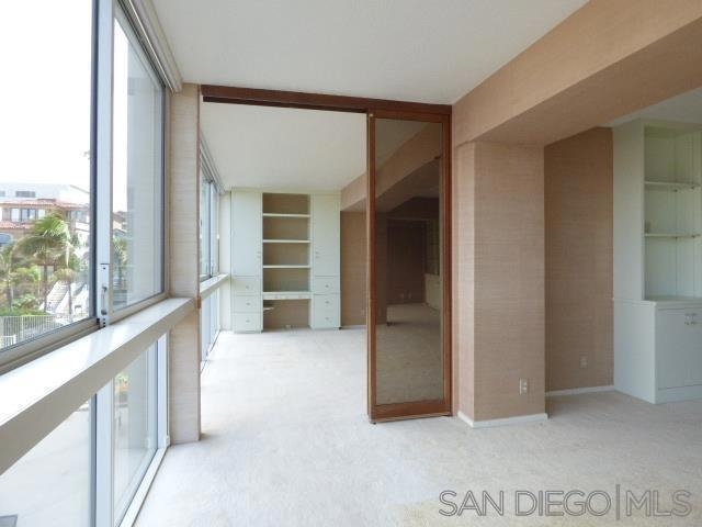 Opportunity at 939 Coast. Vintage condition unit. Custom built in Cabinetry in Living room & Butlers pantry style off kitchen. Views to Ocean and La Jolla Cove. Washer & Dryer in unit. Valet parking available. Pet friendly, Complex has great amenities from swimming pool, jacuzzi, gym and library. Balcony was enclosed many years ago with HOA approval. One Valet parking is an optional extra cost.