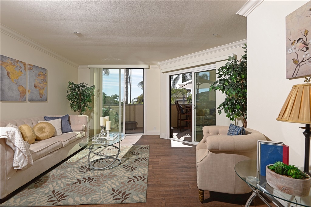 WONDERFUL END UNIT WITH ONLY 1 NEIGHBOR ON 1 SIDE. NEW HARDWOOD LOOK TILE FLOORING INSTALLED 4-5 YRS AGO. ONE OF THE FEW UNITS THAT HAS A/C INSTALLED IN APPROX 2013. THIS CONDO COMES WITH A DEEDED 4'X8'X8' PRIVATE STORAGE UNIT THAT SELLER BOUGHT FROM DEVELOPER FOR $6,000.00!! 1 ASSIGNED GATED PARKING SPACE W/PLENTY OF ADDITIONAL GATED PKG FOR 2ND CAR! THIS UNIT ALSO HAS ONE OF THE LARGER BALCONIES IN THE COMPLEX WITH ACCESS FROM BOTH LIVING ROOM AND MASTER BEDROOM! RECENTLY PAINTED INCLUDING CABINETS. This mixed use complex comprised of 22 residential and 7 commercial condos includes Sammy's restaurant and other retailers. The complex is elevator coded so the retail does not have access to the residential condos. Walkability to all La Jolla Village has to offer including shopping, restaurants, the La Jolla fabulous Sunday Farmers Market, the cove, beaches and art galleries. The condo faces Draper (not Pearl) and has a peek ocean from the balcony and living room.. Neighborhoods: Village Equipment: Dryer,Fire Sprinklers,Garage Door Opener, Range/Oven, Washer Other Fees: 0 Sewer: Public Sewer Topography: LL