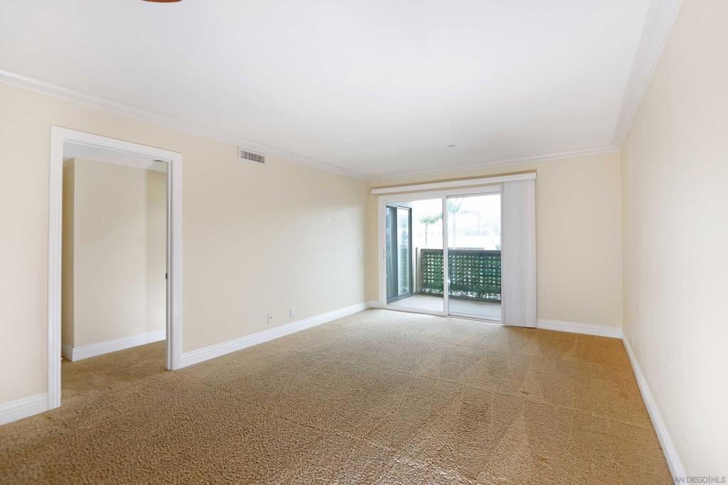 Single level 2 bedroom, 2 bath 938 square foot penthouse pied-a terre in the heart of La Jolla Village in Bella Capri with an assigned underground parking space and an interior private laundry. The efficient kitchen has stainless steel appliances and a gas stove top, custom maple cabinetry and granite counter tops. The master suite has a sliding door to the balcony with a view of the night lights from Mt. Soledad. The guest bedroom has a peek of the ocean and a walk-in closet. There are ceiling fans and lots of natural light throughout. This condo is ideal as a primary home, rental or second home. Come see for yourself.