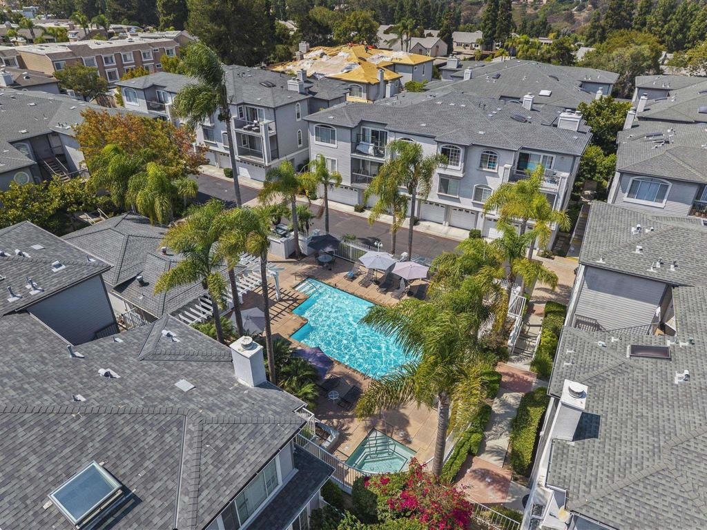 Welcome to a La Jolla residence that embodies timeless elegance and European-inspired sophistication. This beautifully upgraded 2-bedroom, 2-bath condominium offers 1,359 sq. ft. of refined living space in one of Southern California’s most desirable coastal communities. Perfectly situated west of the I-5, the home combines convenience and exclusivity, with effortless access to La Jolla’s world-class beaches, shopping, dining, and culture. Inside, striking marble tile flooring creates an immediate sense of refinement. The renovated kitchen is a culinary highlight, showcasing custom cabinetry, stainless steel appliances, and rich granite countertops with a matching backsplash. Designed for entertaining, the open-concept floor plan flows seamlessly into the dining and living areas. The inviting living room features a granite-accented fireplace and expansive windows that bathe the space in natural light. A sliding glass door opens to a private balcony, ideal for enjoying the coastal breeze. The primary suite offers a spa-inspired retreat, while the second bedroom provides flexibility for guests, office, or lifestyle needs. Additional highlights include new lighting, a dining room chandelier, and two single-car garages, one with adjacent storage room. The well-maintained community offers tranquil walkways, shade trees, a pet area, sparkling pool, and two spas. With its prime location and high-end finishes, this home delivers the perfect balance of luxury, convenience, and coastal charm.
