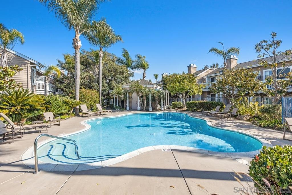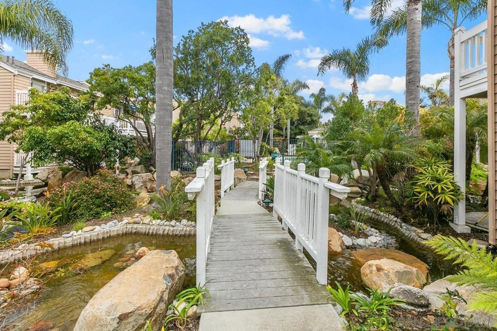 Sun-splashed Cape La Jolla home boasts soaring exposed-beam ceilings, skylights, and an airy split-level design. Relax by the fireplace or step onto your private balcony for lush tropical views. Brand-new paint and carpet make it move-in ready. The bright kitchen and defined dining room sit just a few steps up—perfect for weeknight meals or study groups. The primary suite offers a walk-in closet and spa-like bath. In-unit laundry and a detached two-car garage—ideal for bikes, boards—add rare convenience. Landscaped grounds weave past bridges, waterfalls, and a resort-style pool and spa. Leave the car behind: walk to Trader Joe’s, Ralphs, Whole Foods, AMC movies, cafés, and Tesla/EVgo super-chargers at La Jolla Village Square. UCSD, sand-lined beaches, and the I-5 sit minutes away—making this bright coastal retreat a smart buy for students, professors, or anyone craving La Jolla living.