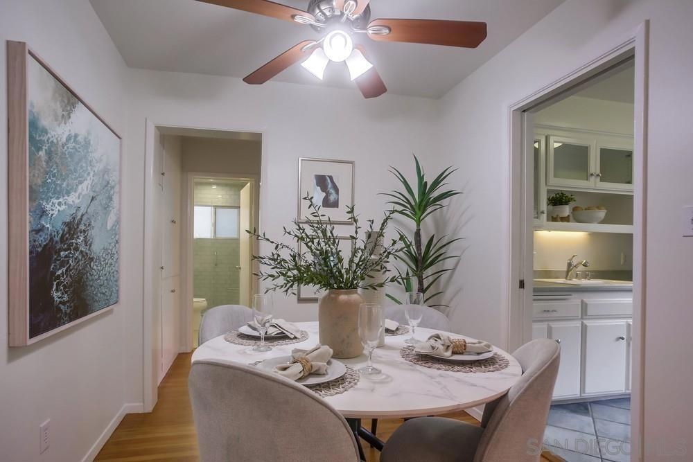 Turnkey beach home in S. Birdrock just 3 blocks to Calumet Park & Tourmaline Beach! Enjoy sunsets, surfing, and strolls along the ocean in this highly walk-able neighborhood close to shops, restaurants, and beaches. Comfortable ground-floor unit features recent upgrades w/ hardwood flooring & subway tile in the modern bathroom/shower. Surrounded w/ windows this ground floor beach-home includes a spacious, pool-facing patio. Enjoy oversized, private, 1-car garage for easy parking and toys. A rarely available residence in the coveted Birdrock location.