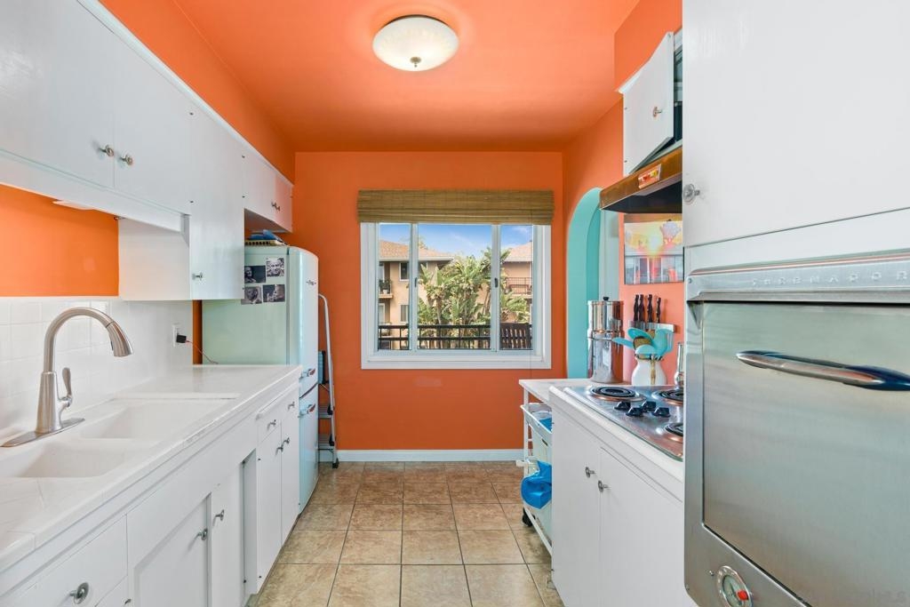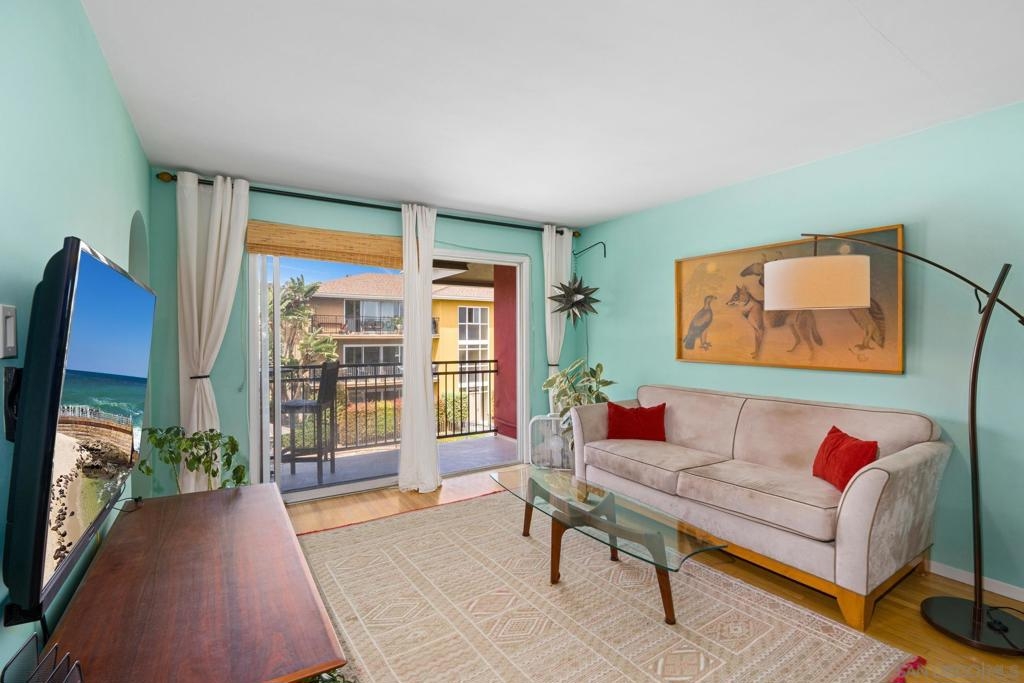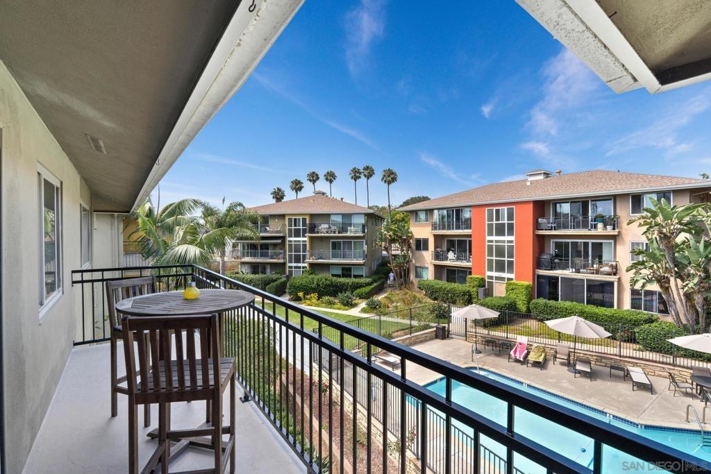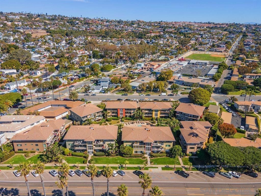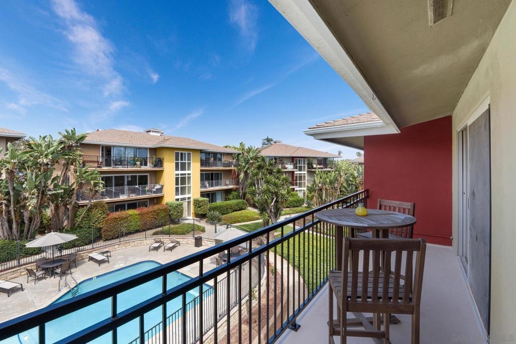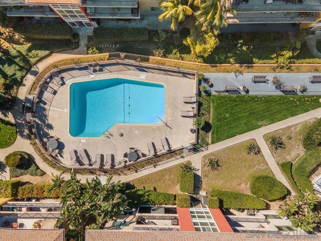 Unique mid-century modern condo in the heart of Bird Rock! Situated on the breezy/ quiet top floor, this unit features beautiful original hard wood flooring, colorful bathroom tiles, retro kitchen and newly renovated balcony overlooking the lush gardens and pool. Super clean and overflowing with retro charm, extra-large rooms, PRIVATE ONE CAR GARAGE and walkability to everything Bird Rock has to offer. Start your day with a coffee at Bird Rock Coffee Roasters before enjoying local yoga classes and ending at one of Bird Rocks many restaurants. Capri Aire is a small, very unique complex in the heart of Bird Rock. HOA President lives on site and is very proactive and constantly striving to make the complex even better than it already is. Lush gardens and landscaping surround a sparkling pool and buildings are a cool, retro mid-century modern vibe with large rooms you don't see in newer construction. Nothing else like this in La Jolla!