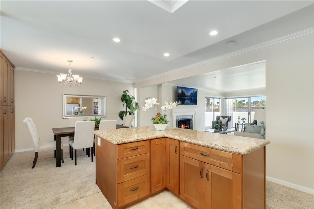 In the heart of La Jolla, come live the ultimate beach lifestyle! Located in the Village with its trendy boutiques, cafes and bistros, La Jolla Cove with its world-class snorkeling, miles of sand and award winning schools. Enjoy open concept living where the kitchen, dining area and living room flow seamlessly together and are adorned with crown molding and large windows. The expanded kitchen with peak ocean views, features an abundance of cabinet space, granite counters, stainless steel appliances and a large L-shaped center island for added storage space and convenience. Relax in front of the fireplace while you enjoy the cool ocean breezes flow through or unwind on the enclosed patio all year long. Both bedrooms are generously sized giving everyone privacy. The secondary bathroom has been remodeled to feature a modern vanity, fixtures and lighting and a step-in shower with stunning tile surround and basin. Two tandem parking spaces in the underground garage makes parking a breeze - a commodity in beach communities! Enjoy the large ocean view community patio just steps from the unit. To see it is to love it!. Neighborhoods: La Jolla Village Complex Features: ,,, Equipment: Dryer,Fire Sprinklers, Washer Other Fees: 0 Sewer: Sewer Connected Topography: LL