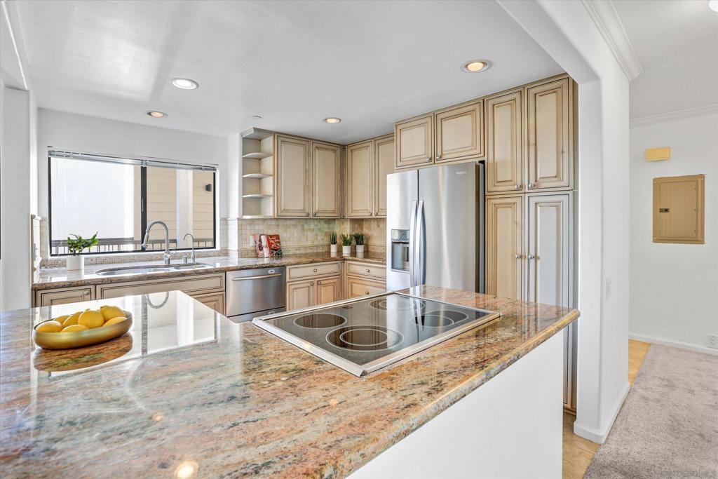Welcome to Clinton Manor, your residence in the heart of The Village of La Jolla. Immerse into the California coastal lifestyle surrounding yourself by a collection of beaches, from sandy shores and rocky reefs to sea cliffs and secluded coves. Magical sunsets, fine restaurants, art galleries, shops and museums are waiting for you. This spacious one story condo, features ocean views and winter sunsets. Third story corner unit with 2bed and 2 full baths. Renovated kitchen and baths. Window shutters for extra privacy. Brand new electrical panel in unit. Enclosed patio adds convenient extra space to enjoy your relaxing lounge or seating area. As an extra bonus, this unit is conveniently located just steps away from the building's ocean view deck, making it the perfect spot for your Sunset Happy Hour. Main bedroom has two spacious closets and main bathroom offers soaking bathtub and shower. Full laundry in unit. Community garage with two assigned tandem parking spaces, two private storage closets and new private EV Charger.