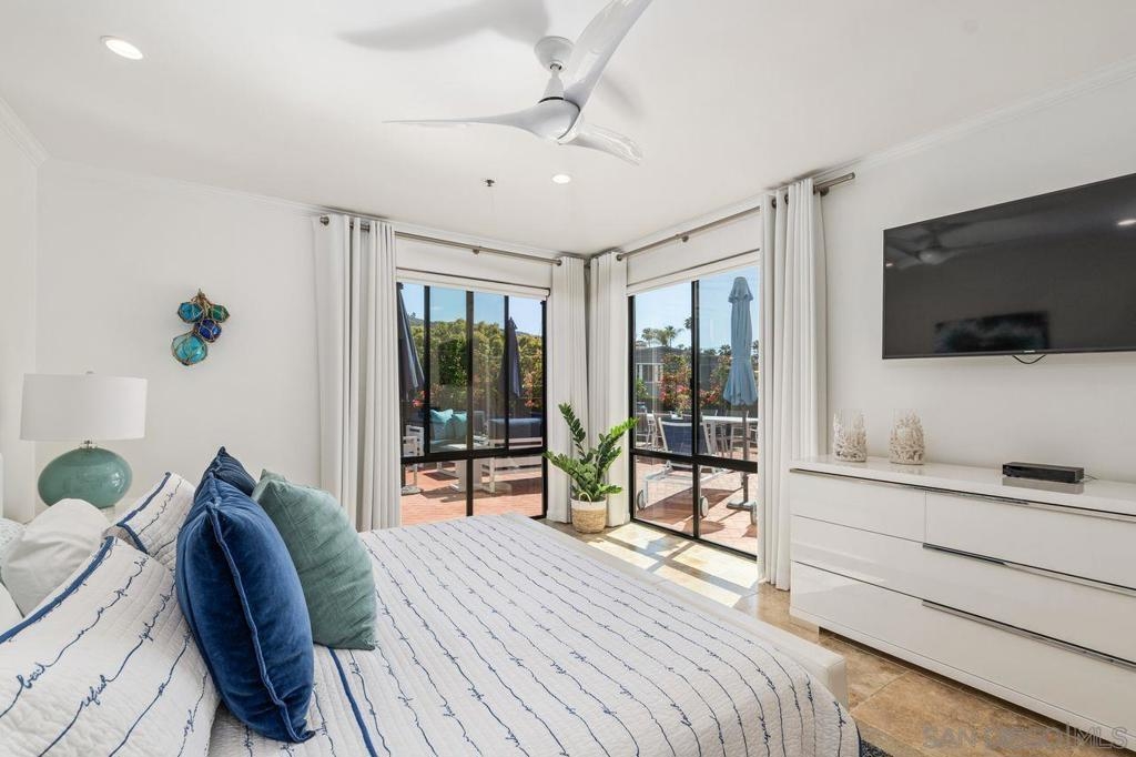 Live the La Jolla life at The La Jolla Shores Clubdominiums. Exclusive terrace unit able to entertain 20 plus guests. Two bedrooms, two baths, plus den 1,553 sq. ft., with plenty of closets and a peek ocean view. Fresh paint and updates throughout the entire home including new windows and four Mitsubishi A/C units. Just a few minutes walk to the beach and award winning dining and shopping. This unit also comes with extensive outdoor amenities such as two designated parking spaces, heated pool & spa, tennis court, sports court, club room, exercise room and community BBQ area with tables in a park like setting. Fantastic opportunity to own a completely remodeled turn key unit as a primary residence, second home or rental property. MUST SEE! Equipment: Dryer,Fire Sprinklers,Garage Door Opener, Range/Oven, Washer Sewer: Sewer Connected, Public Sewer Topography: LL,