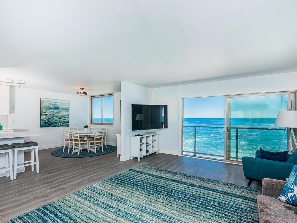 TOP FLOOR UNIT WITH SPECTACULAR, FRONT ROW OCEAN VIEWS, RARELY AVAILABLE! Walking distance to the Village shops, restaurants, the rec center, beaches, the children's pool, snorkeling, fishing and more! This centrally located, single level, upgraded condo is your opportunity to enjoy the views and all that Village life has to offer! The floor plan offers sit down ocean views, an abundance of natural light and wonderful ocean breezes. See Supplement for all the features of 909 Coast Blvd #26. Also for sale, is the adjacent unit#25, MLS 230001744. The framing already exists to create an opening so you could have a 4 bedroom 4 bath penthouse unit. The floor plan offers sit down ocean views and spectacular coastline views. As you enter the unit, you are greeted with upgraded hardwood (oak) plank flooring with acoustic sound barriers and tons of natural light. There are 3 high efficiency split heating and air-conditioning units located in the in the living room and both bedrooms. The kitchen includes newer stainless-steel appliances, granite countertops, custom backsplash upgraded cabinets, lighting and a breakfast bar. From the living/dining room open the sliding door to fully enjoy the sounds of the mighty Pacific Ocean and those wonderful ocean breezes. The master bedroom and bathroom has a walk-in closet, granite counter tops, custom tile shower enclosure and tile flooring. Also included are 2 secured underground side by side parking spots with storage lockers. Additional features of this home include dual pane windows and a full size stackable washer and dryer with exterior venting. This home is truly move in ready and waiting for you!