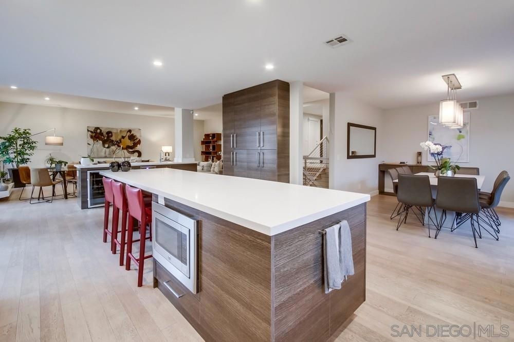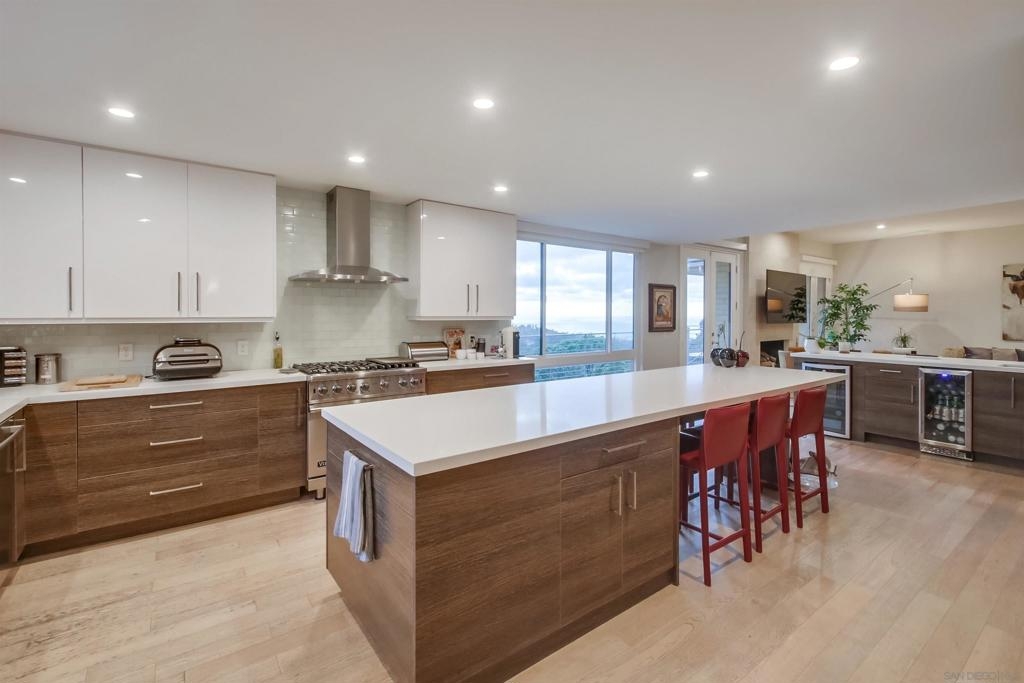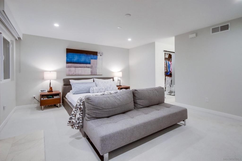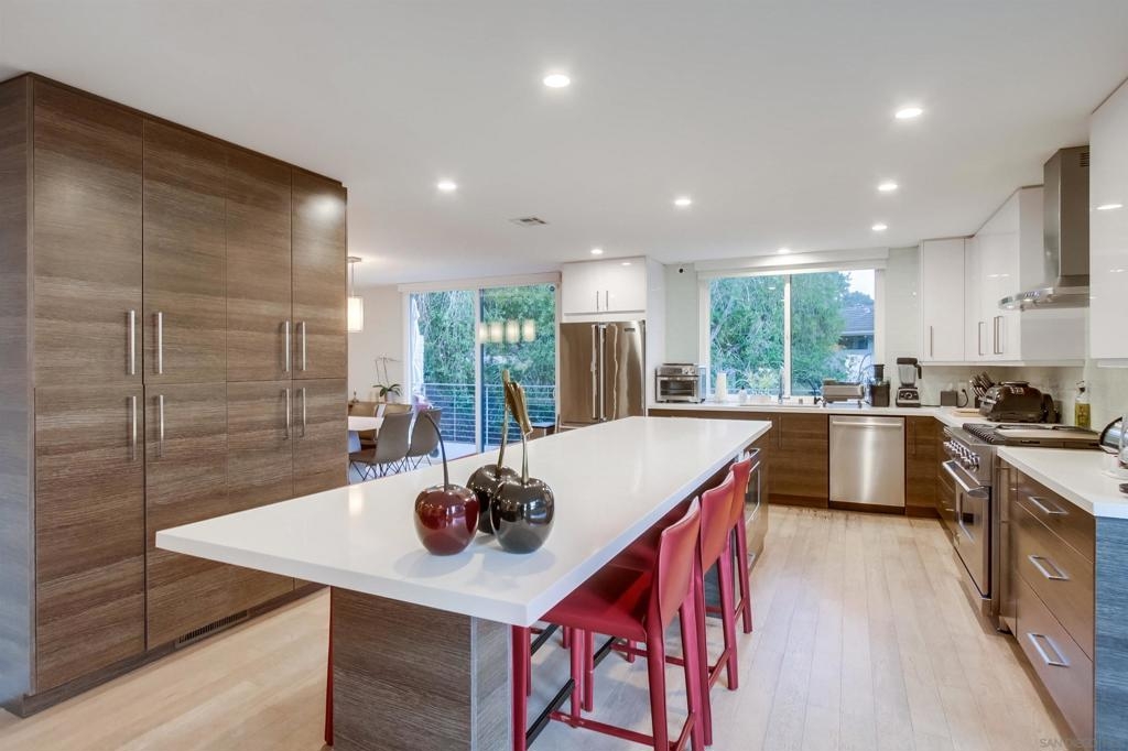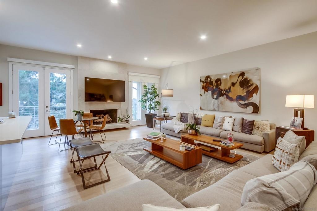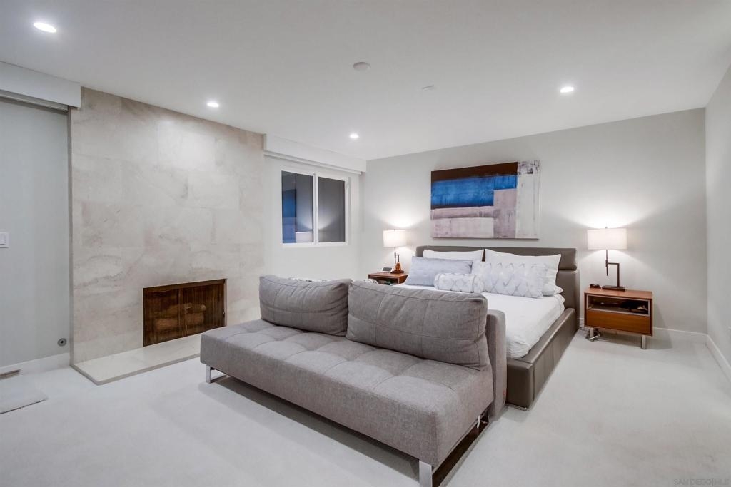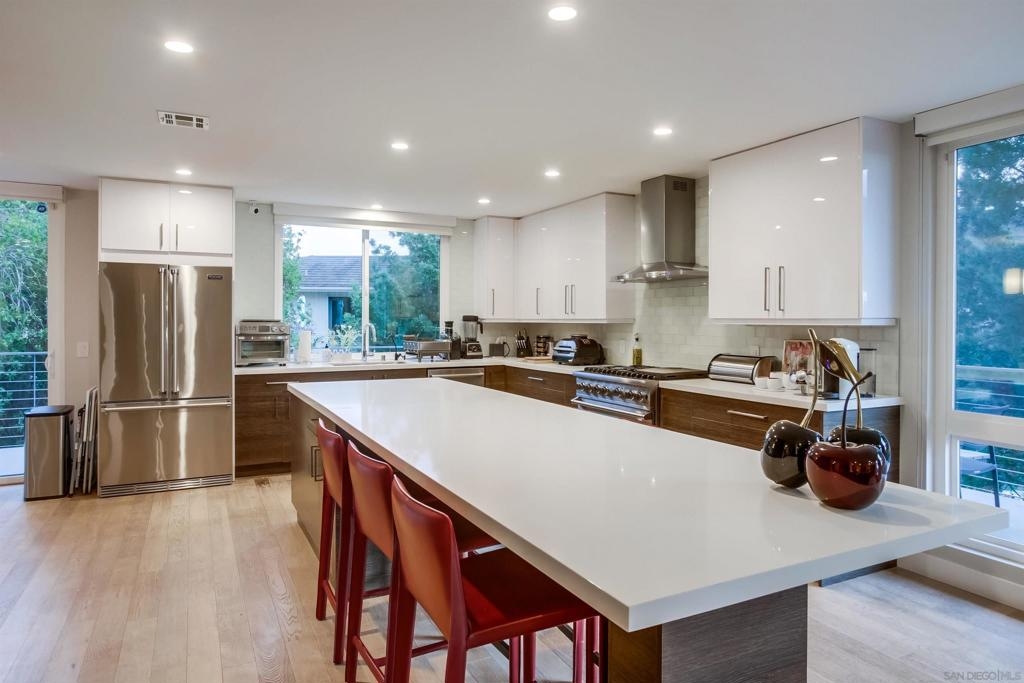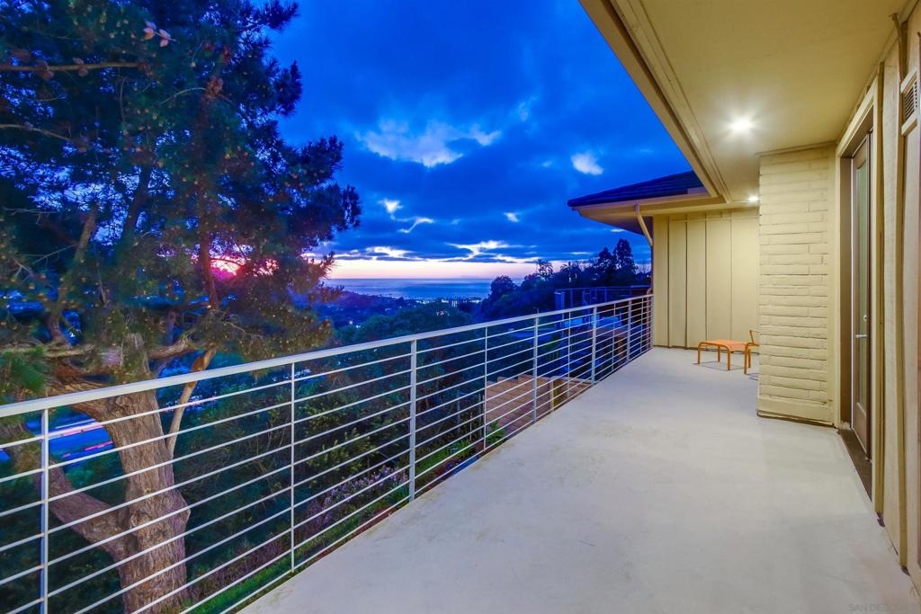 Ocean views, spectacular sunsets delight in this chic, upscale remodeled North La Jolla home. Immaculate, beautifully renovated residence with open concept and clean aesthetic make it a masterpiece of comfort and style.Turn-key perfection with bright, open living areas, an expansive sea view deck, sleek bathrooms and kitchen, fireplaces in living room and master suite. Community features a pool, spa & tennis courts.Impressive value in a superb location and easy access to LJ Shores, UCSD, YMCA, schools & fwys. Kitchen is a modern beauty with quartz countertops, sleek cabinets and Viking range and refrigerator. Luxury bathroom finishes, fireplace in primary suite and living room, walk-in closets, lots of storage space. One bedroom and bathroom at entry level. Expansive sea-view deck wraps around the kitchen and main living areas Great indoor-outdoor enjoyment of panoramic vistas plus a patio and yard.