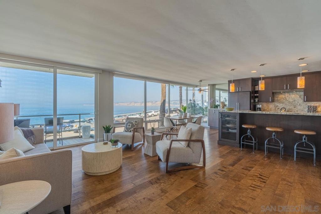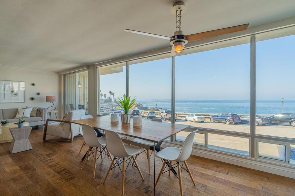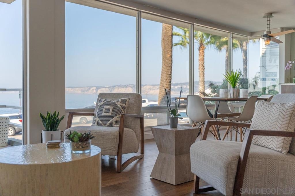 Enjoy Dramatic & Panoramic Views of La Jolla Cove and The Pacific Ocean from your living room! It is easy to call everyday a vacation as you soak in the wondrous views of open sea and the rugged cliffs of the North Shore and coastline to Dana Point are enjoyed from this unique residence in a six unit building. Kitchen and baths are fully renovated and ready, and the spectacular walk to everything location offers possibilities for year-round living, vacation rental (30 day min) or vacation use. Complex Features: , Equipment: Dryer,Garage Door Opener, Washer Other Fees: 0 Sewer: Sewer Connected, Public Sewer Topography: LL Frontage: Ocean/Bluff