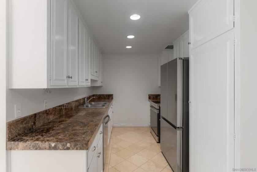 This beautifully updated 1-bedroom, 1-bath residence in the sought-after Devonshire building puts you right in the heart of the Village. Travertine flooring flows through the main living spaces, adding a polished, timeless quality. Bright and airy, the living area features two sliding glass doors that open to a Juliette balcony for easy indoor-outdoor living. A galley kitchen makes smart use of space with recessed lighting, granite countertops, and classic white cabinetry. Travertine floors and a tiled walk-in shower with a sliding glass enclosure give the bathroom a fresh, updated look. In the bedroom, hardwood flooring and mirrored sliding closet doors keep things light and functional. Whether you're looking for a primary residence, a coastal getaway, or an investment property, this is a low-maintenance option in a high-demand location. Secured underground parking, private storage, elevator access, and gated entry round out the building's amenities. You're steps from boutiques, galleries, restaurants, cafés, a movie theater, and everyday essentials. Prospect Street, sometimes called the "Rodeo Drive of San Diego," is just around the corner, and La Jolla Cove is a five-minute walk. Under $1 million in the heart of La Jolla Village. It's rare, and it's here. VA Approved!
