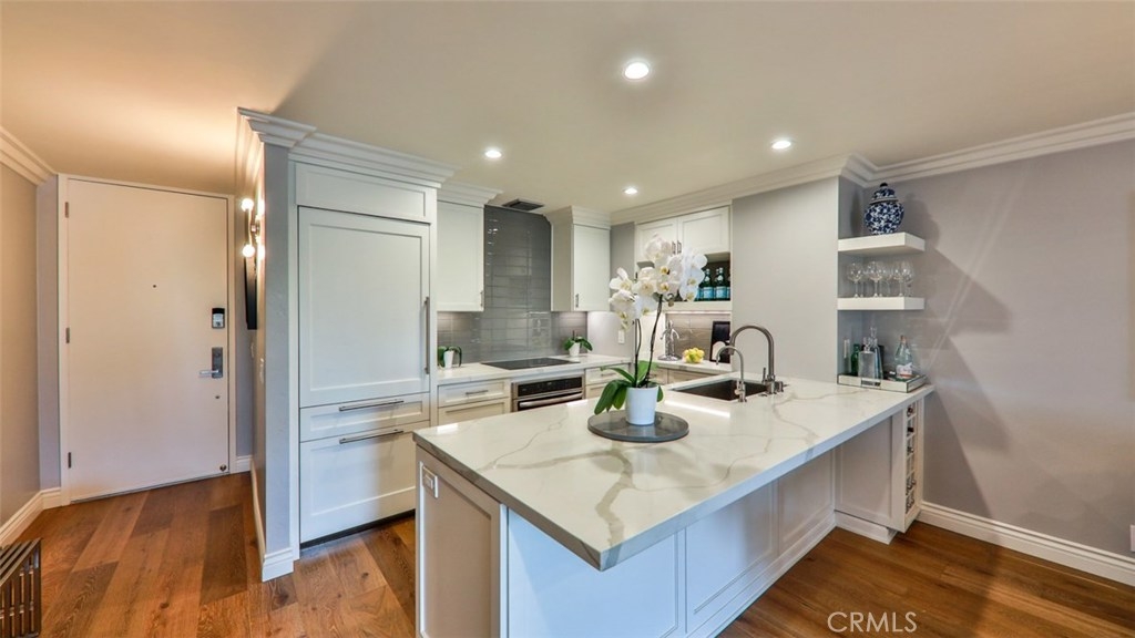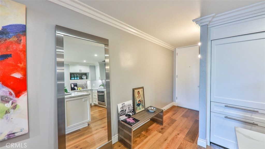 Stunning Home Located in the Heart of La Jolla Village! Just One Block from the World Famous La Jolla Cove. Short Walk to Fine Dining, Shopping, Boutiques, Galleries, The Lot - Luxury Cinema, The Conrad Prebys Performing Arts Center, Contemporary Art Museum. Recent Updates Include Gorgeous Custom Designed Kitchen with Elegant Quartz Countertops and Mid Century Modern Glass Backsplash Tile, both Complementing Mid Century Modern Design of the Building. Devonshire La Jolla was designed by architect Russell Forester, and it was build in 1971 (HOA has very strong reserves). A fully funded refresh of the interior courtyard is about to commence. Kitchen also Includes Built-In Refrigerator, Custom Paneled GE Monogram Collection, Induction Cooktop - GE Cafe Collection, Sharp Microwave Drawer, Custom Paneled Bosch Dishwasher, Brizzo Faucet. Sleek and Timeless Design of this Pied-a-terre, is Enhanced by New Wide Plank Blonde Oak Flooring, Skim Coated Walls, Chic Lighting Fixtures, Baseboards and Crown Moulding, Ceiling Fans. Custom Built Hall Linen Closet with Slide-out Shelving, Bosch Washer and Dryer were added and are Included in the sale as well. Kitchen with Large Breakfast Bar Opens to the Spacious Living Room with Balcony with Hillside Views. Spacious Storage Area on the Balcony. Two Bedrooms and Two Bathrooms. Corner Unit. Secured and Gated Parking Garage, Large Storage Cabinet next to the the Assigned Parking Space. HOA Includes Water, Trash, Cable, Internet and Insurance.