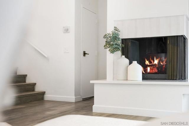 Beautifully updated end-unit townhome in Eastbluff, tucked away from road noise and traffic, flooded with natural light and ocean breezes, offering the rare blend of designer updates, prime location, and below-market pricing. Features include an open kitchen with redesigned layout for enhanced flow, newly renovated bathrooms with designer finishes, updated fireplace surround with quartz hearth, new hardware and lighting, popcorn was removed long ago and recessed lighting added to main living areas and kitchen, hard-surface flooring in main areas, newer windows with plantation shutters, and brand new AC unit, plus recently replaced plumbing throughout the home. Every upgrade has been done with quality and longevity in mind. Additional highlights include new carpet in upstairs bedrooms, custom closet in primary bedroom, and a private gated patio surrounded by mature hedges for the ultimate privacy. Eastbluff community amenities include two pools, spas, and a clubhouse, with HOA dues covering water, trash, sewer, roof, exterior maintenance and landscaping, and termite service. Conveniently located with easy freeway access that avoids high traffic areas, while still very close to shopping, restaurants, La Jolla Village, UTC, UCSD and area beaches. New shower glass door to be installed next week.