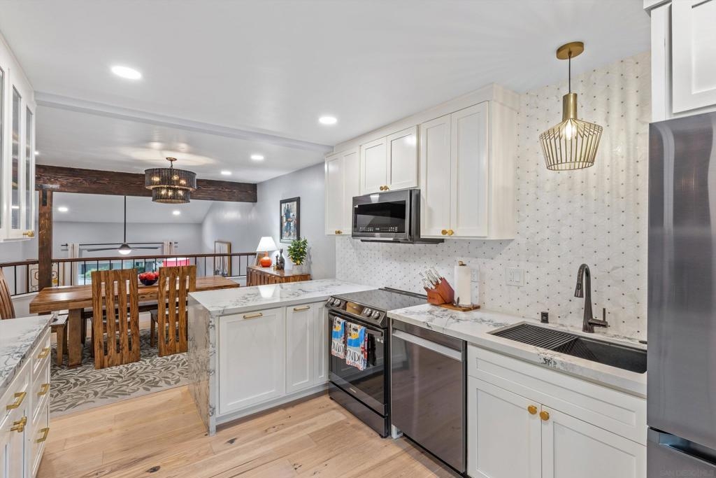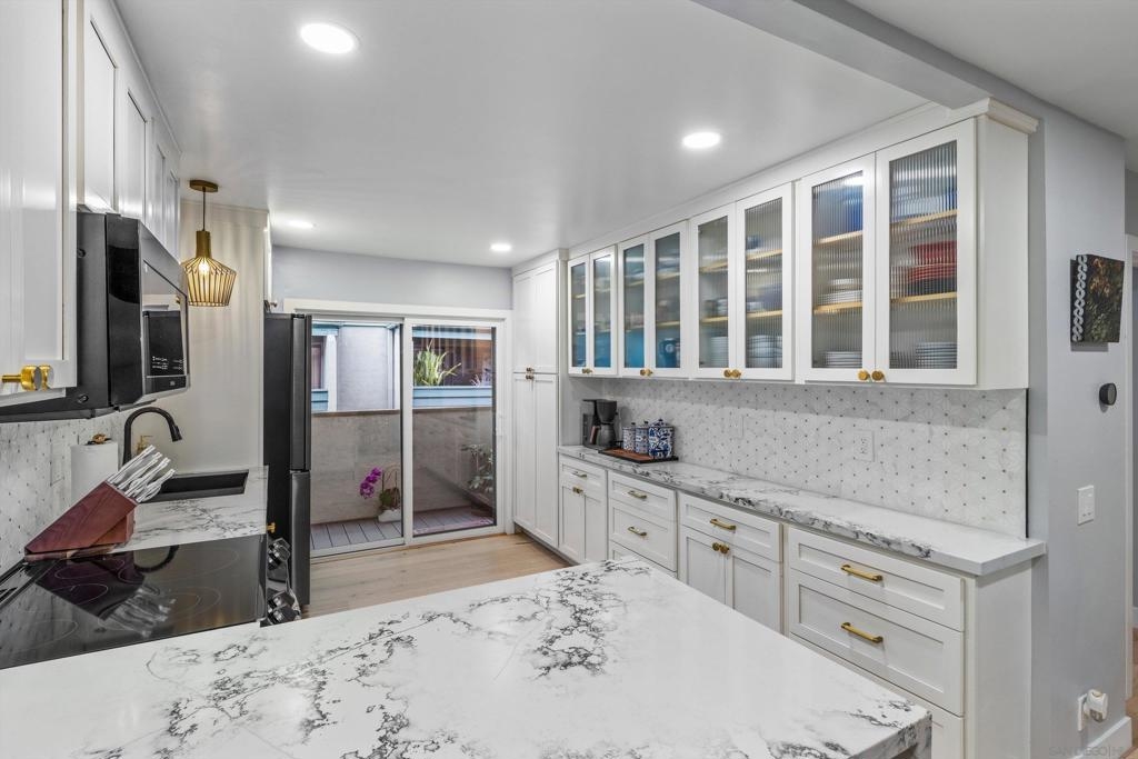 Welcome to Eastbluff La Jolla—an ideally located community just minutes from UCSD, world-class beaches, Scripps Hospital, shopping, dining, and convenient freeway access. This beautifully renovated townhome offers a rare combination of thoughtful upgrades, functional layout, and everyday convenience. Completely remodeled down to the studs in 2023, the home features new electrical and plumbing, engineered-wood flooring throughout, solid-wood interior doors, custom lighting, and Milgard windows and sliders. The spacious living room is anchored by a gas fireplace with custom tile, a new insert, and custom-designed doors, creating a comfortable and inviting space. A separate dining area makes entertaining easy, while the updated kitchen showcases custom cabinetry, quartz countertops, and new appliances, with access to an upper-level balcony—perfect for morning coffee or evening wind-downs. All three bathrooms have been fully redesigned with custom tile, new vanities, and modern fixtures. Additional upgrades include built-in closet organizers, a tankless water heater, a new furnace with a Nest thermostat, an upgraded electrical panel, fresh interior paint, and a Tesla charger. The attached two-car garage offers direct access to the home along with added storage and custom shelving. Outdoor living was enhanced with a regraded front patio and new pavers. Recent improvements have continued to enhance the turnkey appeal, including termite tenting and exterior wood repairs in 2024, as well as a new roof and chimney cap in 2025. Eastbluff La Jolla features two community pools, a clubhouse, and proximity to Villa La Jolla Park. This is a move-in-ready opportunity for buyers seeking a well-updated home in one of La Jolla’s most convenient and desirable neighborhoods.