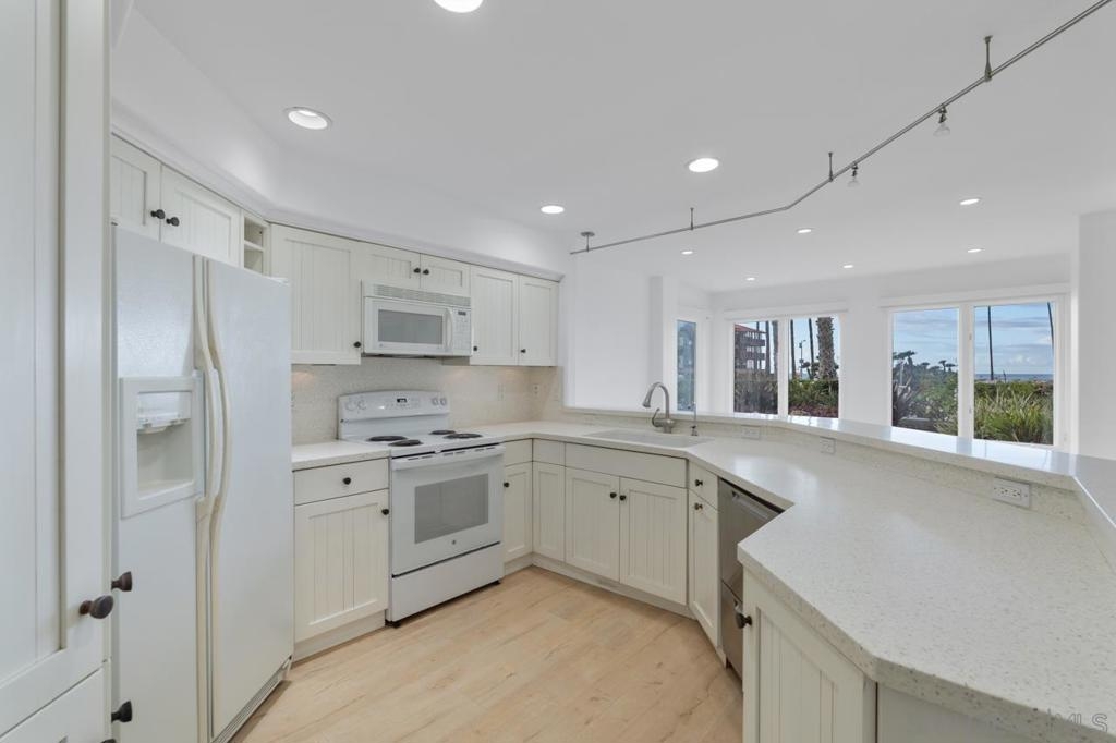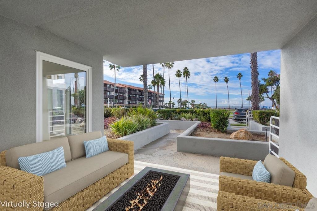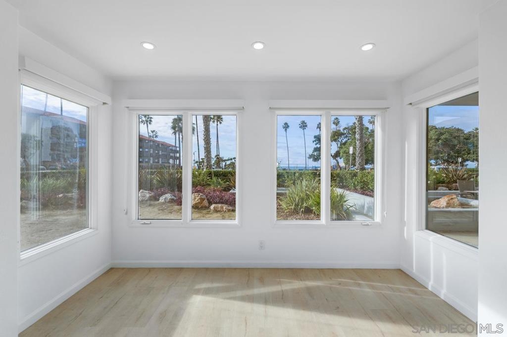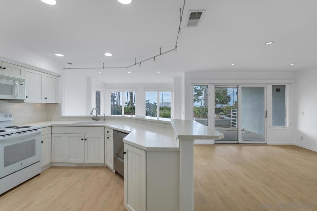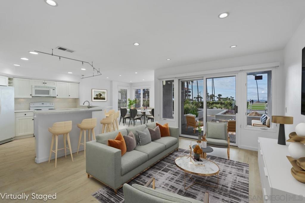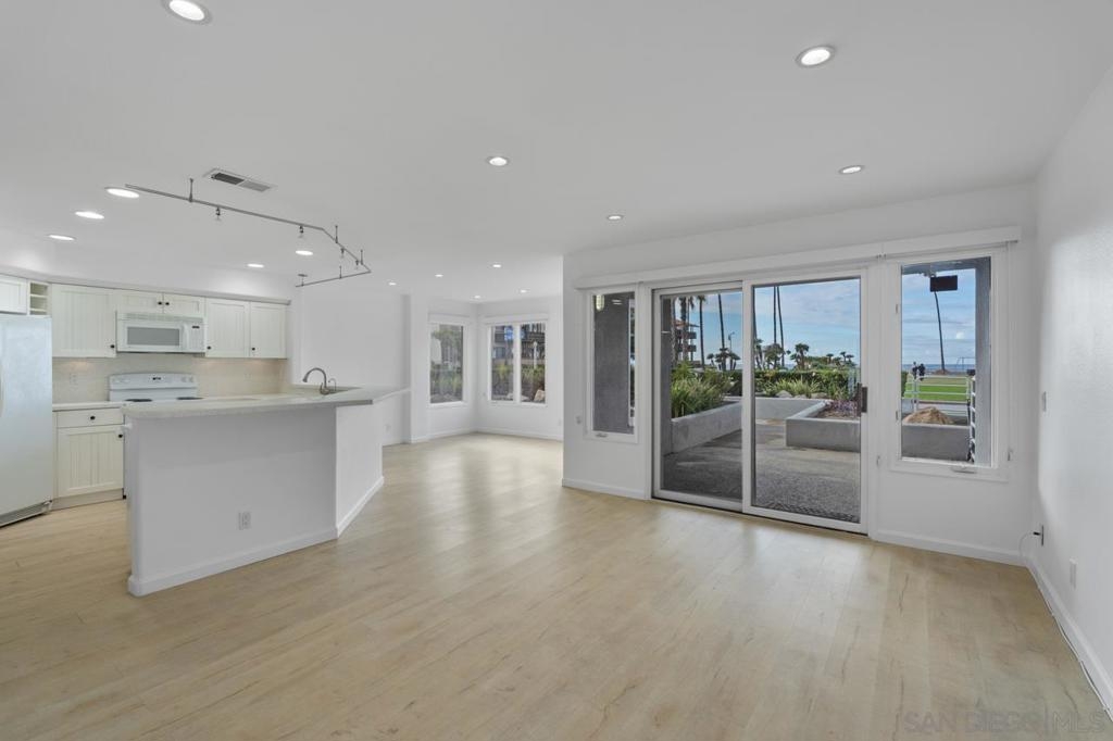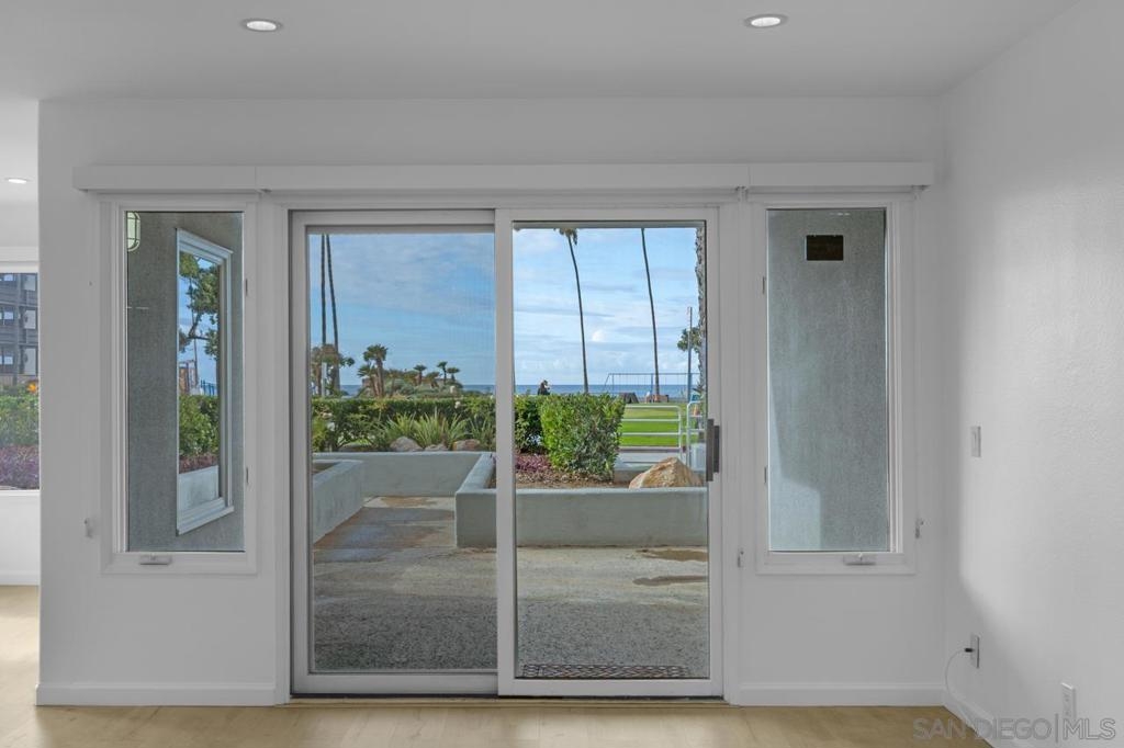 Stunning oceanfront location. Single-level sunlit condo has unobstructed views of the Pacific Ocean. With direct access to the beach and Kellogg Park, this La Jolla Shores condo personifies the definition of location, location, location. The indoor and outdoor spaces flow seamlessly onto the sit-down view patio. Rarely available/highly sought-after address. Ground floor 2 bedroom, 2 bath unit with 2-car gated parking with elevator access. 2 blocks from dining and shops in the village at the Shores. Spectacular oceanfront single level ground floor condo with unobstructed views of the Pacific Ocean. With direct access to the grassy lawns of Kellogg Park and the sandy beaches of this prime stretch of coastline, this La Jolla Shores condo personifies the definition of location, location, location. Rarely available, highly sought-after address, newly painted, and move-in ready. Sunny, light and bright 2 bedroom, 2 bath open floor plan unit. The living room flows onto the outdoor patio with sit-down views (the sunsets are amazing). 2 car secure underground parking with elevator access in a controlled access building. 2 short blocks from the restaurants and shops in the village at the Shores. Recessed lighting, A/C, full-sized laundry, and did I mention the views? No short-term rentals; 30 day minimum required.