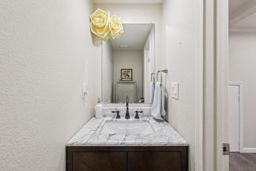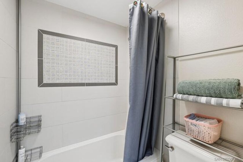 PRIME LA JOLLA SHORES HEIGHTS LOCATION * WEST OF THE 5 FREEWAY * LARGE TOWNHOME ONLY SHARING ONE WALL * BEAUTIFULLY UPGRADED BONUS ROOM DOWNSTAIRS * LARGE BACKYARD * 2 CAR ATTACHED GARAGE WITH EXTRA OUTDOOR PARKING SPACE! Beautifully upgraded and truly impressive, this home makes a stunning first impression the moment you walk through the door, showcasing quality finishes, thoughtful updates, and a layout perfectly designed for comfortable living and entertaining. The fully remodeled kitchen is a standout, featuring gray shaker cabinetry, abundant counter space, sleek quartz countertops, stainless steel appliances, and elegant hardware paired with a striking gold-bronze faucet that adds the perfect designer touch. Throughout the home you’ll find upgraded flooring, crown molding, recessed lighting, 3 skylights that bring in natural light, and a large fireplace anchoring the living room, while a separate family room provides additional space to relax or gather. A versatile optional room or den on the first floor offers flexibility for guests, a home office, or multi-generational living.Upstairs, three spacious bedrooms feature vaulted ceilings that enhance the open, airy feel. The primary suite is truly special, complete with its own private balcony and a beautifully upgraded bathroom boasting a double vanity, soaking tub, matching tile accents, and a walk-in closet. The hall bathroom is equally refined with a designer vanity and walk-in shower, and the convenient upstairs laundry closet makes daily living easy. Step outside to a large backyard that backs to a greenbelt, offering privacy and the perfect setting for entertaining, relaxing, or simply enjoying the outdoors. The two-car garage provides direct access into the home, plus an additional parking space for added convenience. Water is included in the HOA, and the brand-new roof adds even more value and peace of mind. With only one shared wall, this home has the privacy and comfort you want. All appliances convey (including washer and dryer) and 3 mounted TV's.Located in the beautifully tree-lined community of La Jolla Shores Heights, residents enjoy access to a pool, tennis court, and playground, and is just minutes from UCSD (within walking distance), UTC Mall, La Jolla Playhouse, Birch Aquarium, La Jolla Village shopping and dining, Whole Foods, Trader Joe’s, AMC, the trolley station, YMCA, parks, and the world-famous beaches of La Jolla Shores and San Diego's famous beaches. This is the total package — style, comfort, location, and lifestyle all in one!