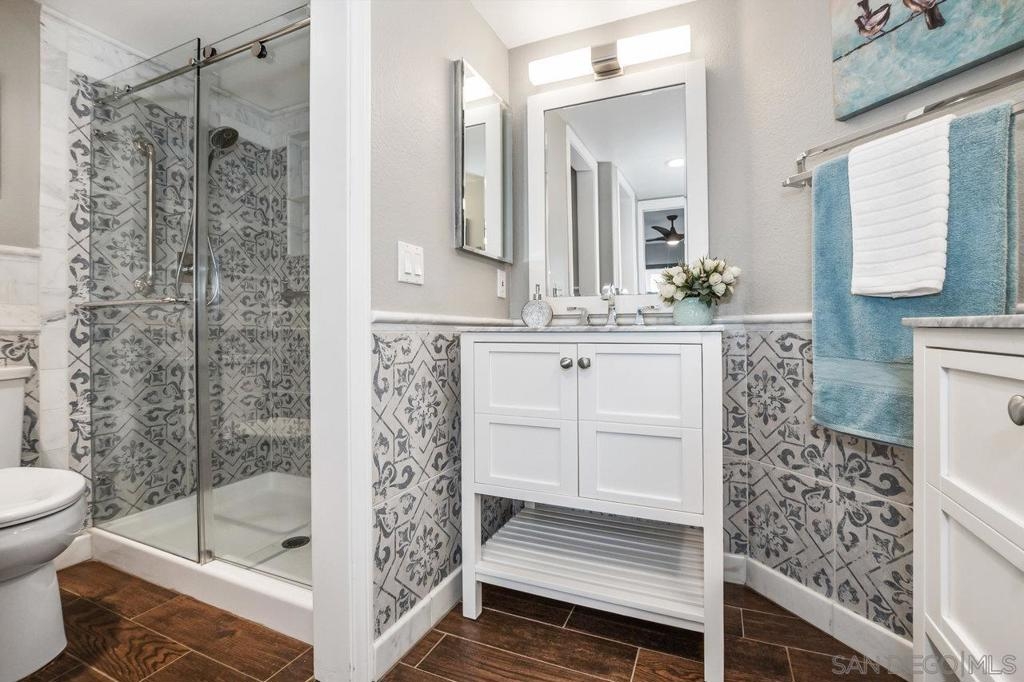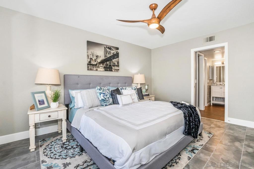 Rarely available top-floor condo in the gated La Flor Del La Jolla community. Located in an ideal location in the heart of The Village and within easy walking distance to all shopping, beaches, restaurants, parks, La Jolla Cove, nightlife, churches, schools, and many more! It is truly a walker's paradise! The top floor location within the community gives you the privacy of no neighbors above you and peek-a-boo views of the ocean. This spacious 2 bedroom, 2 bath condo has been updated throughout and does not require anything besides a new owner. Upgrades include plantation shutters for maximum privacy, wet bar, LED lighting throughout, reversible Minka Air Fans, updated baths, and more. The nicely updated kitchen includes updated cabinets with self-closing drawers, granite countertops with marble backsplash, and stainless steel appliances. The large master bath features a walk-in shower, walk-in closet, and his/her sink vanities. The large patio off the back of the property is accessible from both bedrooms and has an additional storage closet. The property includes elevator access to the underground parking and 2 assigned side-by-side parking spaces with storage lockers. This home has been meticulously maintained and is move-in ready. 30-Day rentals are allowed and the low HOA covers water & trash. Rarely available top-floor condo in the gated La Flor Del La Jolla community. Located in an ideal location in the heart of The Village and within easy walking distance to all shopping, beaches, restaurants, parks, La Jolla Cove, nightlife, churches, schools, and many more! It is truly a walker's paradise! The top floor location within the community gives you the privacy of no neighbors above you and peek-a-boo views of the ocean. This spacious 2 bedroom, 2 bath condo has been updated throughout and does not require anything besides a new owner. Upgrades include plantation shutters for maximum privacy, wet bar, LED lighting throughout, reversible Minka Air Fans, updated baths, and more. The nicely updated kitchen includes updated cabinets with self-closing drawers, granite countertops with marble backsplash, and stainless steel appliances. The large master bath features a walk-in shower, walk-in closet, and his/her sink vanities. The large patio off the back of the property is accessible from both bedrooms and has an additional storage closet. The property includes elevator access to the underground parking and 2 assigned side-by-side parking spaces with storage lockers. This home has been meticulously maintained and is move-in ready. 30-Day rentals are allowed and the HOA covers water & trash. Complex Features: ,,, Equipment: Dryer, Range/Oven, Washer Sewer: Sewer Connected Topography: LL