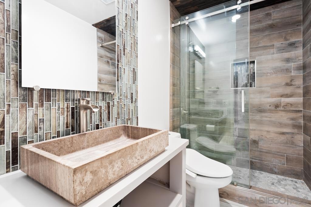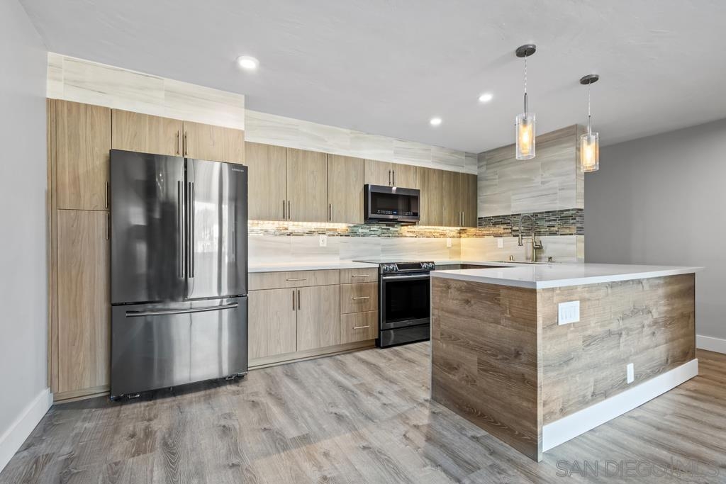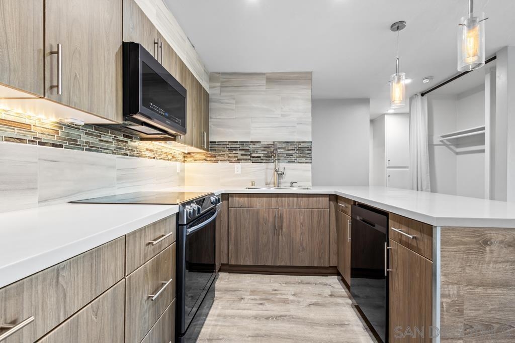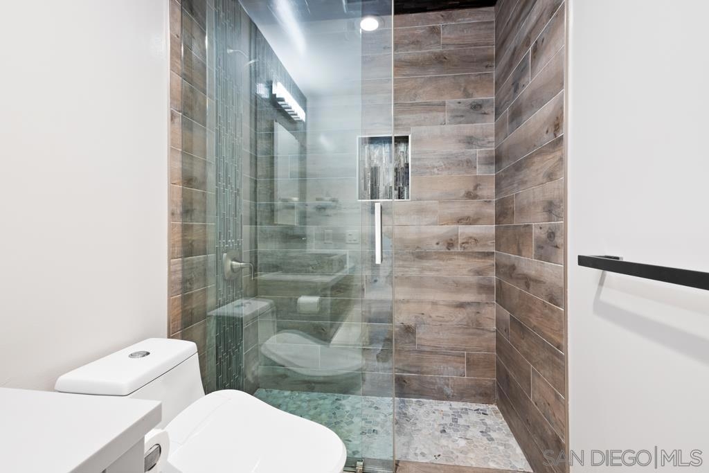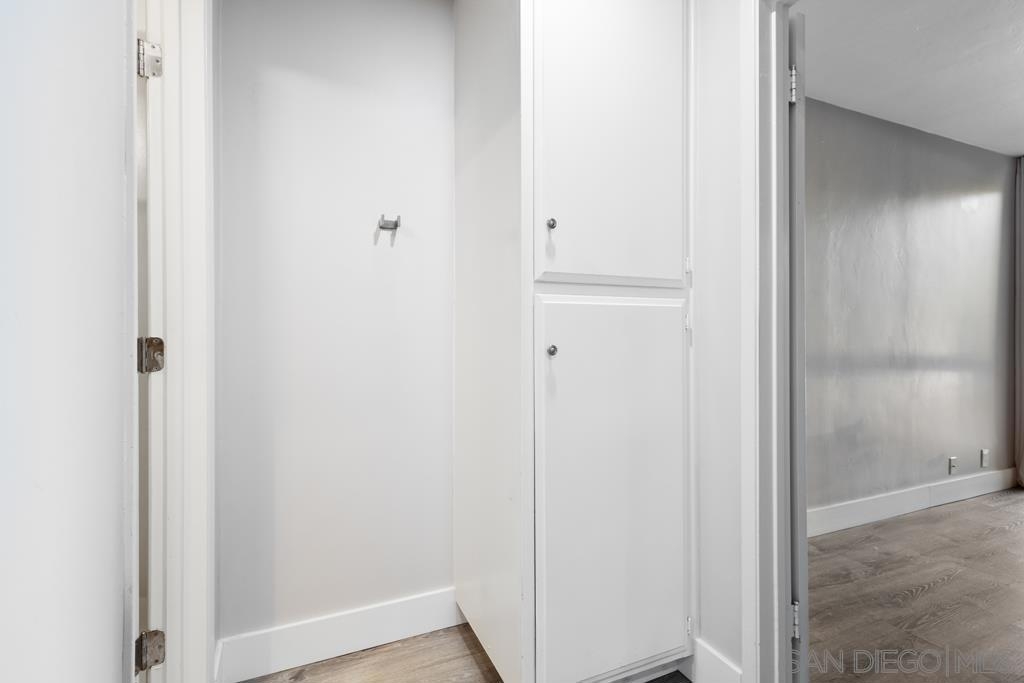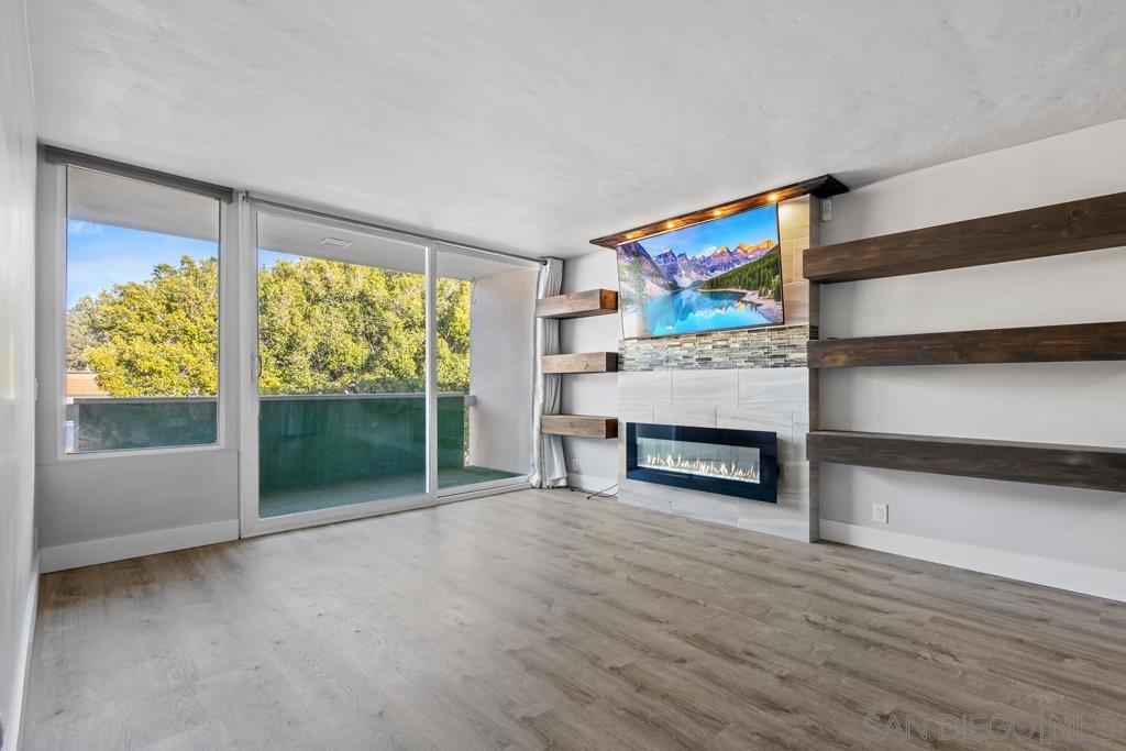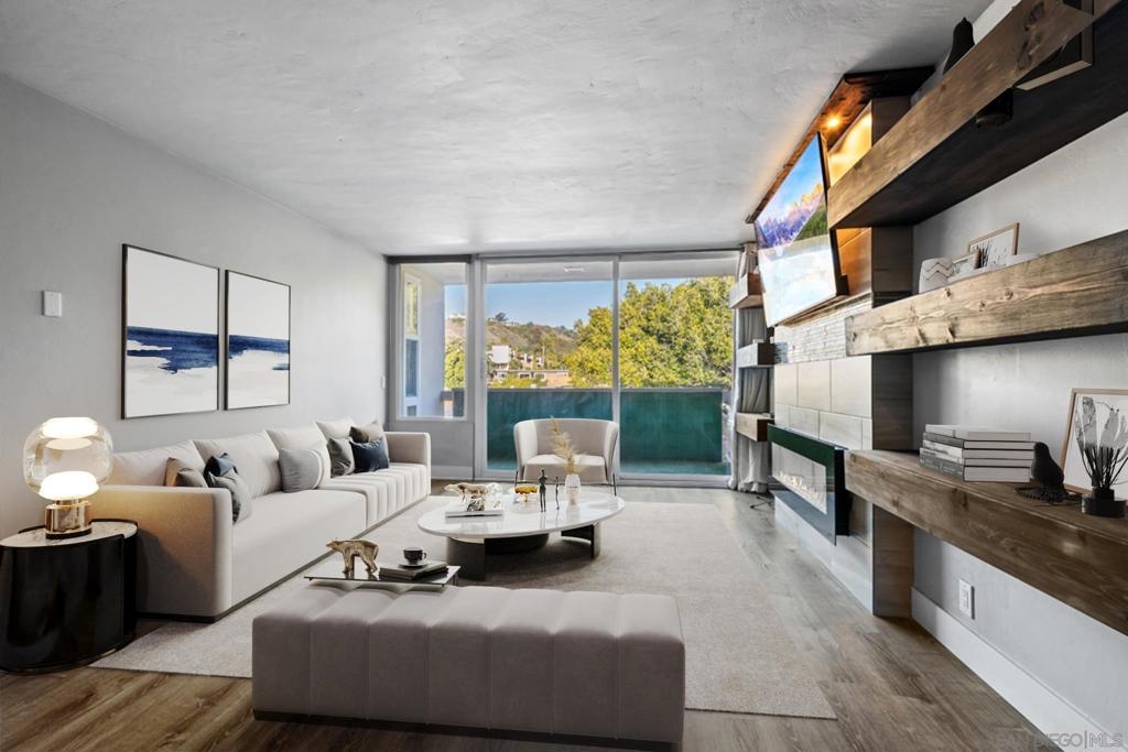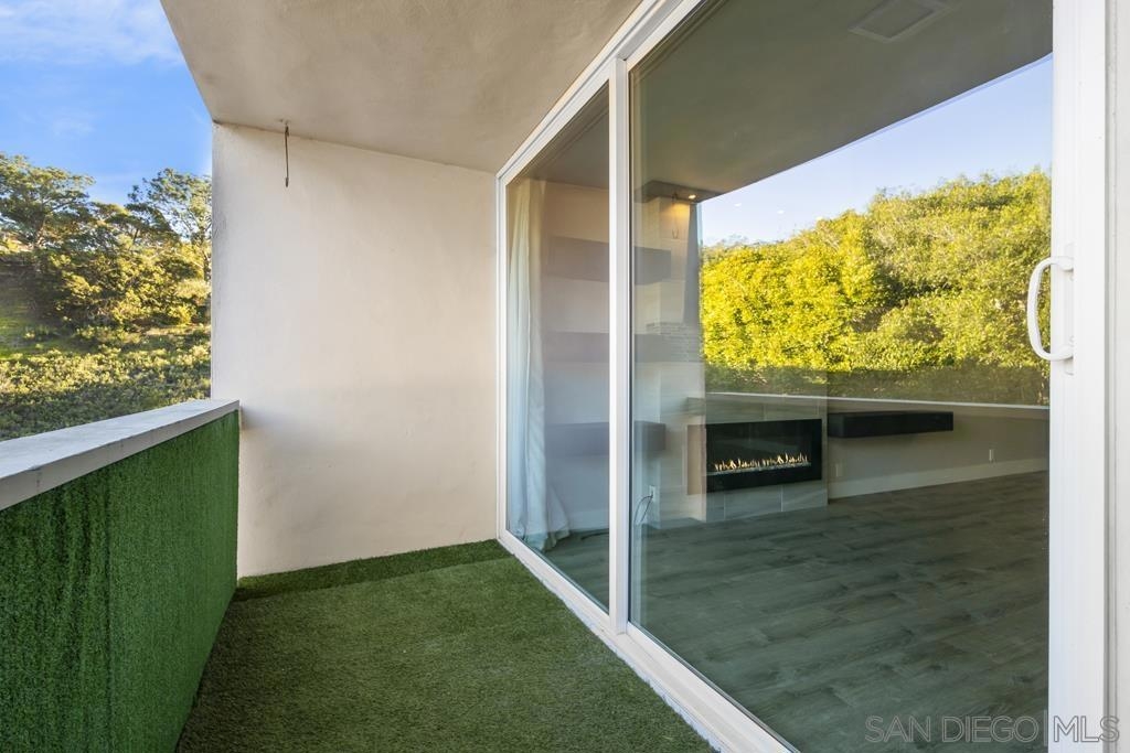 West of Highway 5 respite from the beach awaits you! Top to bottom complete renovation of this condo. Centrally located & just minutes away from the beaches, UCSD, shops/restaurants & freeways. Recently installed luxury vinyl tile & baseboards, recessed / pendant lighting, new paint, bathroom renovation & state of the art appliances less than 5-years old. Private balcony with faux grass installed. Quiet complex with 1- assigned parking spot, community pool / laundry room & small storage space. Wall mounted TV & electric fireplace / heater will convey.. The building underwent renovations in 2016-2017. New roof, new stone façade, new flooring/lighting in common hallways, new floors in hallways, new paint throughout. A process does exist by which the owner may able to submit a request to the HOA in order to install in unit laundry hookups. Neither the seller or listing broker warrant or guarantee the HOA will approve this. A copy of the HOA request form has been uploaded into the documents section. No A/C installed. Cooling accomplished by opening the windows and sliding glass door.