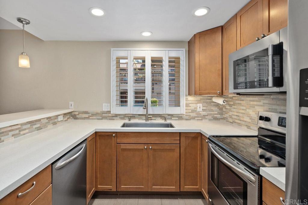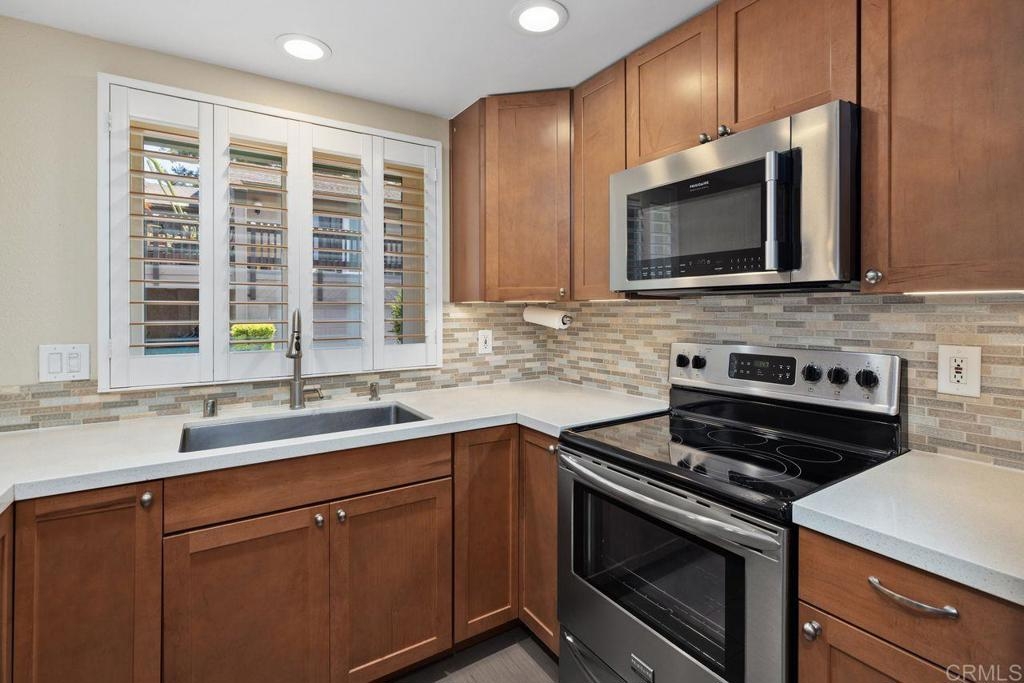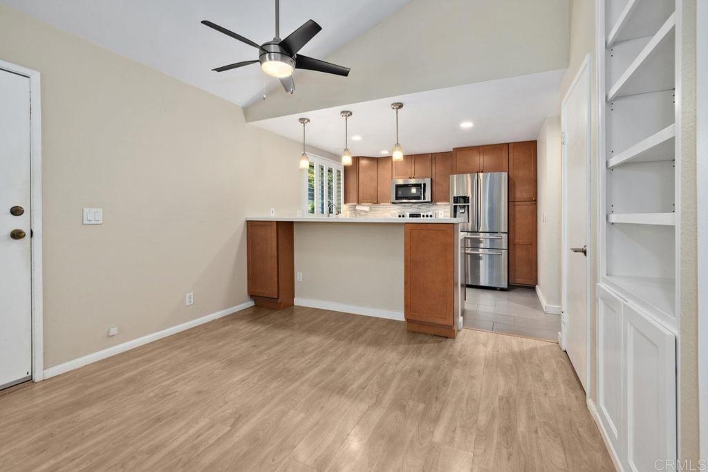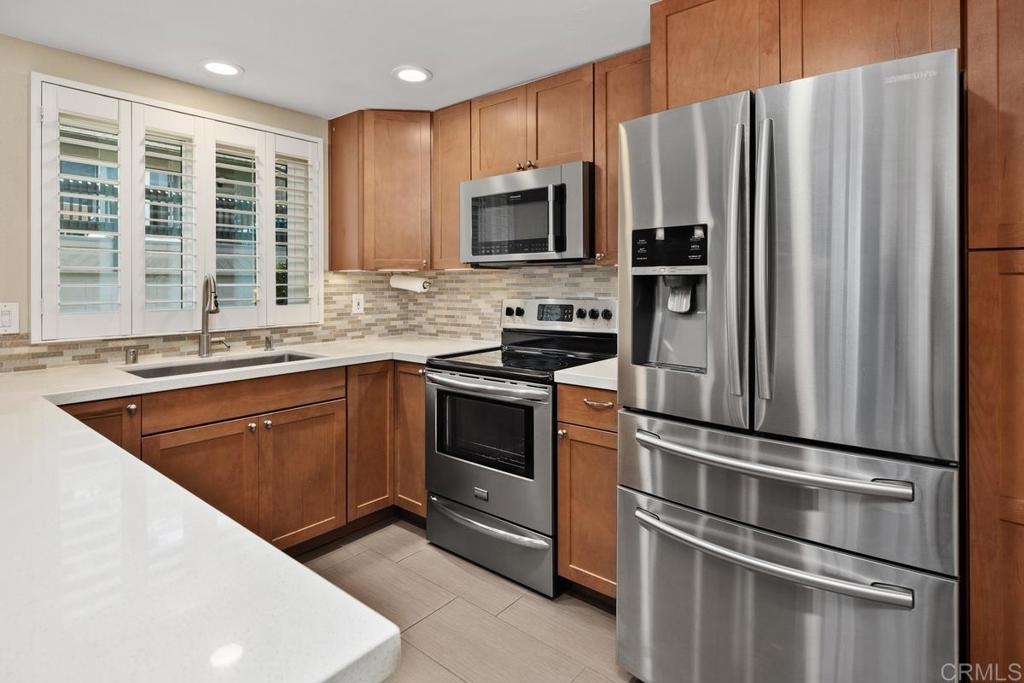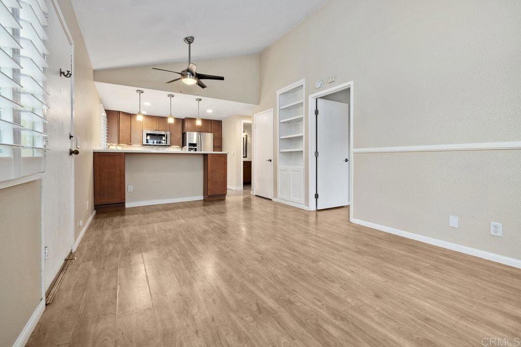 Discover effortless living in this beautifully remodeled single-level unit located in the desirable La Jolla Park Villas community. With no neighbors above or below, this sunny home offers the feel and comfort of a standalone residence, complete with carport parking and a convenient step-free pathway right to your front door. Step inside to an open and spacious floor plan filled with natural light, vaulted ceilings, and dual-paned windows for energy efficiency. Enjoy stylish upgrades throughout, including newer flooring, a modern kitchen with quartz countertops, stainless steel appliances, newer cabinets and loads of storage. The renovated bathroom exudes contemporary charm. The large primary bedroom features a huge walk-in closet, with additional attic storage complete with pull-down stairs. There is also carport storage and patio storage ensure there is a place for everything. This home is perfectly positioned near UCSD, a wonderful park-there is direct park access from the complex, shopping, dining, the trolley line, and a full range of restaurants, shopping and support services. All of this in a peaceful, well-maintained complex with low HOA fees.