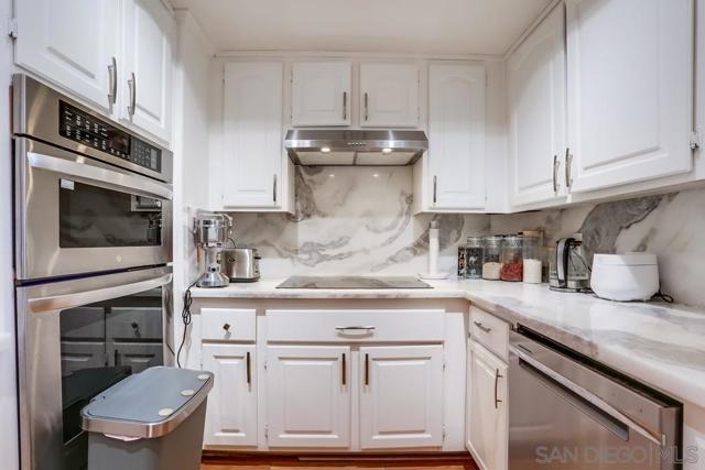 Contemporary 3BR/2BA condo in the heart of La Jolla Village offering hardwood floors, a quartz-finished chef’s kitchen with stainless steel appliances, custom cabinetry, and recessed lighting. Bathrooms feature updated tile finishes, and the living room is anchored by a charming stone fireplace. Additional highlights include dual-pane windows, in-unit laundry, and two secured, side- by-side underground parking spaces with a lockable entry. This well-kept building offers a small gym, elevator access, and a dedicated storage room for each unit. HOA covers common area maintenance. Located just minutes to the beach, world-class dining, shops, CVS, and Pavilions. The La Jolla Library sits directly behind the property, with the La Jolla Recreation and Tennis Center nearby. A rare opportunity to enjoy prime Village living with modern upgrades, secure parking, and unmatched walkability.