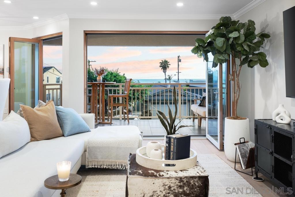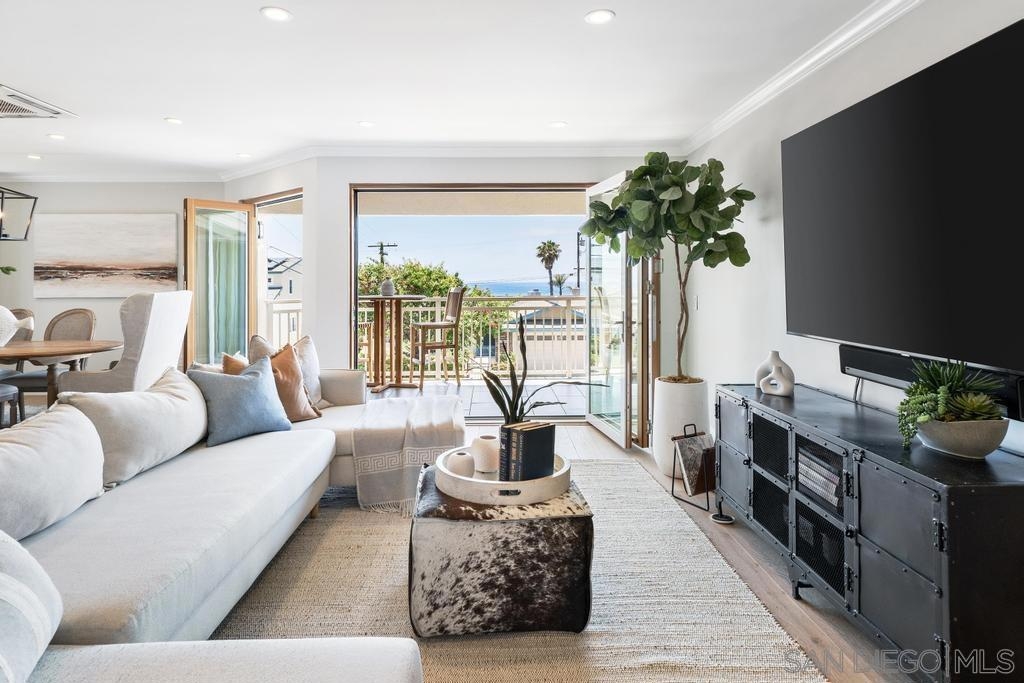 Gorgeous single-level w/ stunning OCEAN VIEWS from this home COMPLETELY REMODELED for owners. Watch the sunset from your chef's kitchen,dining area, living room or balcony. Rare southwest facing corner end unit is flooded natural light in quiet location w/no expenses spared! Prime Birdrock location w/ French Oak Wide Plank flooring, Carrera Marble counters in kitchen Thermador Professional Series Appliances, Cantina sliding doors to W. balcony, 4 Samsung TV's, Rohl Bathroom fixtures in master, Kohl deep tub in guest bath, California custom closets,Tier 5 EV electric car charger. A/C ,storage& more! Sun rises in the master and sets in the living room.Walk to all! Flooring: French Oak Wide Plank ~ Thermador Professional Series Kitchen Appliances ~ Carrera Honed Marble Countertops in kitchen ~ Carrera Marble in Master Bathroom ~ ROHL Bathroom fixtures in Master Bathroom ~ Kohl Deep tub in Jack and Jill Bathroom ~ Newport Brass fixtures in kitchen ~ KHOLER toilets in all bathrooms ~ GREE Split Unit Air Conditioning in all rooms ~ Cantina Sliding doors leading out to West Balcony ~ California Custom Closets in each Bedroom ~ Custom Drapes in each room ~ 75" Living Room Samsung TV ~ 50" Samsung TV in Master ~ 60" TV in Office ~ 42" TV in guest room~Electric Car Charger - Tier5 EV Charger ~ Two storage units 1 private 1 above parking spots ~ 2 Tandum Parking Spots in Gated Parking ~ Infared Sauna off Master on Balcony