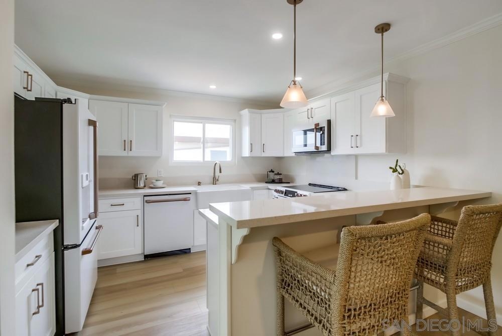 A rare penthouse offering in the heart of Bird Rock — just two blocks from the ocean and steps to world-class dining and boutique shops. This top-floor corner residence is a true coastal sanctuary, offering 2 spacious bedrooms, 2 luxe baths, and 1,465 sq ft of sun-filled, designer-curated living space. Perched on the third floor with no neighbors above or on either side, this unit lives like a detached home — wrapped in windows and flooded with natural light from every angle. The sense of privacy and openness is unmatched. The beautifully remodeled kitchen is equipped with GE Café appliances, custom cabinetry, sleek countertops, and warm bronze fixtures. New flooring runs throughout the home, while ventless A/C units in every room ensure year-round comfort. Enjoy the convenience of in-unit laundry, plus access to a community facility. Your two secure underground parking spaces are just steps from the elevator, providing effortless access. Outside your door, the best of Bird Rock awaits — stroll to cliffside beach paths, grab coffee at local favorites, or enjoy sunset dinners at world class restaurants. Recently remodeled with a stunning new kitchen, fresh flooring throughout, and upgraded windows — homes like this rarely become available. Don’t miss your opportunity to own a truly turnkey penthouse in the heart of Bird Rock.