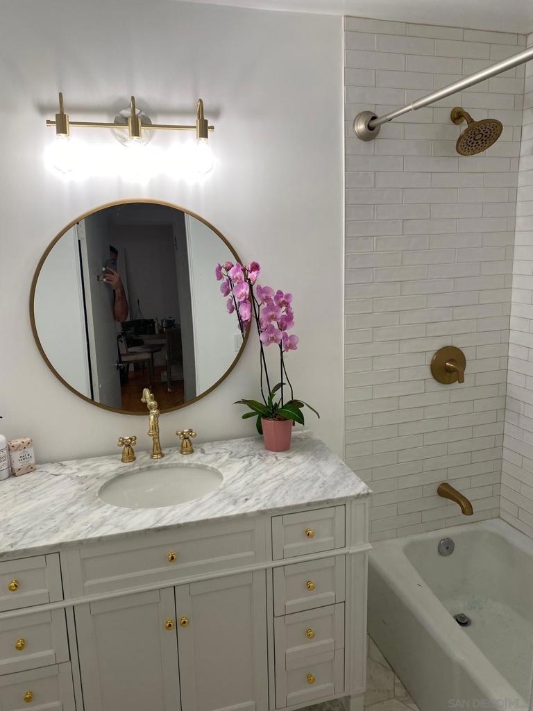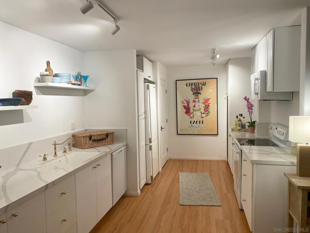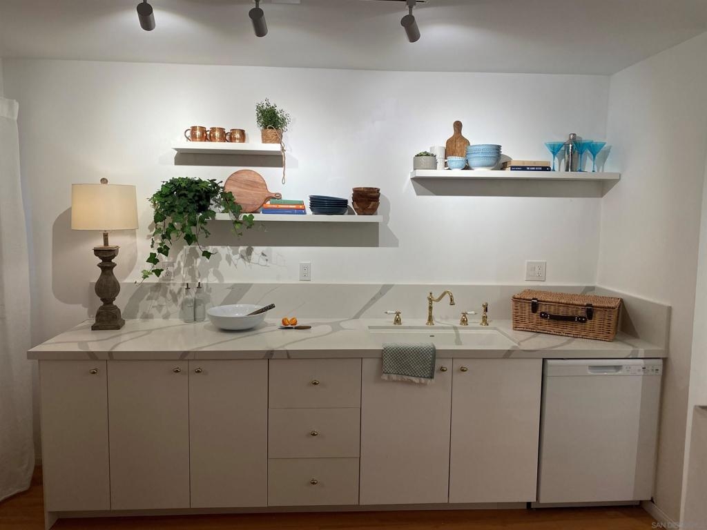 Prime La Jolla Location near La Jolla Shores Shops & Dining. Spacious 1 bed /1 bath unit in an unbeatable location - Walking distance to La Jolla Shores shops, beaches, and renowned restaurants. Recent extensive remodel including new kitchen boasting abundant cabinets and a custom slab countertop offering ample workspace. All new lighting. Brand new in-unit washer/dryer conveniently housed in a separate closet. Fully remodeled bathroom featuring new tile, vanity, and brass fixtures. Freshly painted smooth-finish drywall throughout, enhancing the unit's appeal. Newly installed acoustical bedroom window for added tranquility. Custom-built Murphy Bed provides comfortable accommodation for overnight guests. Generous closet spaces throughout the unit for ample storage. Large, secure tree-lined patio with turf, perfect for pets and outdoor relaxation. Racquet Club amenities include a tennis court, pool, hot tub, fitness room, and gated covered parking. Enjoy the ultimate coastal lifestyle with resort-like amenities and a convenient location, making this condo an ideal choice for discerning buyers seeking comfort, convenience, and style in high-demand La Jolla.