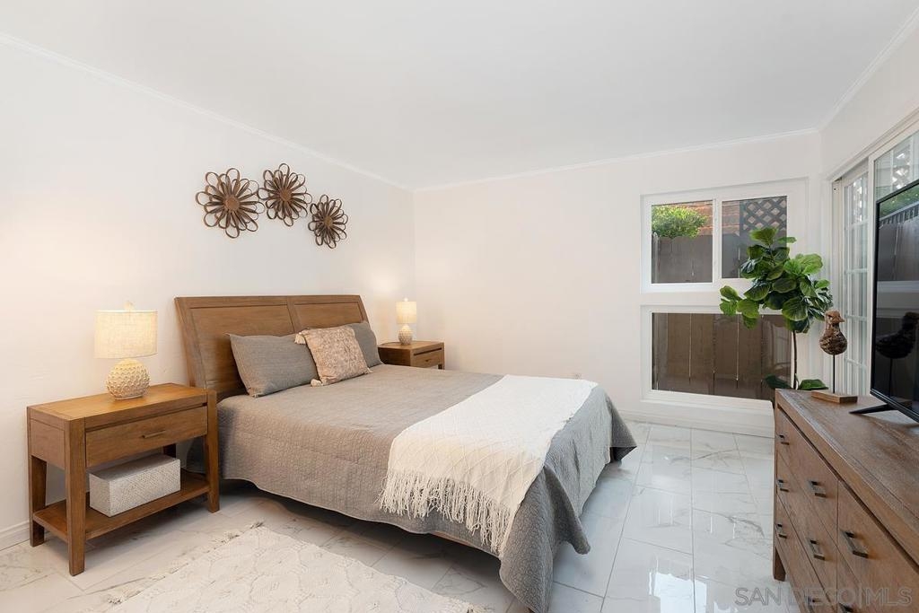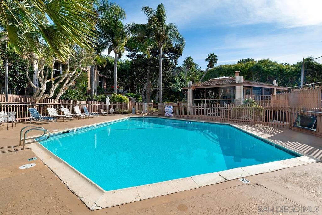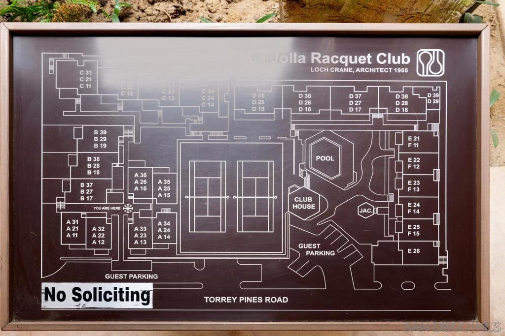 Beautiful La Jolla condo in the Torrey Pines Racquet Club development, only a few blocks from the highly desired La Jolla Shores, close to shopping, fine dining and world class beaches. Single level, ground floor unit. Light and bright, open floor plan, Large kitchen with upgraded countertops. Perfect for entertaining. Additional upgrades also include new double pane vinyl doors, windows and upgraded wood-look porcelain tile in the living areas, with baseboards and crown molding throughout. Both bedrooms have en-suite bathrooms recently remodeled creating a bright spa-like feel. The primary bedroom has a good-size walk-in closet. This condo is nestled in a quiet part of the community, and has one of the largest private backyard patios with sliding door access from both the living room and the primary bedroom. The outdoor patio is sunny and is large enough to create a veggie garden and/or you own outdoor oasis. The condo also has a private, good-size 5 x 3, assigned storage room in a separate building. 1 assigned parking space, underground and gated with plenty of additional parking spaces on the street. The community has beautiful mature landscaping along the walking paths, and offers a pool, jacuzzi, 2 tennis courts, a gym, and a clubhouse. Not to be missed! Come and see it for yourself! See Documents for a list of all the upgrades. Complex Features: ,,,,, Sewer: Sewer Connected Topography: LL
