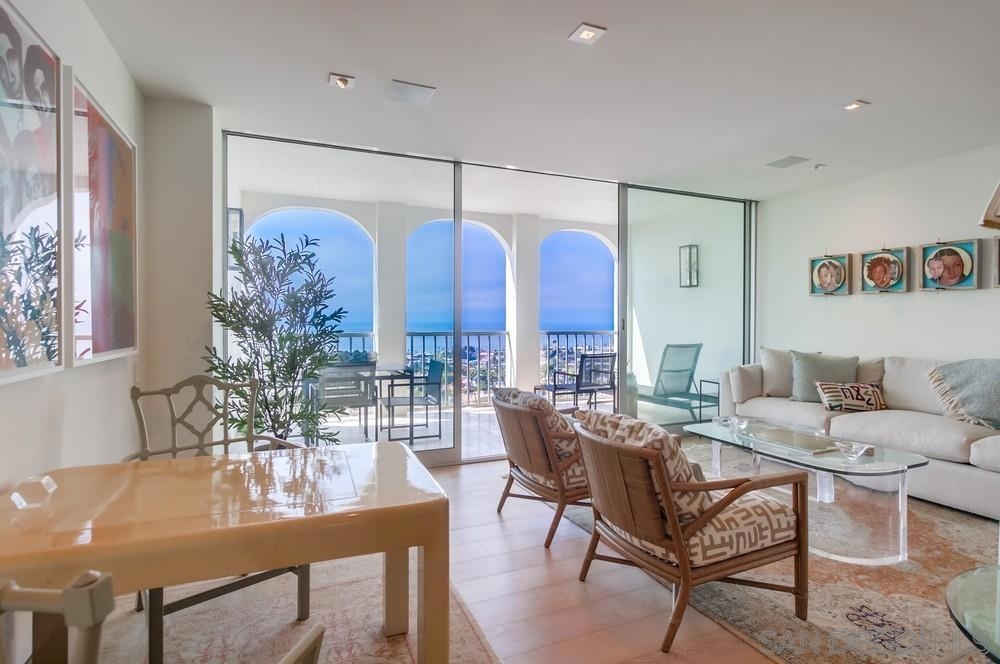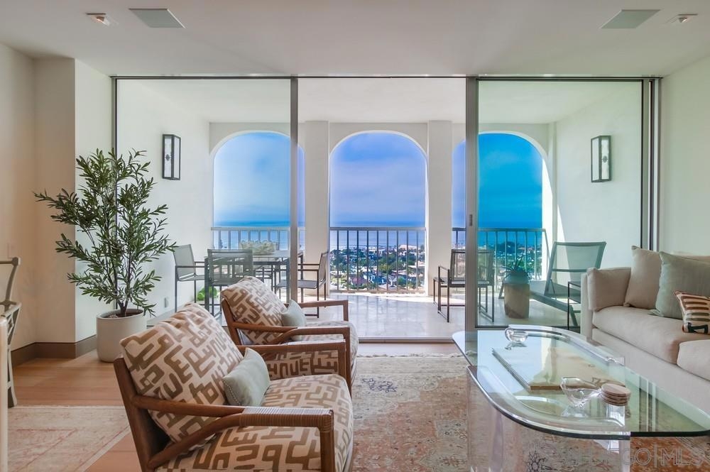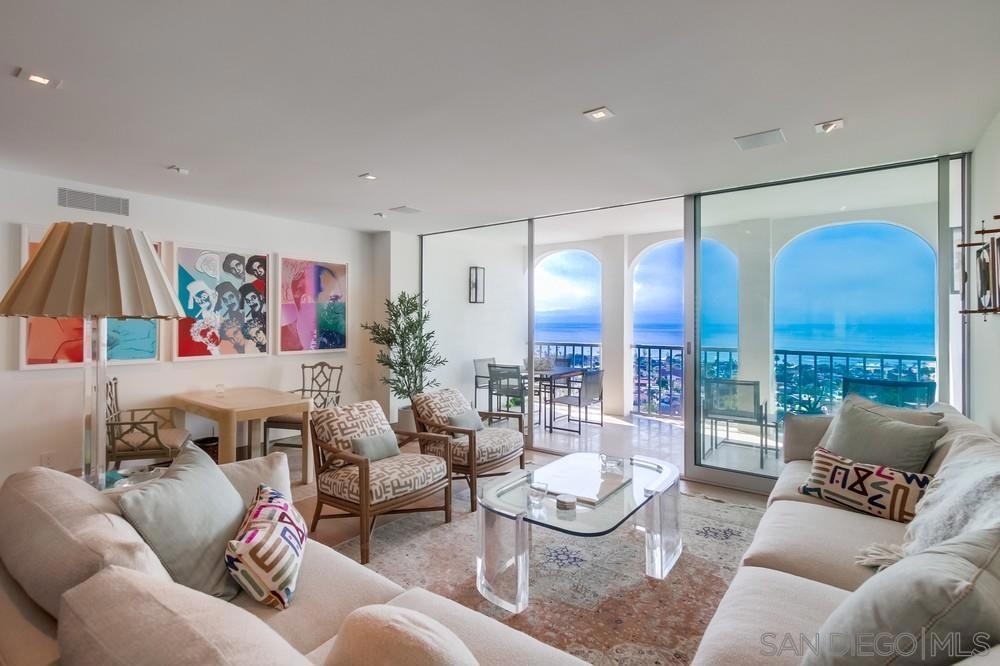 Must see, luxuriously remodeled, high floor, west facing unit, in the Seville, La Jolla’s finest doorman building. Panoramic Pacific Ocean views set the stage for this meticulously crafted unit where no detail was overlooked. Custom crafted furniture, Thermador appliances, Kravet Couture drapery, Thermofoil cabinetry and Caesarstone countertops are just some of the details that make this a one-of-a-kind offering. Sophisticated yet comfortable this unit boasts a beautiful west facing primary suite with a stunning bath and a secondary suite overlooking La Jolla Country Club with its own bath that can double as an office or den. High above the Pacific Ocean in La Jolla, this extraordinary estate offers breathtaking panoramic ocean views. Enjoying a rare combination of seclusion and proximity to the heart of La Jolla, this residence is a true sanctuary. The property boasts a beautifully designed residence with classic architecture, and sophisticated interiors bathed in natural light. The outdoor flow invites you to enjoy the meticulously landscaped grounds providing an idyllic setting for relaxation and entertainment. With elegant finishes, and an open layout designed for both comfort and luxury, this home is a masterpiece of timeless design and full service amenities. Experience the ultimate in privacy and luxury at 1001 Genter St 10G La Jolla - a rare offering in one of la Jolla's most coveted locations.