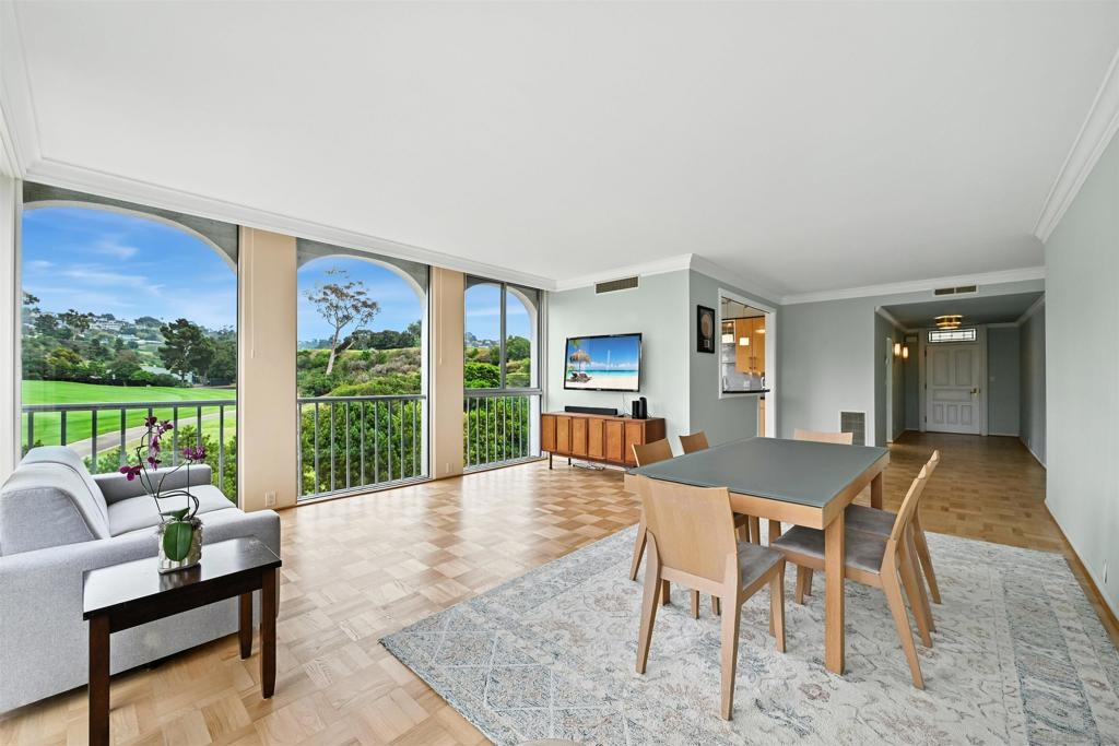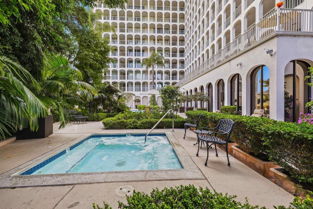Experience the luxurious coastal lifestyle you deserve in the heart of La Jolla. From its premium third-story corner location, this residence showcases breathtaking ocean and golf course views, along with unforgettable sunsets. Situated in the iconic and prestigious Seville building, in the Village of La Jolla, you’ll live just blocks from world-renowned La Jolla beaches, boutique shopping, fine dining, farmers market, museums, entertainment, and top-rated schools. At Seville, exceptional amenities are all included with the HOA: 24/7 concierge service, security, gated entry, heated pool and spa, a well-equipped fitness center, library/meeting room, underground parking with storage, elevator access, plus utilities such as cable, WiFi, water, electricity, and trash. Every detail of this stunning residence is designed for comfort and convenience. Inside, the open floor plan is filled with natural light pouring through floor-to-ceiling arched windows. Features include crown molding, designer lighting, and resurfaced light hardwood parquet flooring. Custom motorized window shades add ease, while the renovated kitchen features sleek modern cabinetry, quartz countertops, stainless steel appliances, and striking steel subway tile accents. The bathroom is finished with white marble floors and a walk-in shower surround, and the spacious bedroom offers two walk-in closets. Soak in the beauty of this coastal paradise every day—your chance to own a piece of La Jolla’s coveted lifestyle awaits. Welcome home!