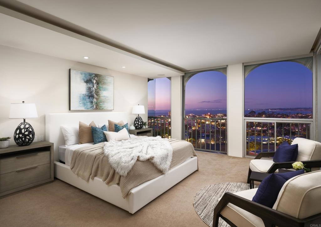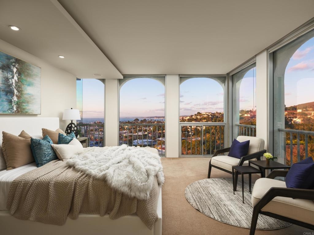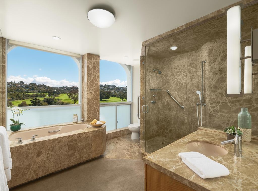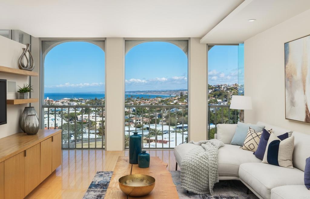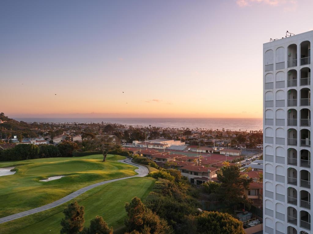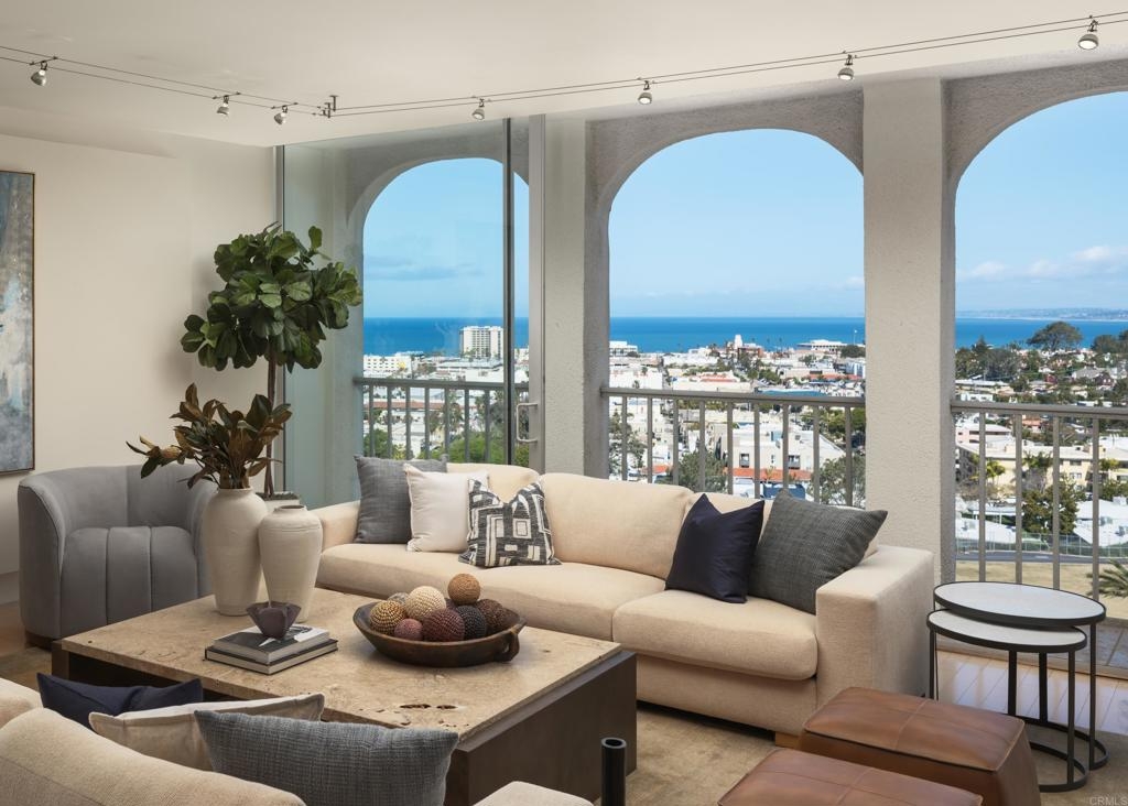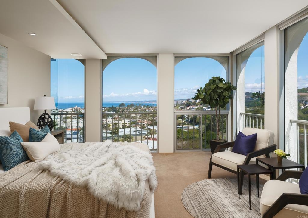 Incredibly rare double unit corner location with spectacular ocean and golf course views at La Jolla's premier full service high rise with the ideal orientation and high floor level to optimize sweeping panoramas and natural light. Unit 9AB offers the exceedingly scarce opportunity to enjoy the spaciousness of the combined units, which have been integrated seamlessly to create an ideal layout to luxuriate in mesmerizing views and the first class amenities of The Seville. Indulge in scenic village, evening lights and north coast ocean vistas through large sliding glass doors from the main living spaces, or gaze over the lush green fairways of La Jolla Country Club from the generously sized primary suite, which is separate from the other secondary bedroom and office for enhanced privacy. Seldom can one find a floorplan in this location with room to display art, entertain guests, but also have an office, laundry room, breakfast area and both formal living & family rooms. To top it off, the unit comes with 2 deeded, secure parking spaces, yet is also a short walk to the Village's finest offerings such as top rated restaurants, charming coffee shops, shopping, a weekly Farmers Market and coastline strolls. The lifestyle in La Jolla is world renowned and there is no better luxury condominium in the area from which to enjoy it.