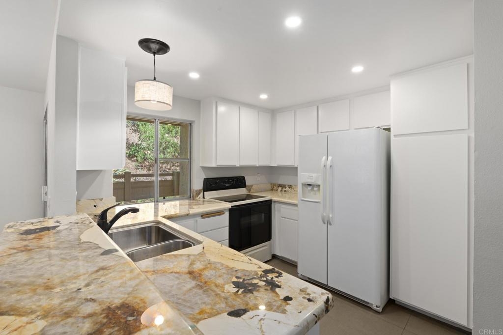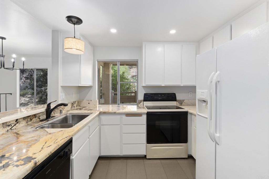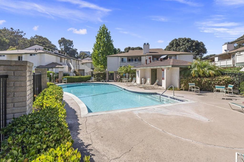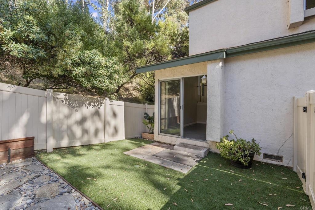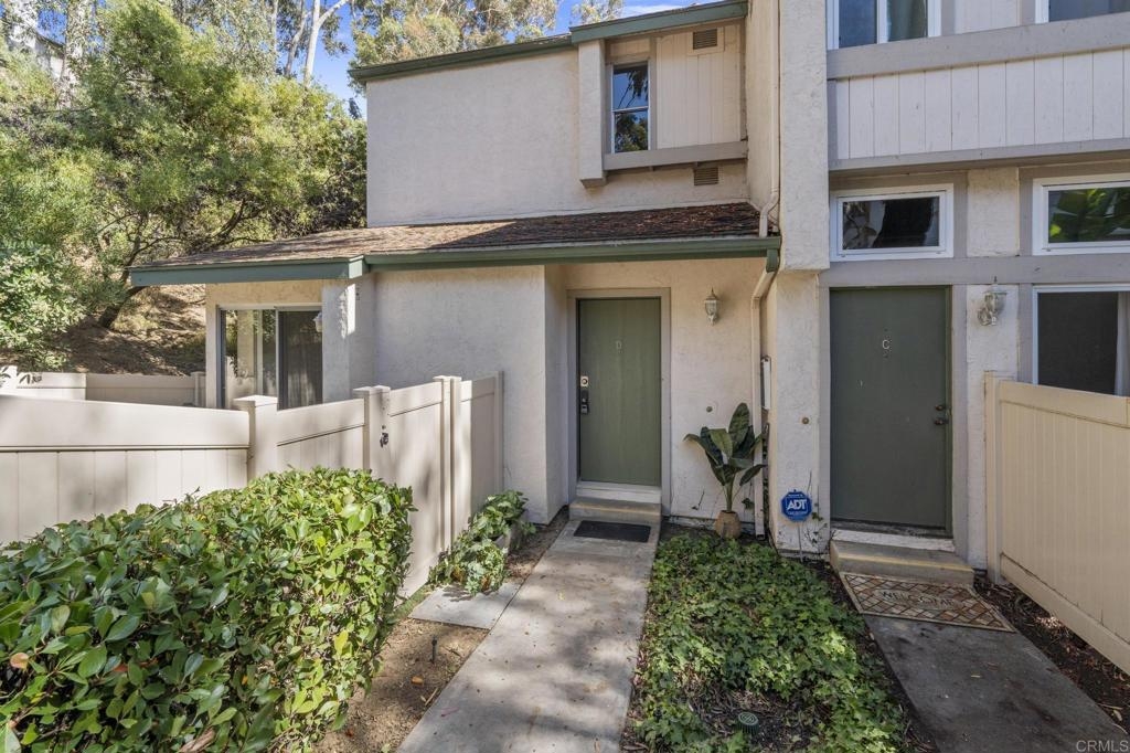 What a find! This La Jolla end-unit two-bedroom townhome features a private fenced-in yard, two-car attached garage, laminate floors throughout (except on stairs), freshly painted top to bottom, granite kitchen countertops, a cozy usable patio off kitchen/dining, updated half-bath, new light fixtures, and a setting beside a grove of trees offering the most peaceful & beautiful view from most windows. Community has two pools. ***Located only half a mile from UCSD and just a few minutes drive to the 5, UTC, and all conveniences.***