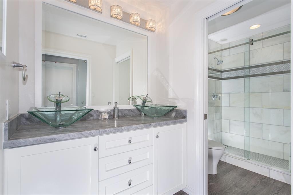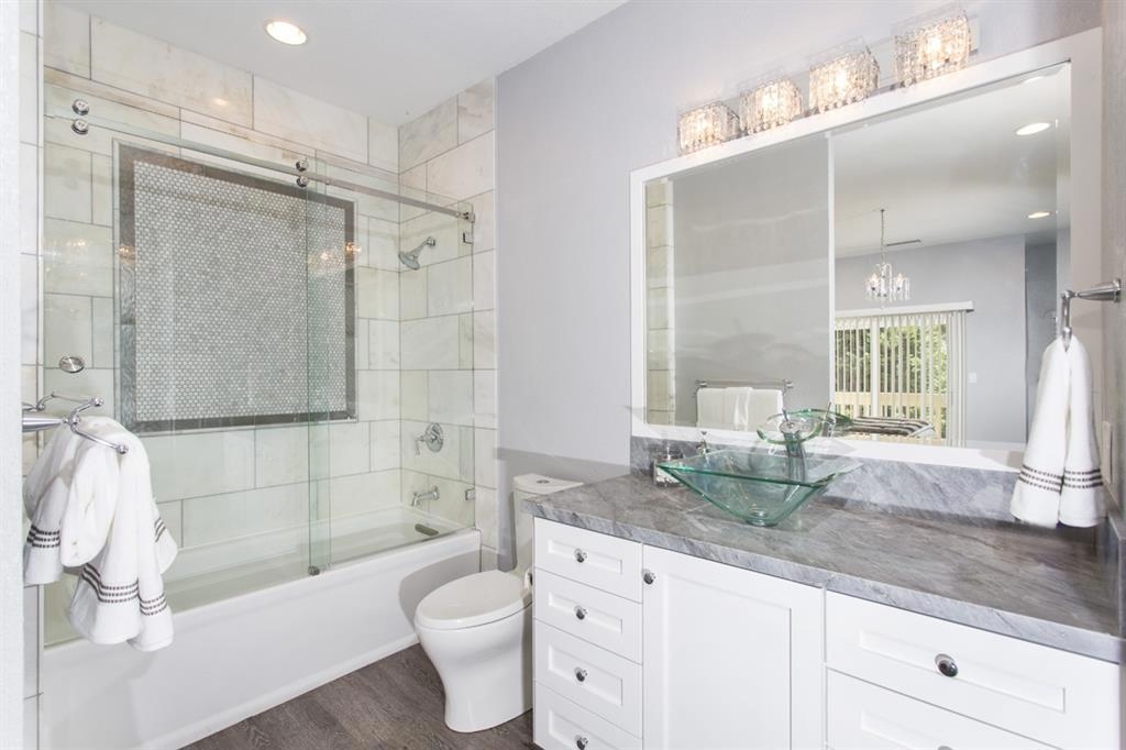 A must see! This is a complete and stunning remodel of a lovely end unit townhome in the La Jolla Village Tennis Club. It has beautiful wood laminate floors throughout the home. Also, the kitchen has been doubled in size and features Granite and Quartz slab countertops, top-of-line Kitchen Aid stainless steel appliances. And, all the windows and sliding patio doors are new dual pane e-glass for quiet comfort and privacy. Central air conditioning was installed for many comfortable nights. See supplement! The Master bedroom and Master bathroom have been beautifully redone into a designer's showcase for a discriminating person. And, the secondary bathroom has been luxuriously transformed with a Patriot frosted glass sliding barn door and a granite counter with two Kraus glass sinks and a custom tiled shower. A Laundry area was constructed upstairs for a regular size washer & dryer and it is located near the bedrooms. Also, there are still washer and dryer hookups in the garage area. Plus, there is a basement area adjoining the garage for extra storage space. This is a great area to live and to play at the two tennis courts, pool and sauna. Also, it's very close to the famous La Jolla beaches, the UTC Shopping Mall, many fine and casual restaurants, Costa Verde's Bristol Farms grocery, the Scripps, V.A. and Thornton Hospitals, the University of California(UCSD) in La Jolla and many bio-tech companies are headquartered, nearby.. Neighborhoods: University City Complex Features: ,,, Equipment: Garage Door Opener, Range/Oven Other Fees: 0 Sewer: Sewer Connected Topography: LL,GSL