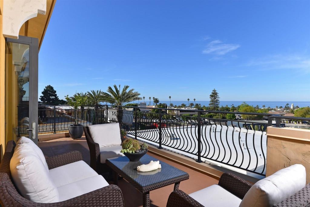 A rare offering in the heart of The Village! This sprawling, single-level Penthouse boasts over 5,600 square feet of luxurious interior space, direct elevator access to the residence, 3 en suite bedrooms plus an office and sitting room, 3 side-by-side parking spots, as well as gorgeous ocean, city and sunset views. Large in scale, the impeccably designed living areas flow seamlessly from one to the next enabling effortless entertaining while creating an ambiance.. of comfortable sophistication. The fully-equipped chef’s kitchen features a center island, stainless steel appliances with two dishwashers, bar seating for 5 in addition to a breakfast area, and an abundance of cabinetry. 5 sets of French doors open onto outdoor spaces including an enlarged, ocean-facing deck ideal for al fresco dining and taking in the views. Tuck yourself away in the private master retreat offering his-and-hers walk-in closets, a luxurious bath, plus a generous sitting room which could be an optional 4th bedroom should that better suit your needs. Other highlights include 2 zones of central forced heat and AC, a security system, 3 fireplaces, motorized shades, 2 half baths, laundry room, 2 trash chutes inside the unit, tons of interior storage, and a dedicated storage room in the common garage. The convenient in-town locale is just a short stroll to the Farmer’s market, schools and shopping with easy access to everything The Village has to offer. Resting securely behind the gate within the Montefaro community where residents enjoy manicured grounds, a pool and spa, remodeled clubhouse, fitness room, sauna, and a lounging area with a fireplace & barbeque. Complex Features: ,,,,,,,, Equipment: Fire Sprinklers, Water Filtration Other Fees: 41.25 Sewer: Sewer Connected Topography: LL