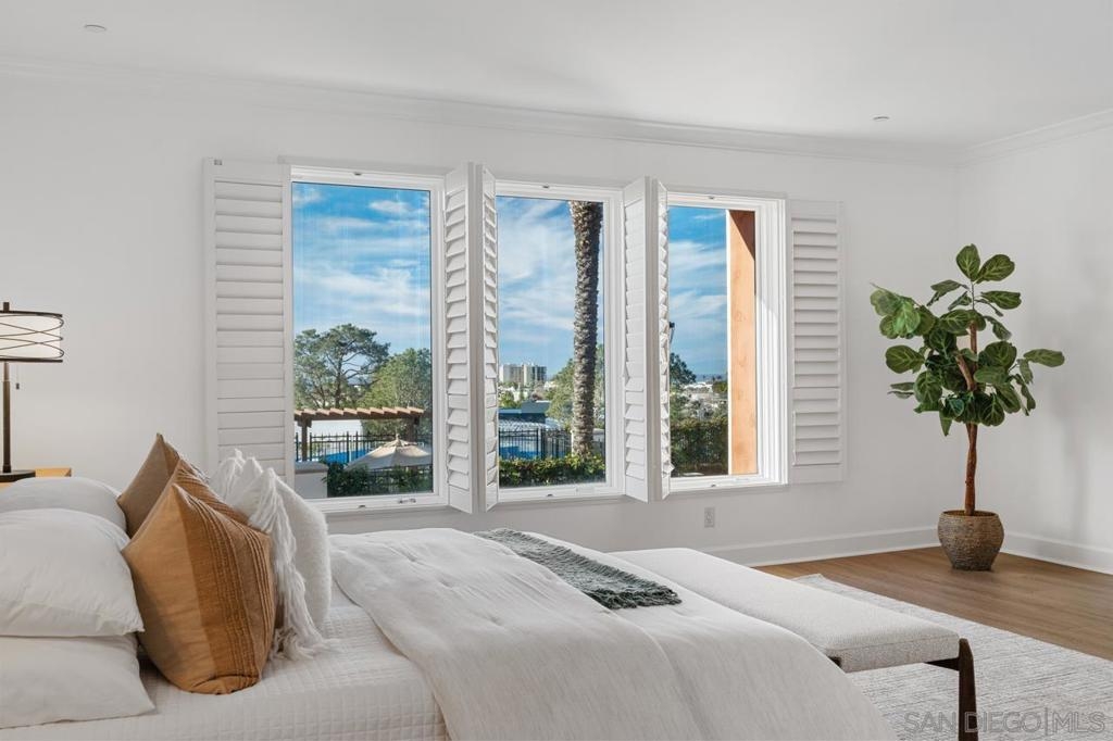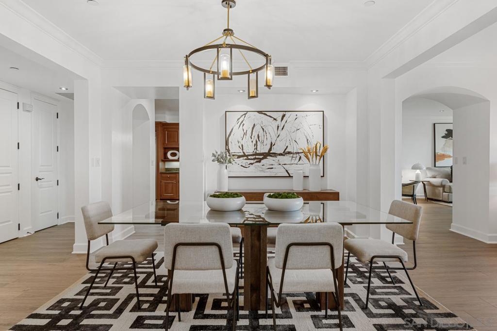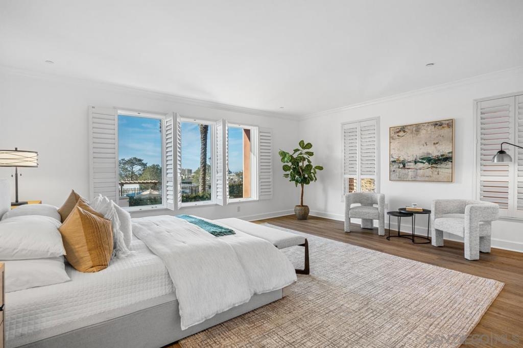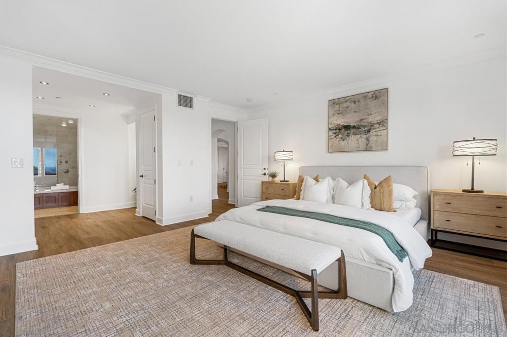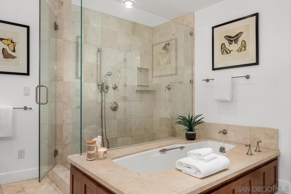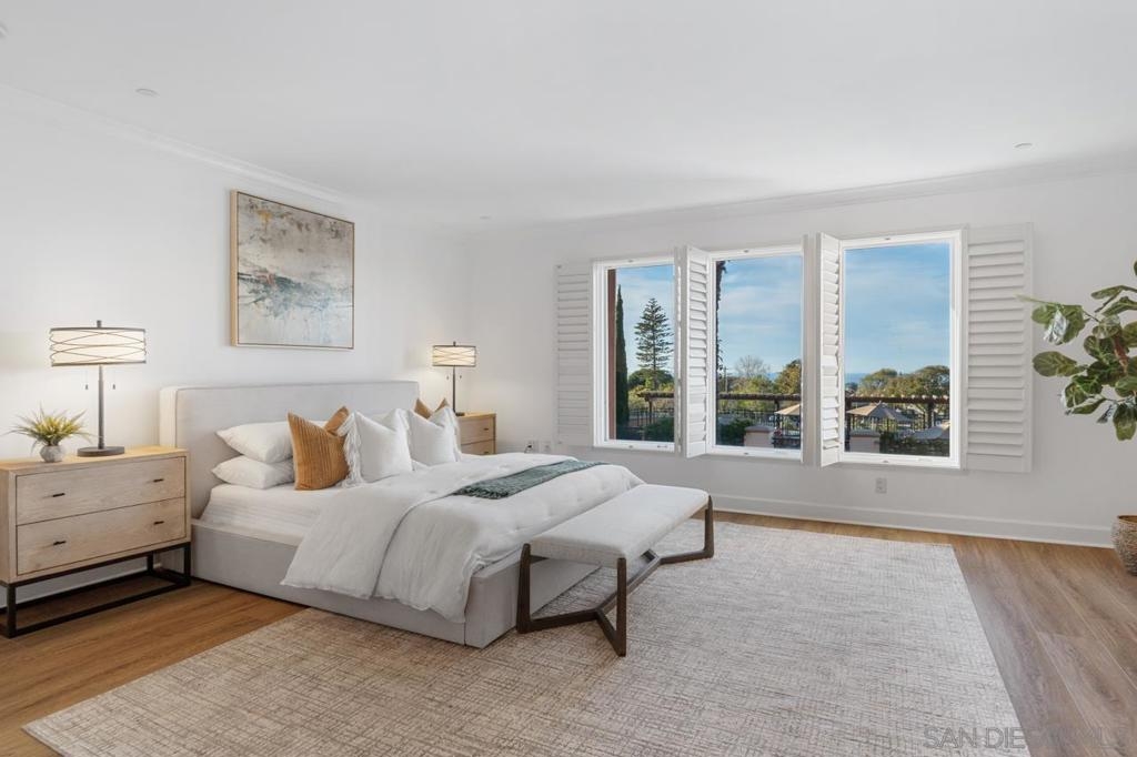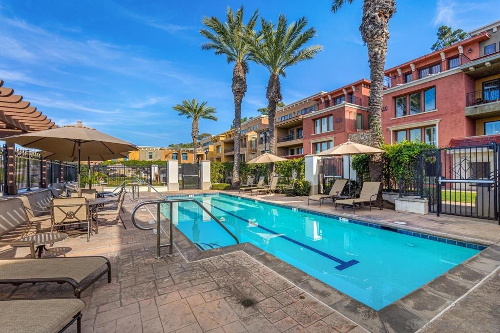 A MUST SEE! Rarely available 3153 sqft single level condo! Welcome to coastal luxury living in the heart of La Jolla Village at Montefaro! This exquisite condo offers an unparalleled blend of spacious elegance and prime location, with beautiful Ocean views. Newly remodeled with luxury Vinyl Flooring and designer paint, you will be charmed by the stunning chef kitchen, the primary suite retreat and large balcony looking at the pool and ocean! Just minutes away from the pristine beaches that define Southern California living. Enjoy lavish amenities such as the sparking pool, spa, clubhouse, fitness room, sauna, and a delightful BBQ area with ocean views! No stairs! Conveniently located near schools and shops, Montefaro offers a gated and manicured living environment with easy access to everything the Village has to offer. Cable fees of $47.13 are optional and not included in HOA fees in the MLS. Parking spaces: 44 and 10 on G level. 1 pet per unit allowed.