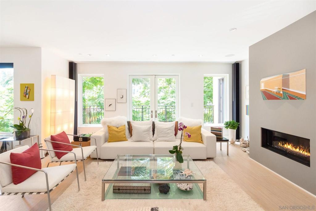 Located in the heart of the La Jolla Village within the gated community of Montefaro is this top floor modern masterpiece. With 3 bedrooms, 2.5 baths there is no area in this unit that has not been upgraded. New construction with an electric car charging station located at 1 of the 3 Parking spots. Unit includes new Snaidero kitchen with built in lighting, Miele kitchen appliances, hardwood floors, custom cabinetry, new layout to create seamless single level living. Dedicated living room and family rooms are adorned with new gas fireplaces. Top quality custom top to bottom remodel in a quite location with views of the La Jolla Country Club green belt. The gated community of Montefaro comes with underground parking, storage locker, bike racks, gym, sauna, community room, outdoor pool, jacuzzi, BBQ and picnic area with additional grassy common areas to enjoy. Walk to the farmers market, La Jolla Elementary, The Lot, and so many shops and restaurants in the heart of La Jolla Village! Located in the heart of the La Jolla Village within the gated community of Montefaro is this top floor modern masterpiece. With 3 bedrooms, 2.5 baths there is no area in this unit that has not been upgraded. New construction with an electric car charging station located at 1 of the 3 parking spots, new Snaidero kitchen with built in lighting, Miele kitchen appliances throughout, hardwood floors, custom cabinetry, new layout to create the ideal single level living. Dedicated living room and family rooms are adorned with new gas fireplaces. Top quality custom top to bottom remodel. The community of Montafaro comes with underground parking, storage locker, bike racks, gym, sauna, community room, outdoor pool and jacuzzi, BBQ and picnic area with addition grassy common areas to enjoy. Walk to the farmers market, La Jolla Elementary, The Lot, and so many shops and restaurants.
