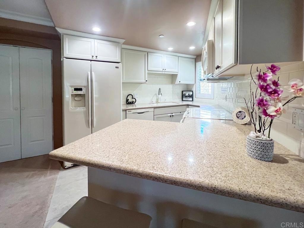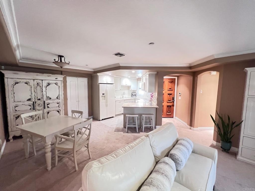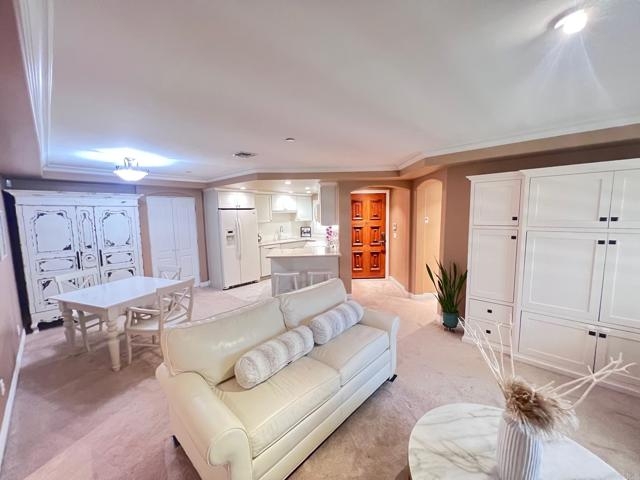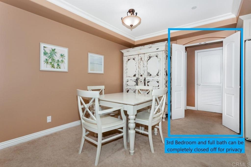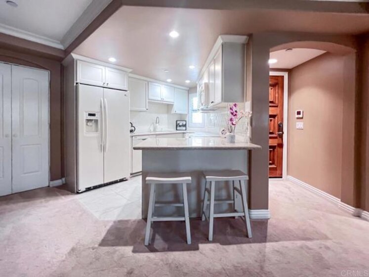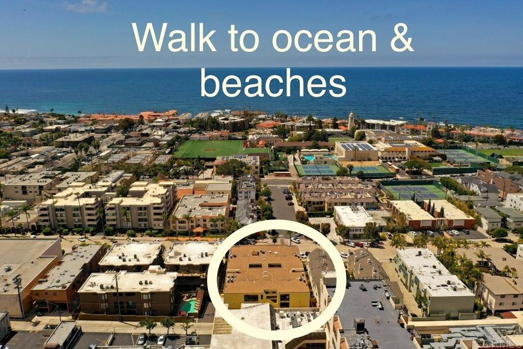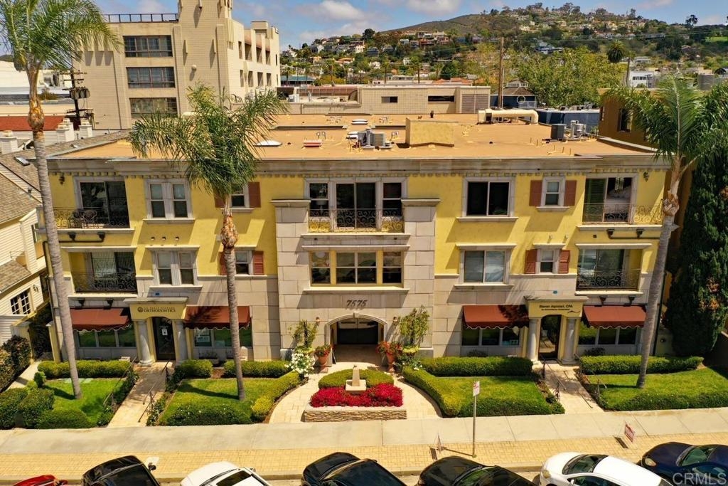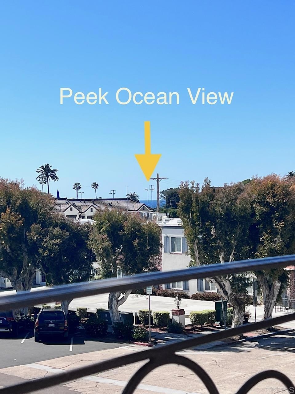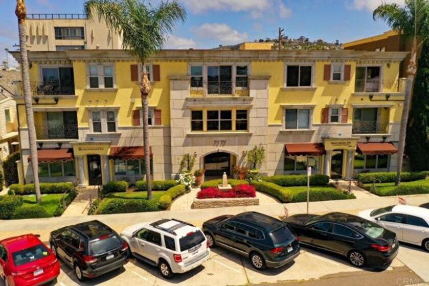 La Jolla Village Single Story with peek ocean view's. This top floor unit is located in the low rise Montrachet building! Secure Lobby entry at street level and garage level. Elevator. Only 16 units on 3 floors - two first floor condo units are used commercially. This building was completely remodeled in 2005 from its original construction and beautifully maintained. The interior of this unit has also been updated. Hallways and doorways have arched entry detail. Great room feature tray ceilings and crown molding. Peek Ocean views from Primary Bedroom balcony. Amazing sunset views. Three bedrooms and three full bathrooms - no bathtub all walk in showers. Split floor-plan. Two primary suites separated by an open great room. Third bedroom is adjacent to the kitchen with a full bathroom. French doors next to the kitchen can be closed for the private 3rd bedroom suite. Interior stacked laundry closet. Fireplace and two balconies. Beautiful courtyard entry. Front gated patio for exclusive use. Underground gated parking - two side by side spaces. Water & trash included in HOA. Walk to Village restaurants, shops and La Jolla Cove. Plenty of street parking.