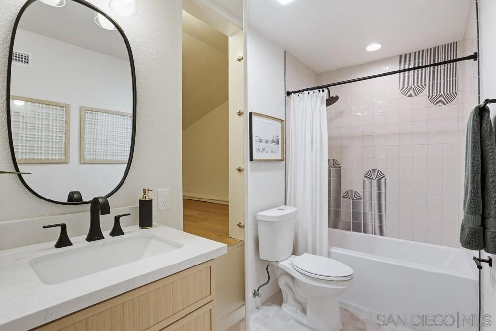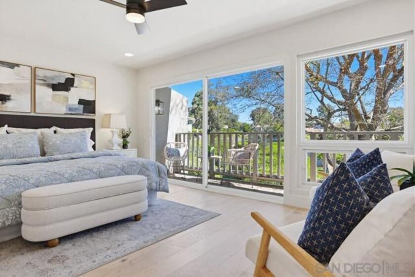 Perched on an elevated corner location within Mount La Jolla, this newly renovated townhome offers rare privacy, abundant natural light, and multiple outdoor living spaces that set it apart from typical interior units. The reconfigured main level features soaring entry ceilings, bright open living areas, and seamless access to several patios, ideal for entertaining or relaxed everyday living. Designer updates and modern finishes create a clean, contemporary feel while maintaining warmth throughout the connected living, dining, and family spaces. The layout flows effortlessly for gatherings while still providing comfortable separation of space. Upstairs, the expansive primary suite enjoys peaceful garden views, oversized windows, and a full-length private balcony. Ample closet space and a refreshed ensuite bath complete a true retreat environment. Located within one of La Jolla’s most desirable communities, residents enjoy resort-style amenities including pools and spas, tennis courts, clubhouse, fitness center, sauna, and beautifully maintained grounds. Just minutes to beaches, village dining, shopping, and major commuter routes, this home combines convenience, privacy, and indoor/outdoor living in a premier coastal setting. This community offers an impressive array of amenities designed for comfort and convenience. Residents enjoy concierge-style HOA services that cover Spectrum Platinum TV with premium channels, high-speed internet with equipment included, water (inside and out), exterior upkeep such as roofing and painting, termite protection, sewer, trash, as well as beautifully maintained landscaping and streets across 63 acres. Onsite management and maintenance staff ensure everything runs seamlessly. Beyond the essentials, the neighborhood also boasts two newly renovated clubhouses perfect for gatherings, a modern fitness center, a serene library, and a putting green with stunning views of Mission Bay and Downtown. Recreational options abound with four lighted tennis courts, four pools—including a heated pool—plus a spa, saunas, and picturesque walking paths, all set within impeccably kept grounds.