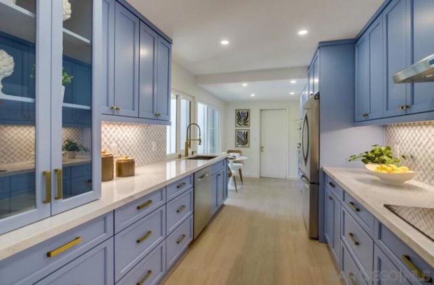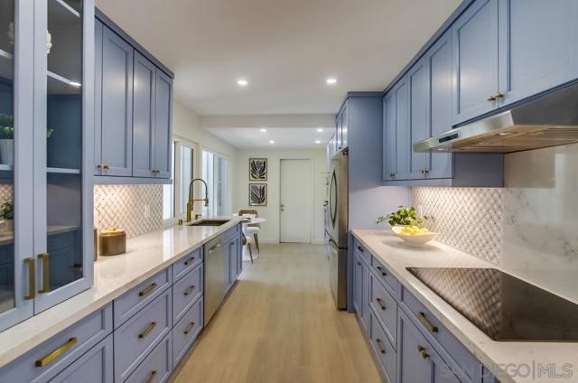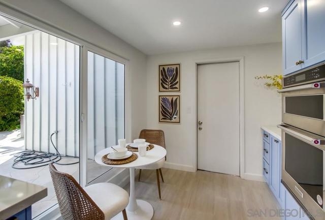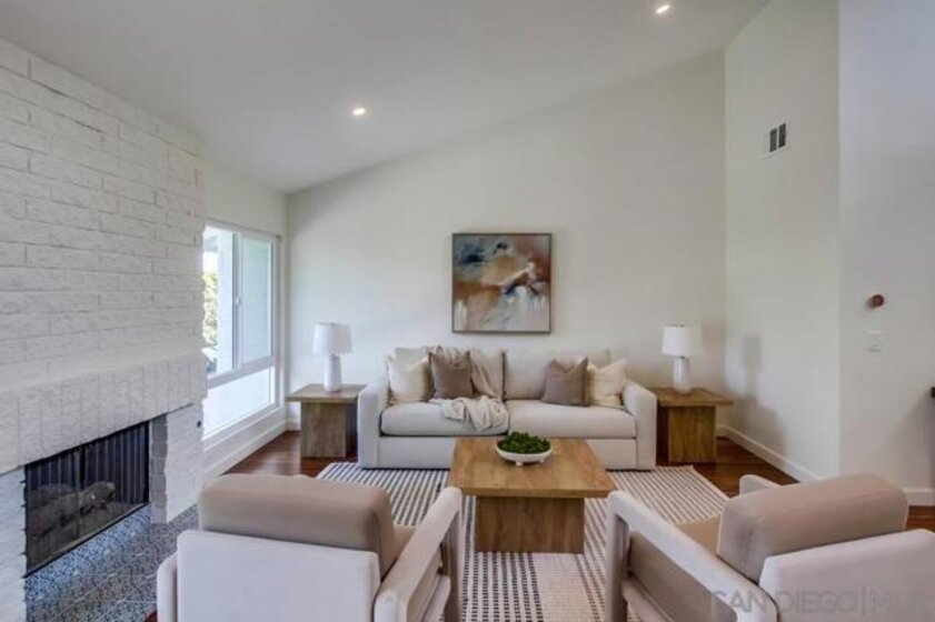 Fully remodeled, stylish single level home in Mount La Jolla! This recent remodel transformed the space into a turnkey property with every detail covered! Immaculate kitchen with quartz countertops, newer cabinetry with soft close, stainless-steel appliances, backsplash with under mount lighting, breakfast bar, eat-in area & porcelain tile floors. Vaulted ceilings in the main rooms provide volume & light as it flows to a large/private patio. Both bathrooms have been fully redone with an elegant/contemporary feel. Large primary bedroom has 3 closet spaces, high ceilings & access to the patio. This home also features wood floors, new lighting throughout, fireplace, AC, dual pane vinyl sliders & windows (some with built in catch screens) & an upgraded electric panel. 2 car garage with new epoxy floors & drywall...directly connects to kitchen & has overhead storage. Large driveway provides additional off-street parking. Great location in the development away from the road & with no neighbor across the street. Stroll from your private back patio to open space for play/dog walking or right over to one of the 4 community pools. Mount La Jolla is a community that is a step above for what's included in your monthly hoa dues- all water/sewer/trash costs, Cable/Internet, master insurance, huge clubhouse, 4 tennis courts with lights, 4 pools (2 heated year-round), spa/sauna, lush grounds with walking paths & a putting green with City views! Freeway access nearby, shopping, great schools & the beach lifestyle awaits at the bottom of the hill...