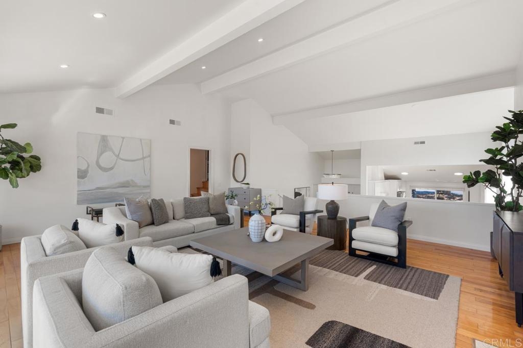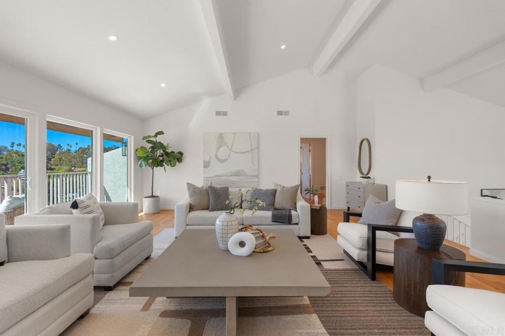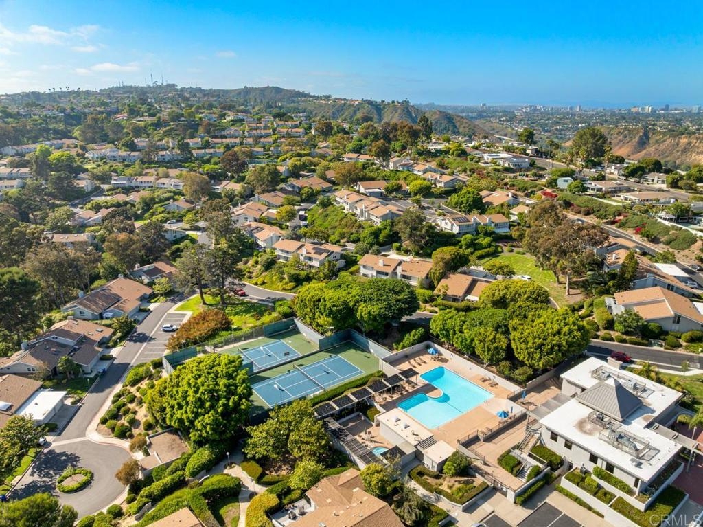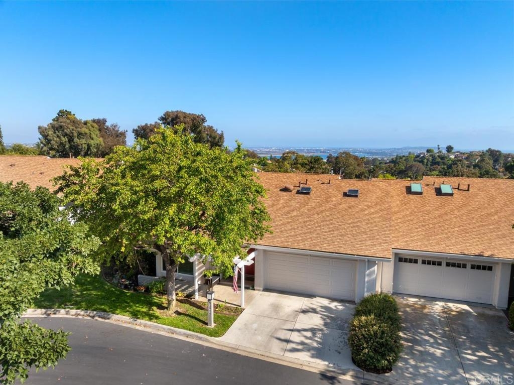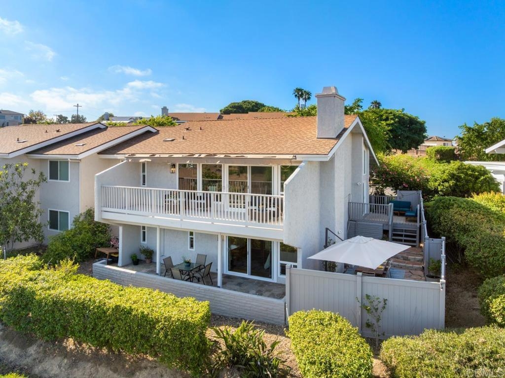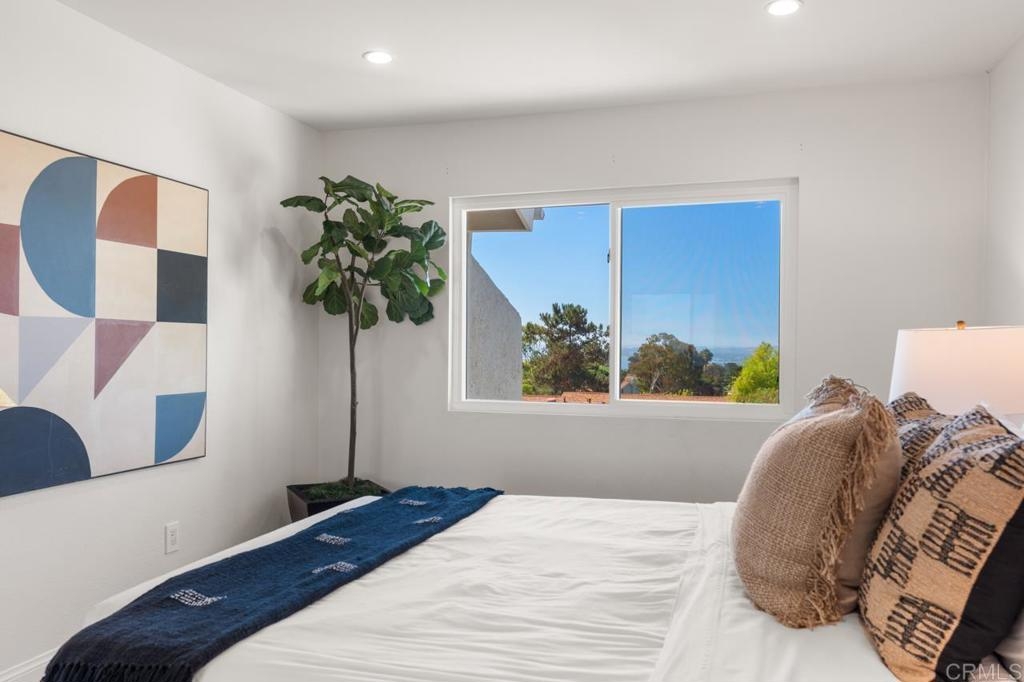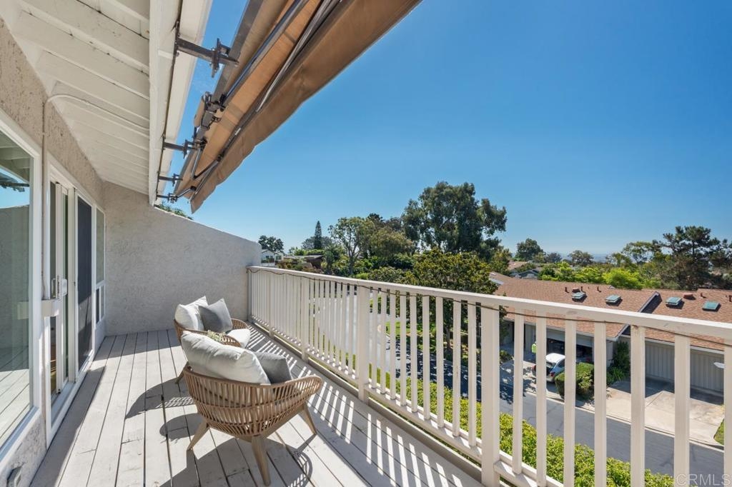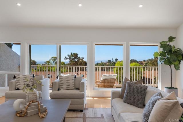 Stunning panoramic ocean and city views greet you from this rare corner residence, located in one of La Jolla’s most sought-after communities. Tucked away on a peaceful, private cul-de-sac with just seven homes, this property offers an abundance of natural light and a spacious, airy feel from the moment you walk in. The open kitchen and living area flow effortlessly to three private outdoor retreats, including a generous deck just off the kitchen—perfect for sipping your morning coffee or winding down with a glass of wine. From there, steps lead down to an expansive side yard ideal for relaxing or entertaining. The remodeled kitchen is a showstopper, featuring travertine floors, a designer series gas range, crisp white shaker cabinets with under-cabinet lighting, granite countertops, a built-in window bench, and oversized pantry storage. Upstairs, the bright and open living room features a cozy gas fireplace, a mini-bar, and sliding doors that lead to a spacious deck with sweeping views. This level also includes a guest bedroom, an updated full bath, and a tucked-away loft—perfect as a media room, office, or game room. The primary suite is located on the lower level, complete with a walk-in closet, a large walk-in shower, and access to a private patio through sliding glass doors. A third bedroom and beautifully remodeled bath complete this floor. Located in the beautifully maintained Mount La Jolla community, residents enjoy serene walking paths, resort-style amenities including pools, tennis courts, a clubhouse, and lush tree-lined streets. Just minutes from La Jolla Village, top-rated schools, beaches, Mt. Soledad, and the best of dining and shopping—this is coastal living at its finest. Your perfect view-filled retreat awaits!