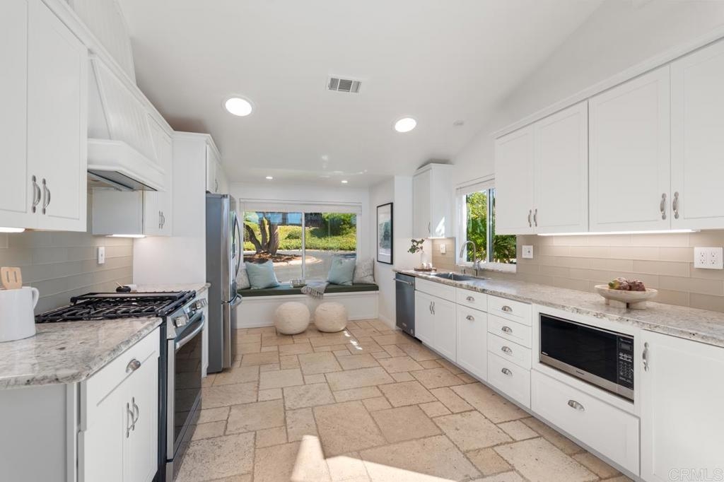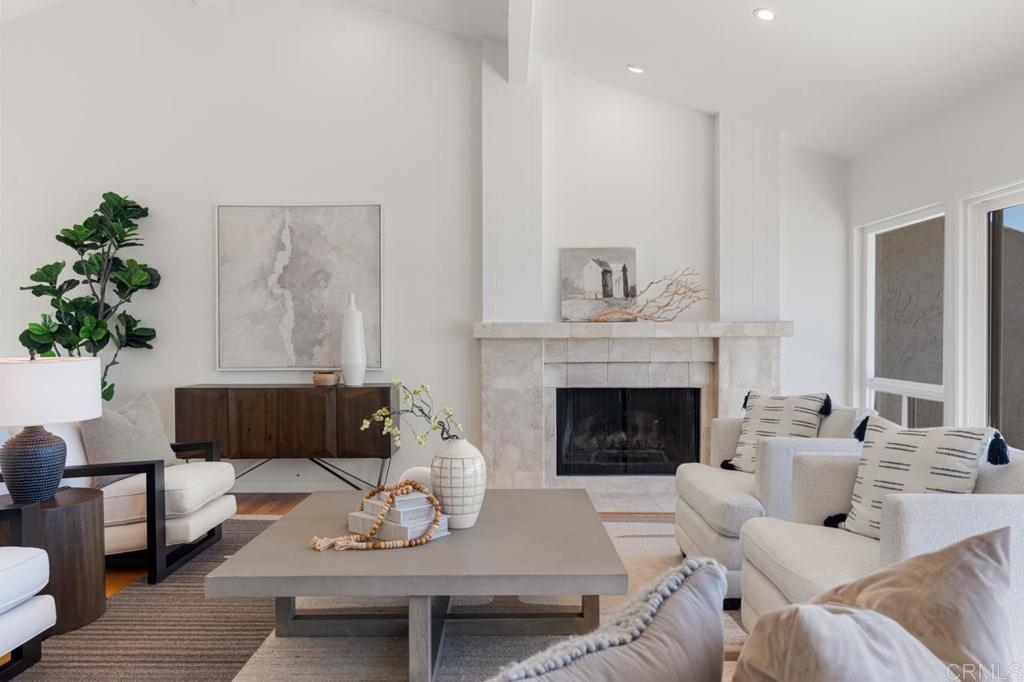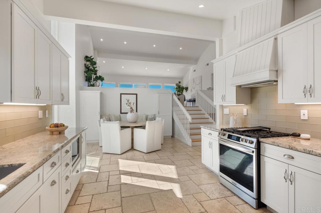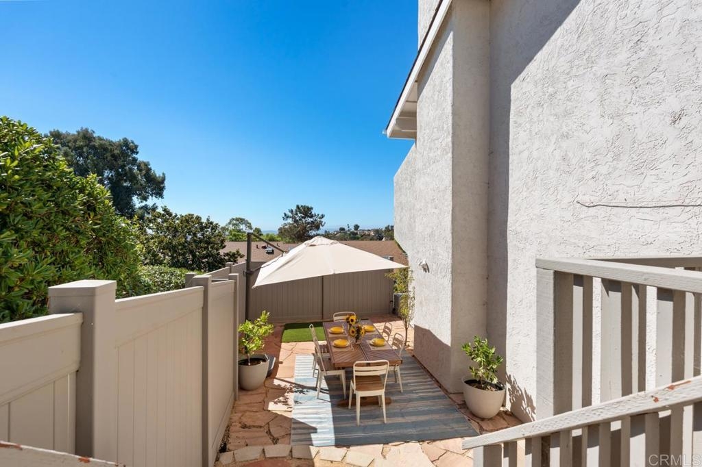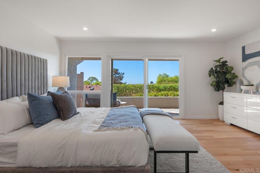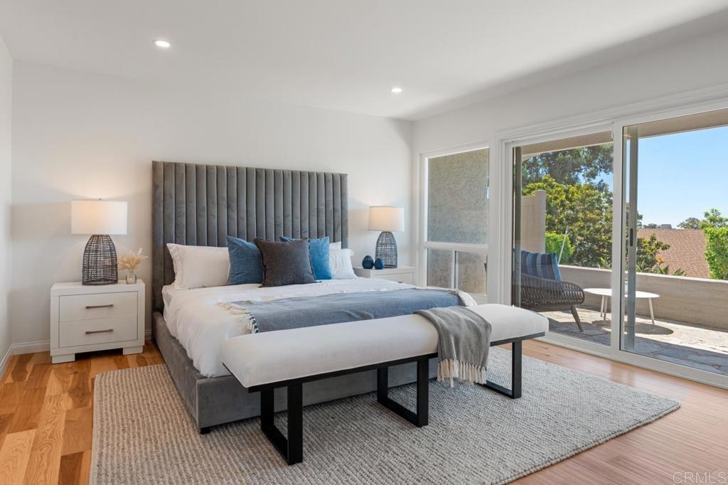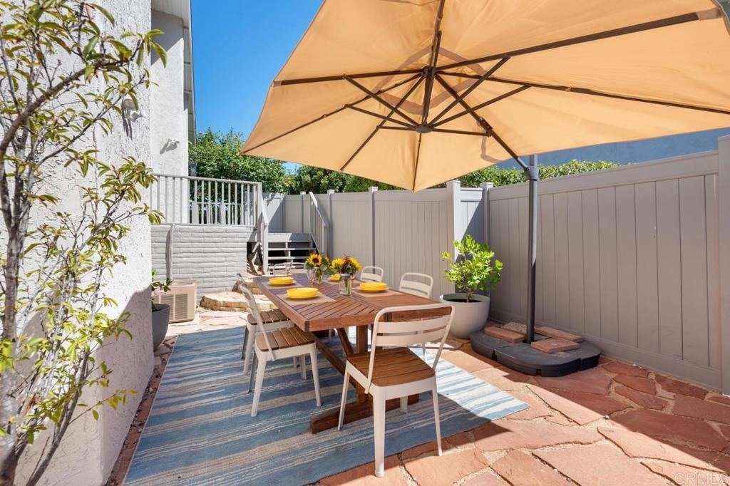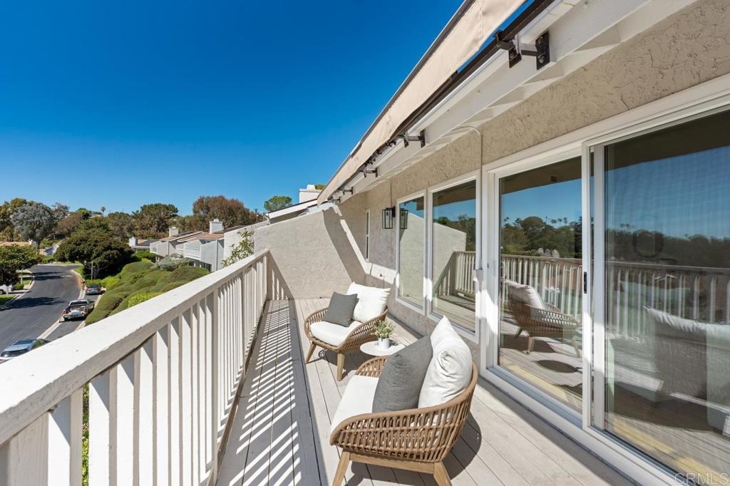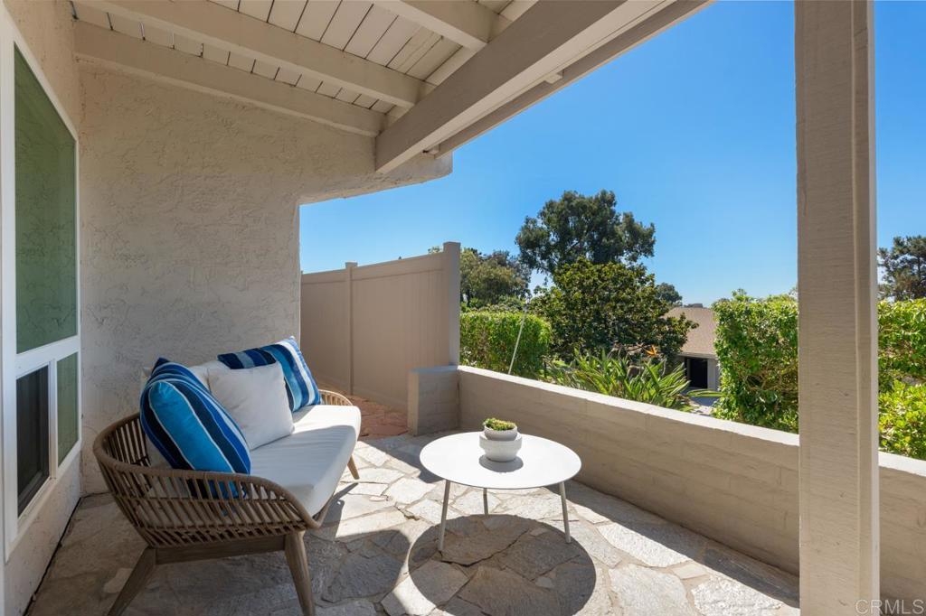 Stunning panoramic ocean and city views greet you from this rare corner residence, located in one of La Jolla’s most sought-after communities. Tucked away on a peaceful, private cul-de-sac with just seven homes, this property offers an abundance of natural light and a spacious, airy feel from the moment you walk in. The open kitchen and living area flow effortlessly to three private outdoor retreats, including a generous deck just off the kitchen—perfect for sipping your morning coffee or winding down with a glass of wine. From there, steps lead down to an expansive side yard ideal for relaxing or entertaining. The remodeled kitchen is a showstopper, featuring travertine floors, a designer series gas range, crisp white shaker cabinets with under-cabinet lighting, granite countertops, a built-in window bench, and oversized pantry storage. Upstairs, the bright and open living room features a cozy gas fireplace, a mini-bar, and sliding doors that lead to a spacious deck with sweeping views. This level also includes a guest bedroom, an updated full bath, and a tucked-away loft—perfect as a media room, office, or game room. The primary suite is located on the lower level, complete with a walk-in closet, a large walk-in shower, and access to a private patio through sliding glass doors. A third bedroom and beautifully remodeled bath complete this floor. Located in the beautifully maintained Mount La Jolla community, residents enjoy serene walking paths, resort-style amenities including pools, tennis courts, a clubhouse, and lush tree-lined streets. Just minutes from La Jolla Village, top-rated schools, beaches, Mt. Soledad, and the best of dining and shopping—this is coastal living at its finest. Your perfect view-filled retreat awaits!