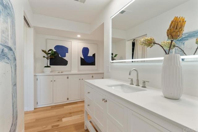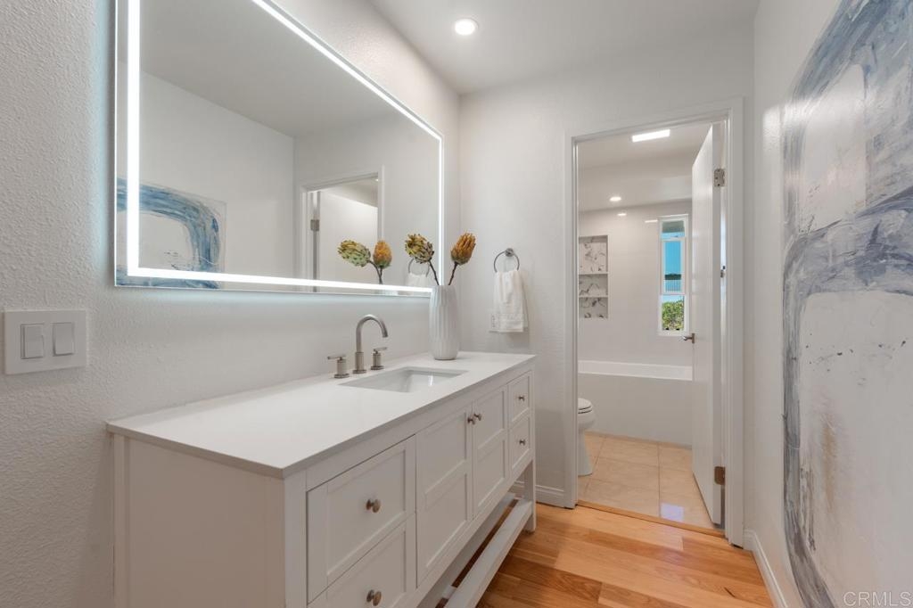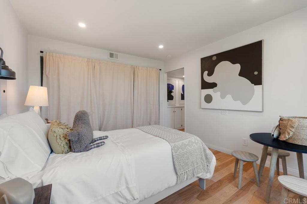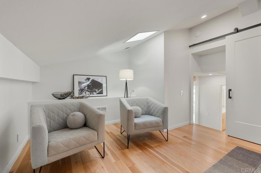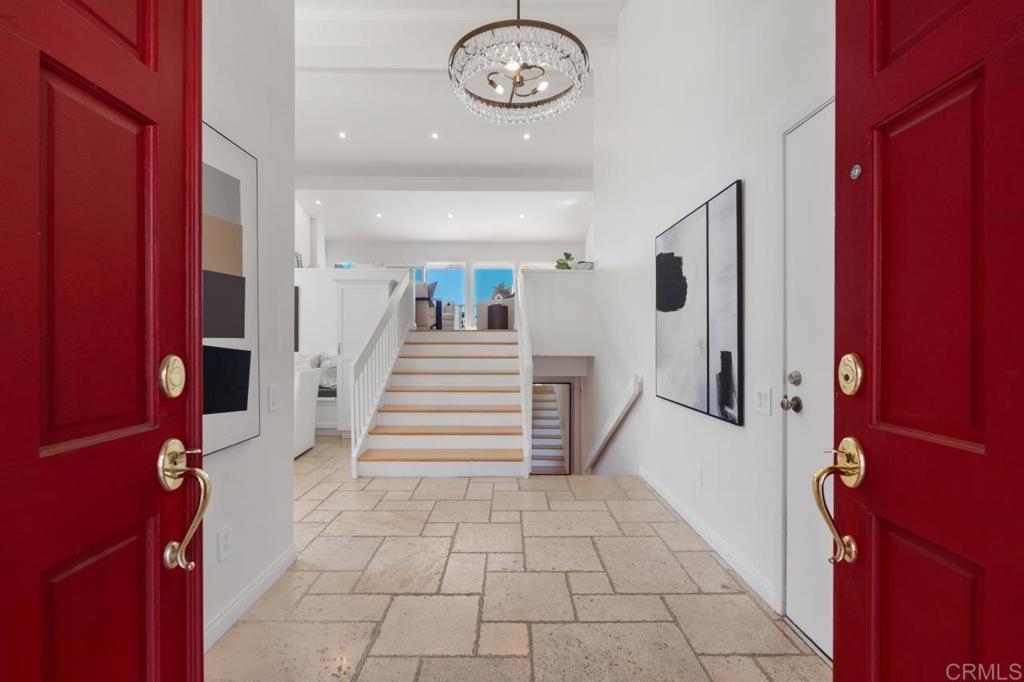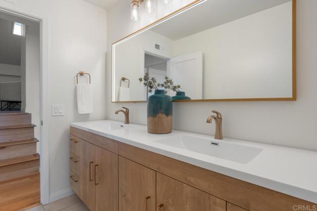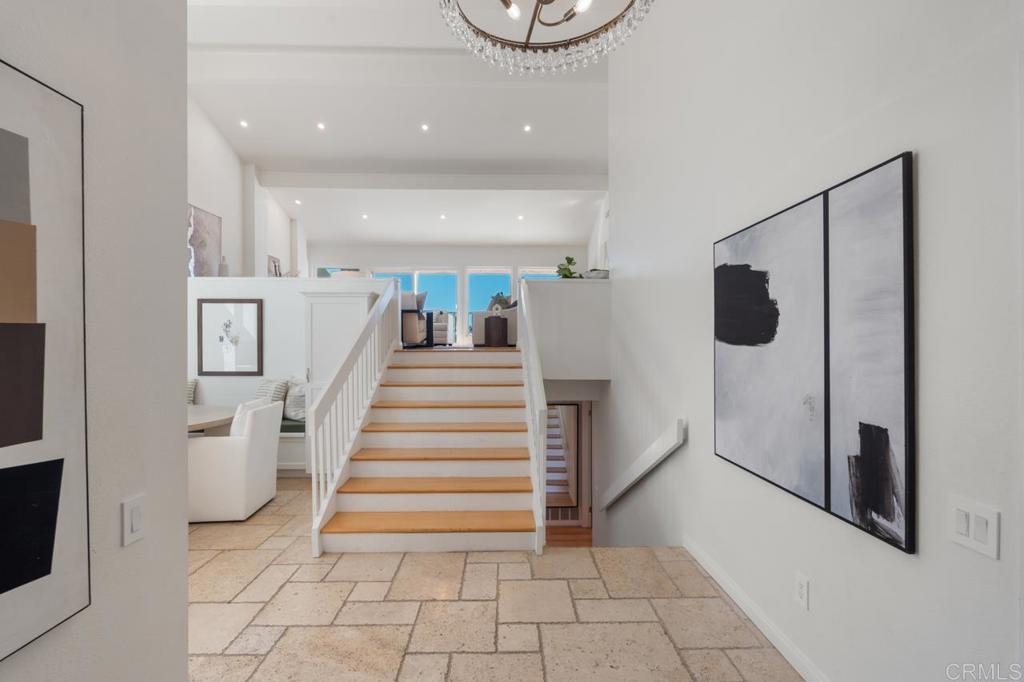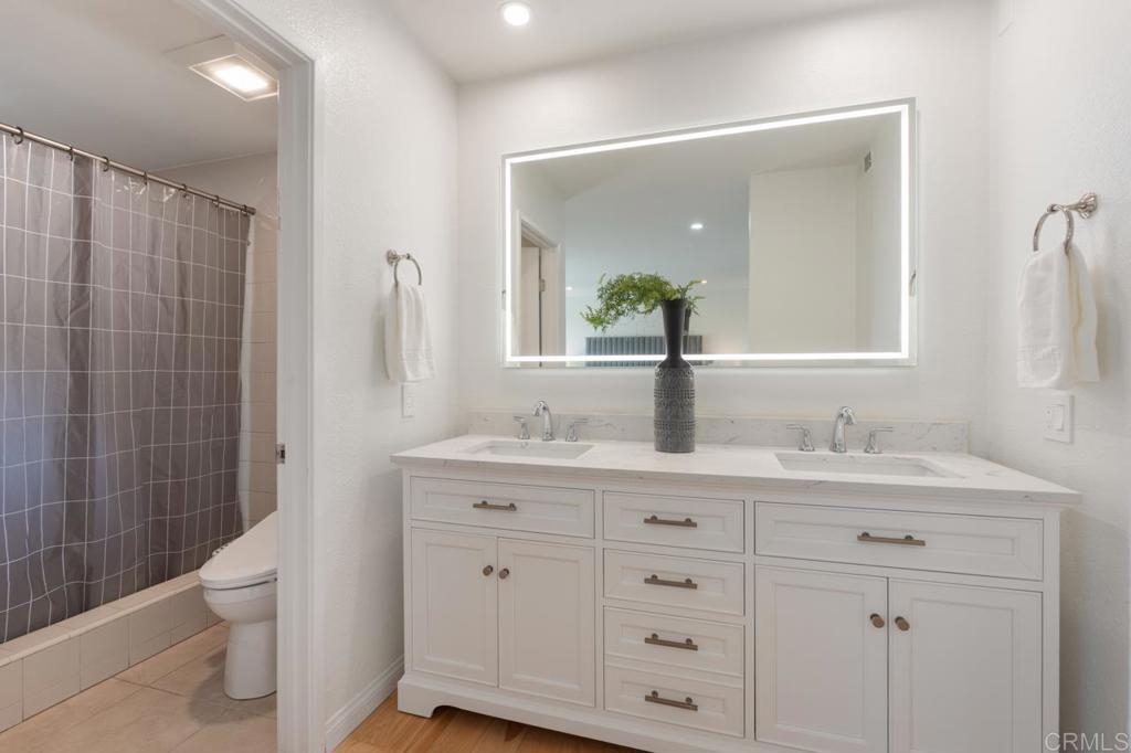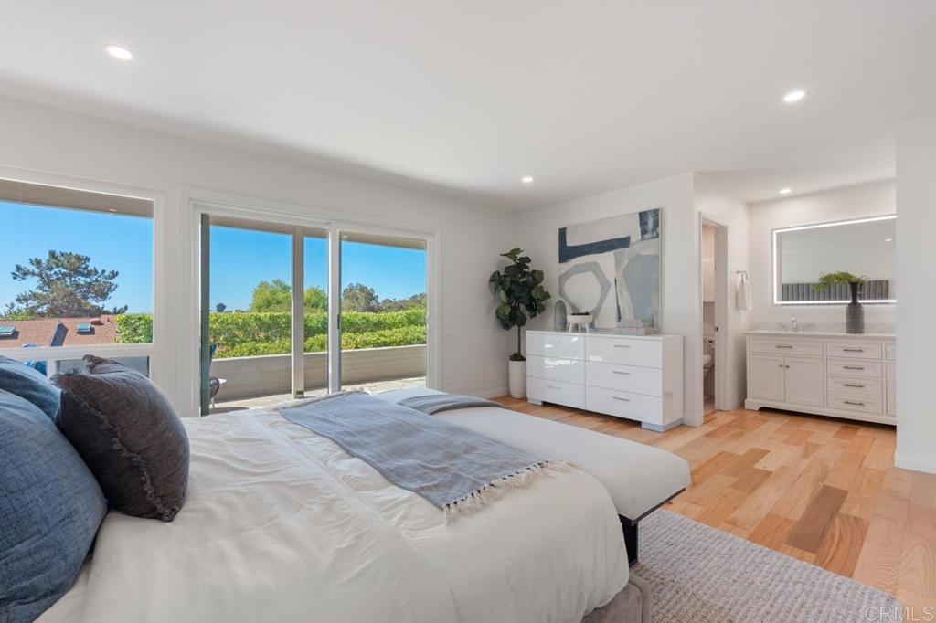 Stunning panoramic ocean and city views greet you from this rare corner residence, located in one of La Jolla’s most sought-after communities. Tucked away on a peaceful, private cul-de-sac with just seven homes, this property offers an abundance of natural light and a spacious, airy feel from the moment you walk in. The open kitchen and living area flow effortlessly to three private outdoor retreats, including a generous deck just off the kitchen—perfect for sipping your morning coffee or winding down with a glass of wine. From there, steps lead down to an expansive side yard ideal for relaxing or entertaining. The remodeled kitchen is a showstopper, featuring travertine floors, a designer series gas range, crisp white shaker cabinets with under-cabinet lighting, granite countertops, a built-in window bench, and oversized pantry storage. Upstairs, the bright and open living room features a cozy gas fireplace, a mini-bar, and sliding doors that lead to a spacious deck with sweeping views. This level also includes a guest bedroom, an updated full bath, and a tucked-away loft—perfect as a media room, office, or game room. The primary suite is located on the lower level, complete with a walk-in closet, a large walk-in shower, and access to a private patio through sliding glass doors. A third bedroom and beautifully remodeled bath complete this floor. Located in the beautifully maintained Mount La Jolla community, residents enjoy serene walking paths, resort-style amenities including pools, tennis courts, a clubhouse, and lush tree-lined streets. Just minutes from La Jolla Village, top-rated schools, beaches, Mt. Soledad, and the best of dining and shopping—this is coastal living at its finest. Your perfect view-filled retreat awaits!