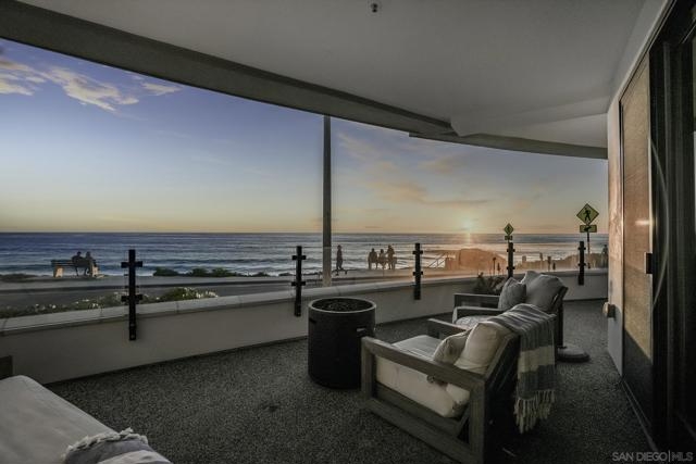 Rarely does a single level direct ocean facing 3 bedroom condo property come to market. This unparalleled property in the stunning One Neptune building exudes the perfect blend of sophisticated designer living and beach lifestyle from the moment you enter the foyer. This is the type of property you experience and not just see. The sights of surfers, dolphins and birds, the sound of the waves and smell of the ocean is all part of that experience. The comfortable open floor plan creates an indoor-outdoor flow onto the wraparound patio. Overlooking the iconic Windansea beach, sweeping views of the surf, sand, sea and sunsets are enjoyed from all living spaces and the primary bedroom suite. Highly upgraded throughout, luxury features include wide plank white oak floors, Central air conditioning, in unit laundry, solar, Murphy beds in the secondary bedrooms and Pebble tech deck. Located in the underground parking is a 2 car private tandem garage with built-in cabinets, storage and bike racks as well as a separate storage room. This boutique 2015 built 18 unit building offers gated entry, an elevator, a beach shower, and a community lounging area with a fire pit to enjoy watching the beach activity and sunsets. Walk along the beach, to Bird Rock or into the Village, this unique property is ideally located to take full advantage of the La Jolla lifestyle.