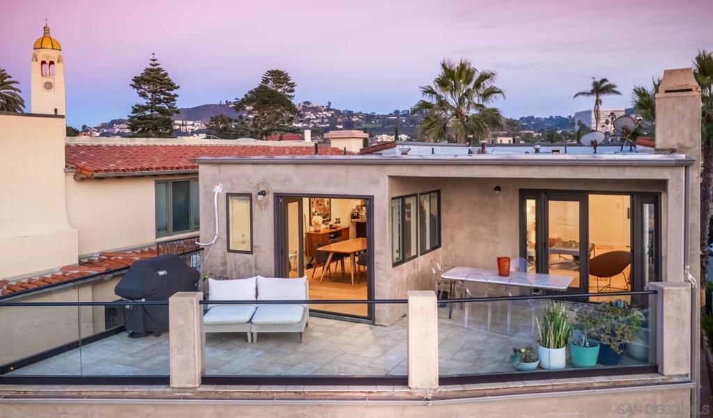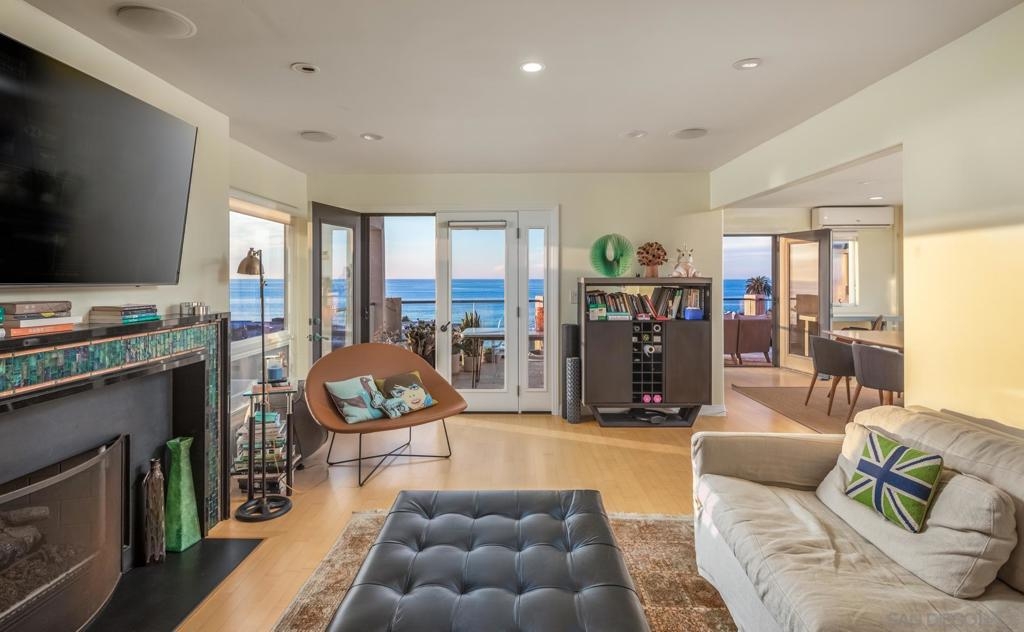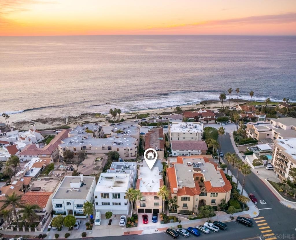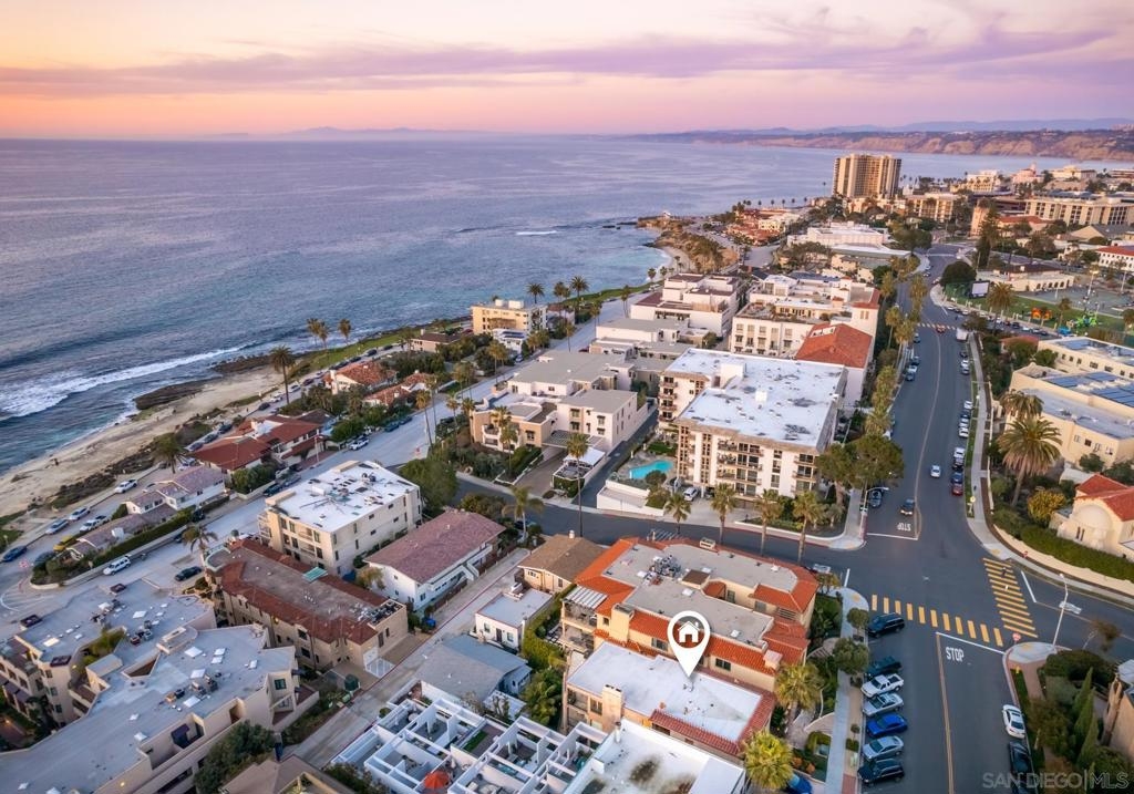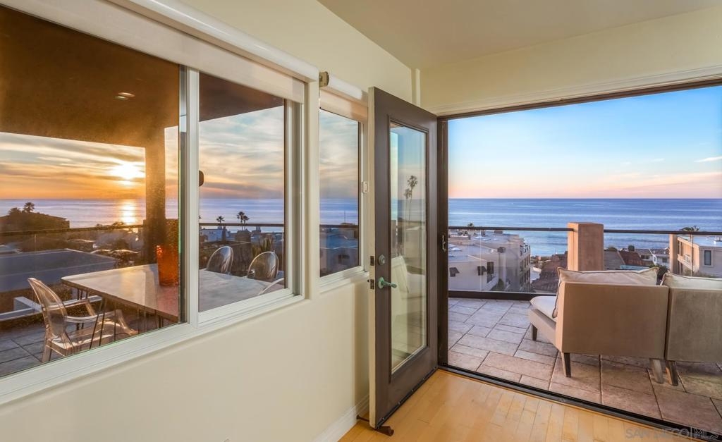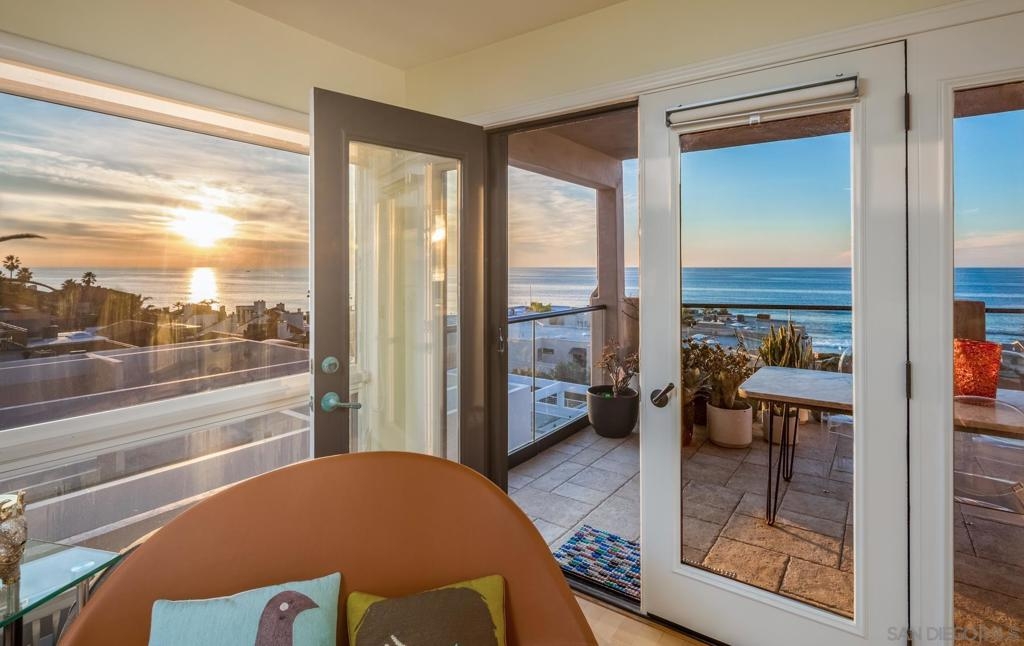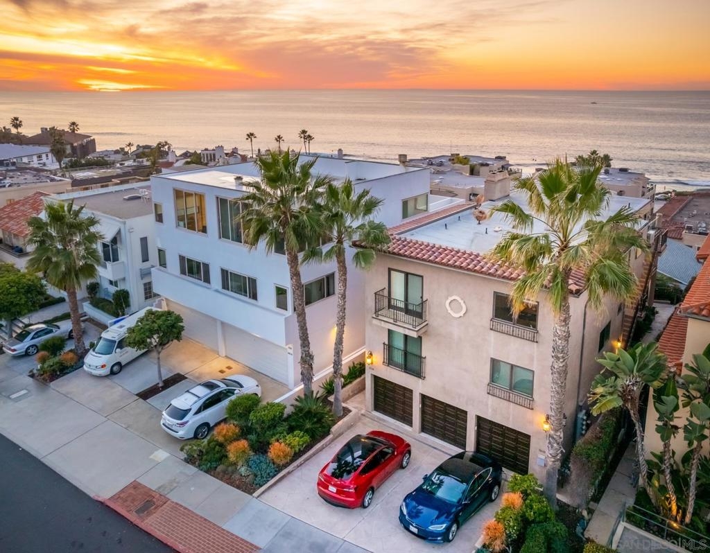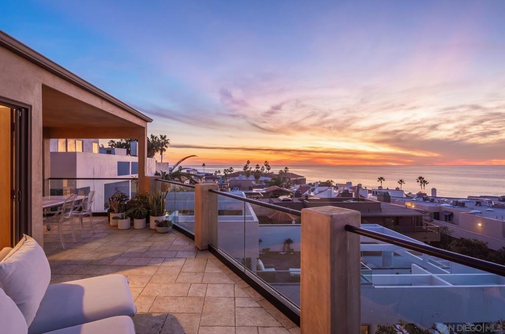 Personifying refined beach living, this seaside penthouse boasts fine finishes throughout with an open floor plan. The main living and dining areas offer an abundance of natural light from the array of French doors opening to an expansive balcony with views of dramatic sunsets over the sea. The single level floor plan hosts a living room leading out to the 300 sq ft loggia, dining area, 3 bedrooms, and a gourmet chef's kitchen complete with top-of-the-line appliances. The La Jolla Village lifestyle is enhanced in close proximity to Whispering Sands Beach, The Cove, Farmer's Market, & numerous shops and dining. Parking consists of a 1-car garage plus 1 driveway space in a 3 unit building.
